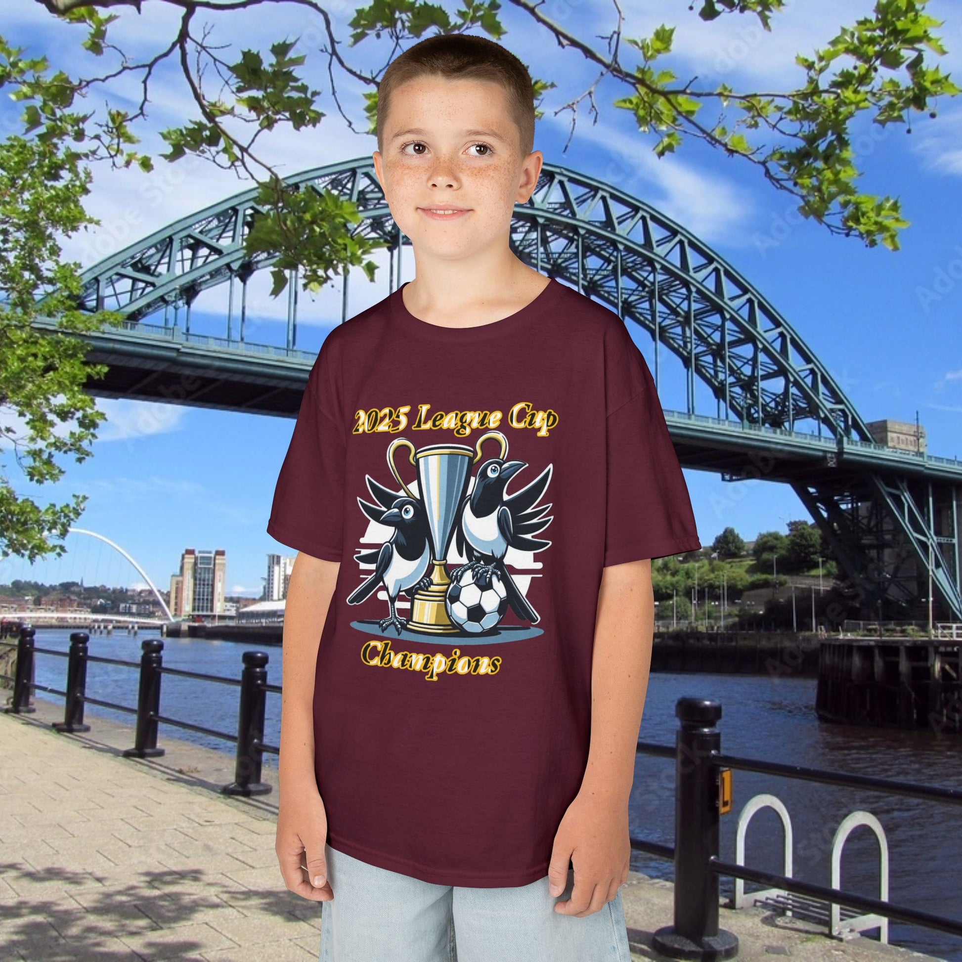 Celebrate Newcastle United's historic 2025 Carabao Cup final victory with this vibrant Kids Heavy Cotton™ Tee, perfect for young sports enthusiasts. The dynamic design showcases their passion for the game, making it an ideal addition to their wardrobe. Crafted for comfort and durability, this tee is perfect for everyday wear, whether they’re at practice or enjoying time with friends. Designed for kids who love to express their team spirit, this shirt is ideal for match days, birthdays, and special celebrations like the League Cup finals. Its classic fit and soft fabric ensure a cozy feel that matches their active lifestyle. Lightweight yet sturdy, this tee is a go-to choice for every young athlete celebrating their victories in style!