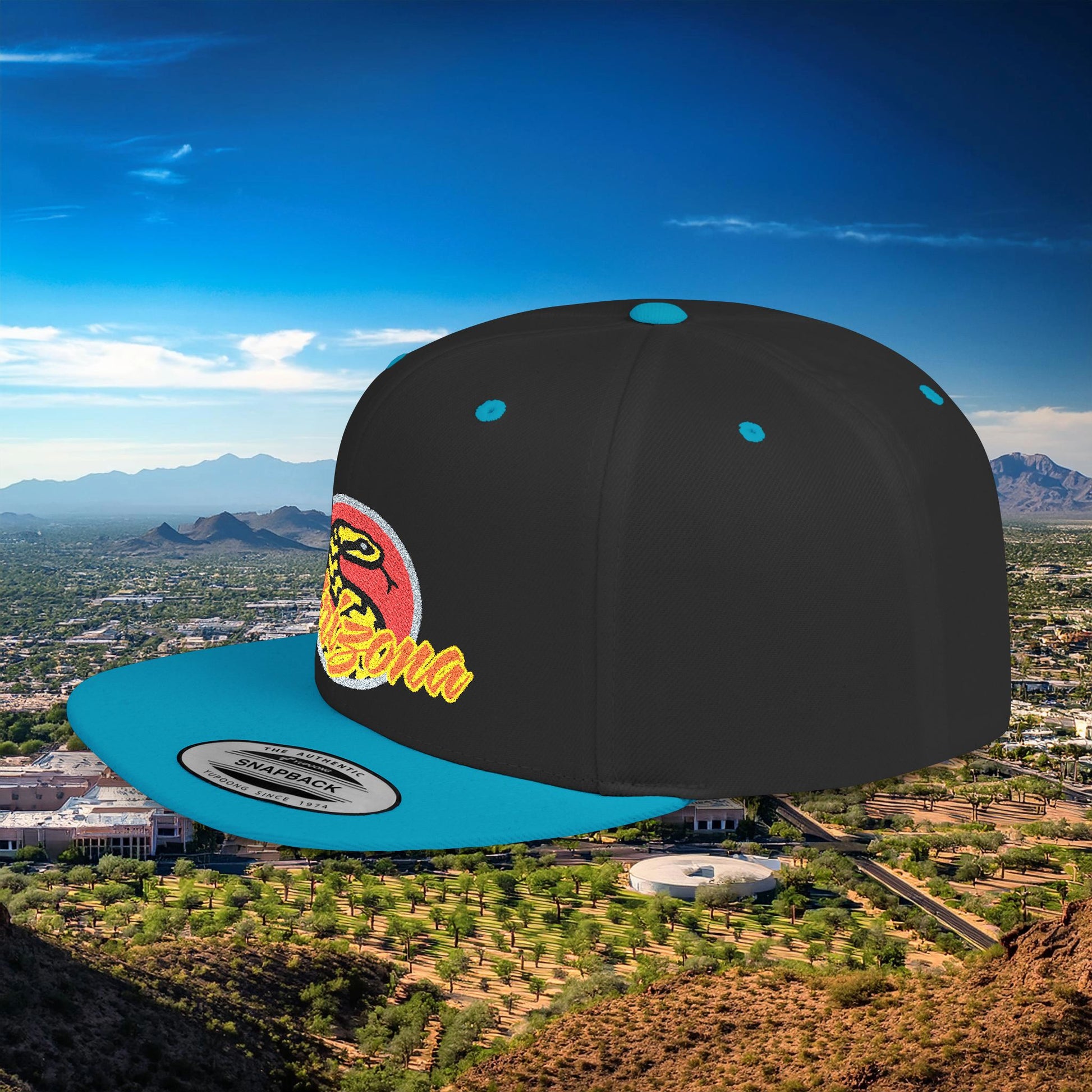 Introducing this Arizona Diamondbacks themed ultimate flat bill snapback cap for adults, designed to fit all head sizes perfectly and complete any ensemble. Crafted from a premium blend of 80% acrylic and 20% wool, with the white variant being 100% acrylic, this cap ensures both comfort and durability. Its structured, high-profile, six-panel design gives a sleek and modern look. The flat bill, complemented by a green undervisor, adds a touch of classic style that's both minimal and timeless. The snapback closure provides a customizable fit, making this cap the ideal accessory for any casual outfit.