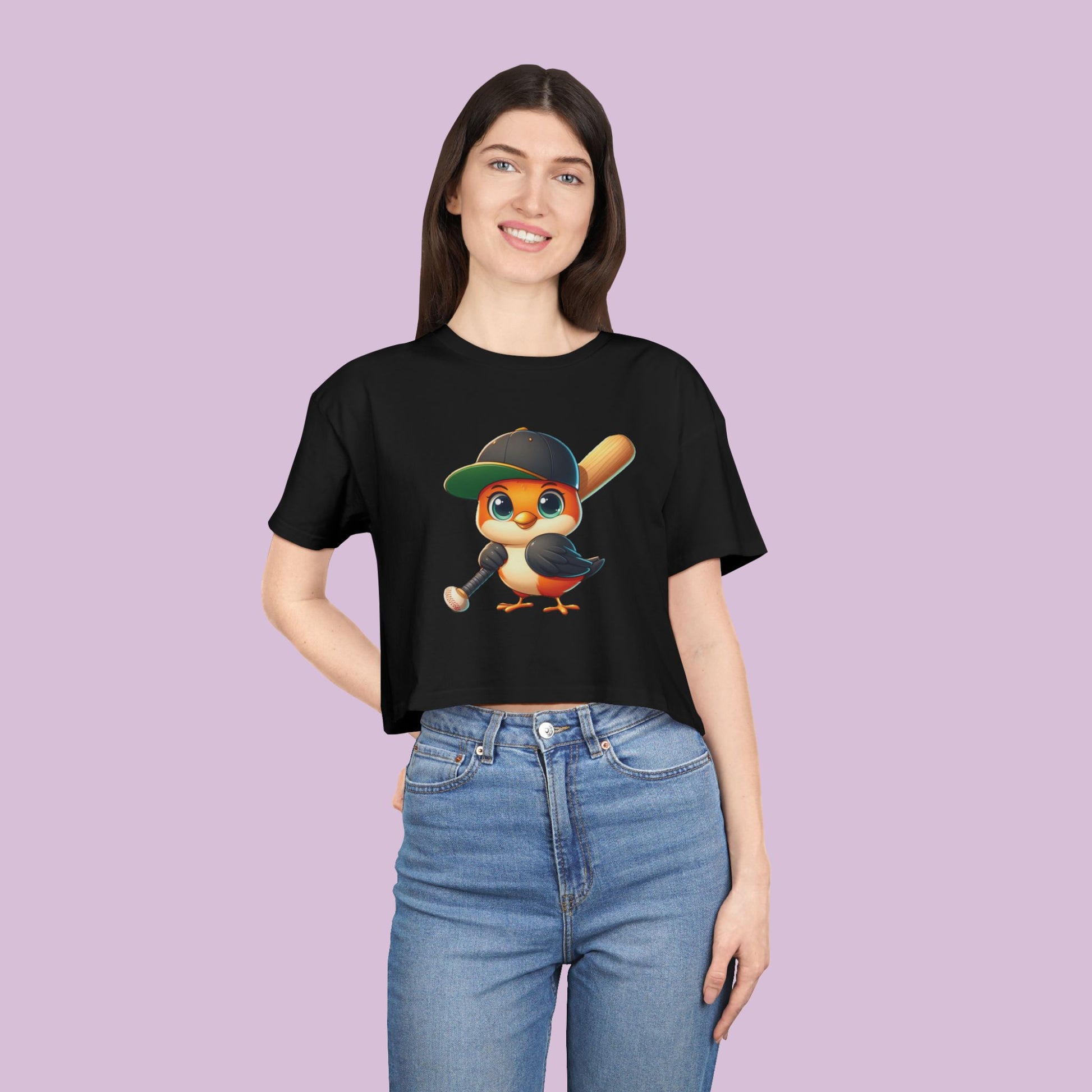 Embrace style and comfort with this Baltimore Oriole's themed Women’s Crop Tee, designed to be both trendy and cozy. The relaxed fit and dropped shoulder design make it perfect for laid-back days and casual outings. This tee blends effortlessly into any wardrobe, pairing well with high-waisted jeans, skirts, or shorts. Ideal for the fashion-forward individual, it’s great for everyday wear and special occasions alike, such as birthdays or casual gatherings. Celebrate your unique style and express yourself with a fun and playful graphic that adds a dash of personality. Perfect for spring and summer, this tee is also a thoughtful gift for holidays and celebrations.
