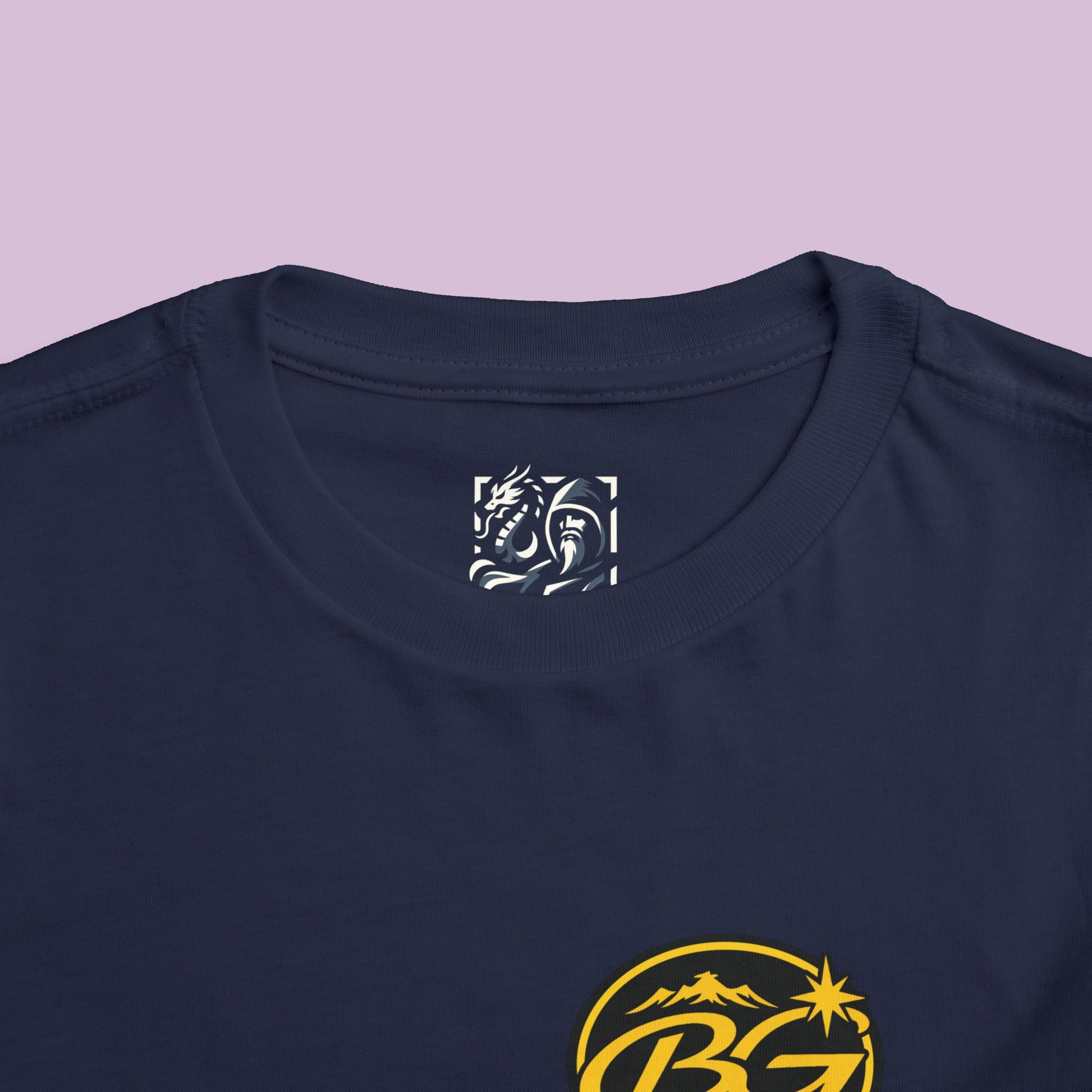 The vibrant back graphic features an aurora lit Arctic landscape, rugged mountain peaks, and a football resting beside the fjord under a bright northern star. A simple BG crest on the front chest keeps the look clean and classic while giving the shirt a fun football inspired touch.