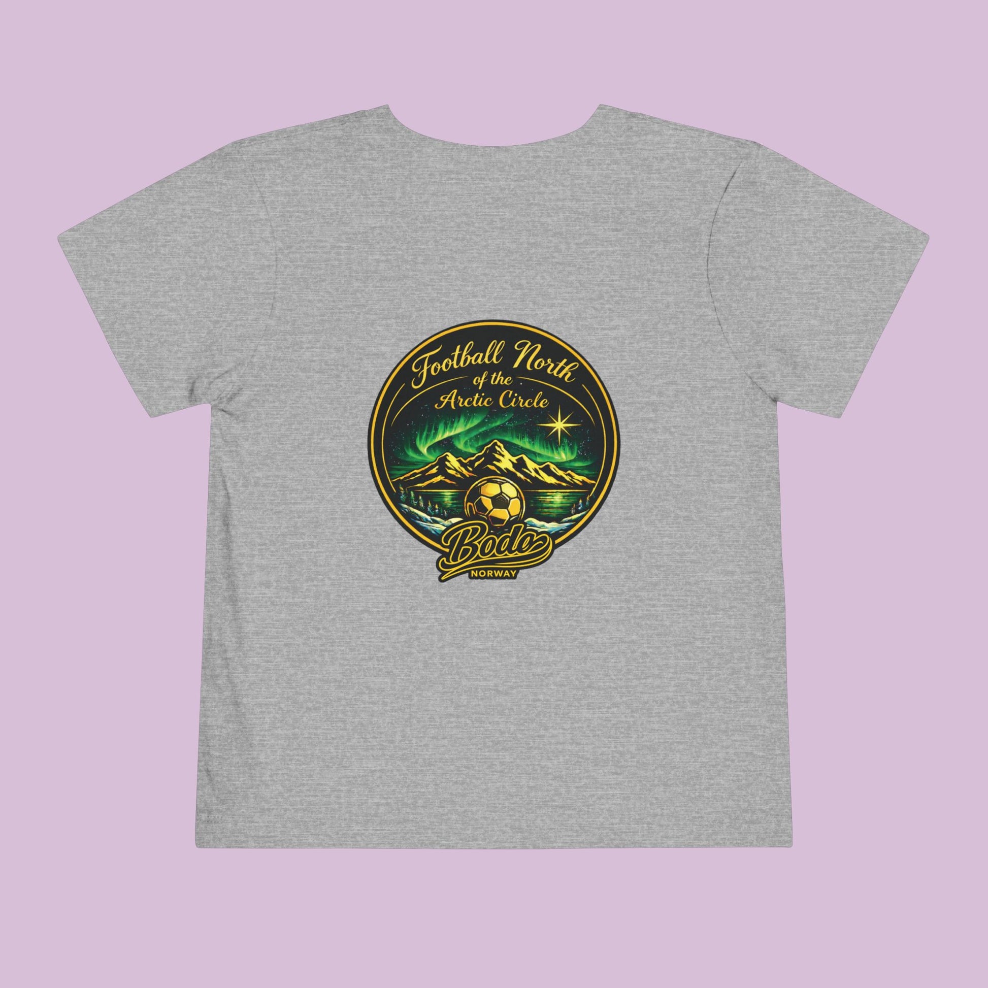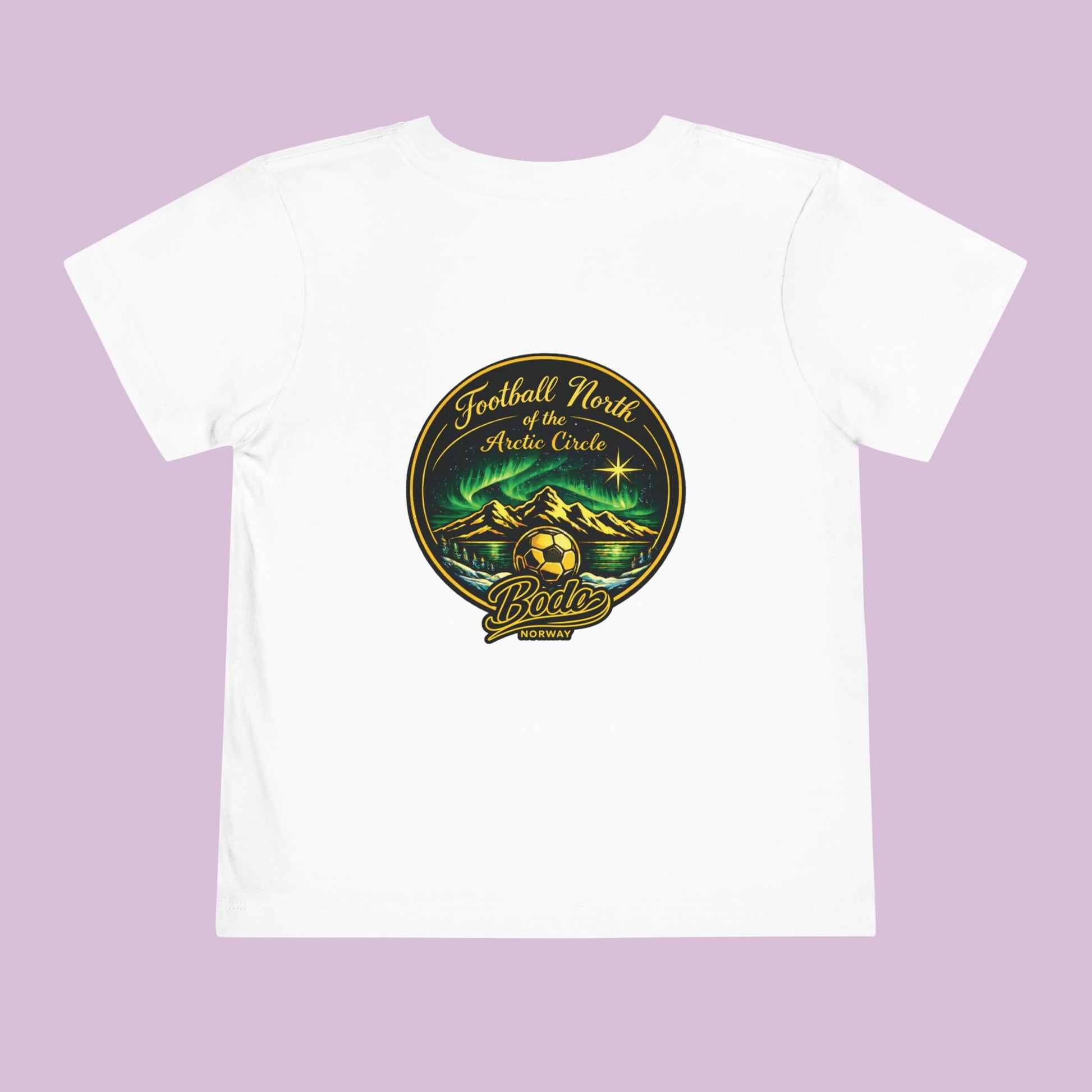 Start them young with the spirit of the Arctic. The Bodø “North of the Arctic Circle” Toddler Tee celebrates football played beneath glowing northern lights in one of the most unique places on Earth—Bodø, Norway.