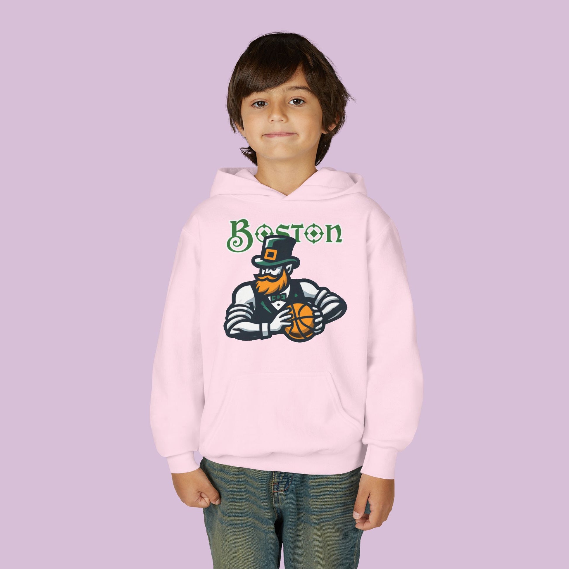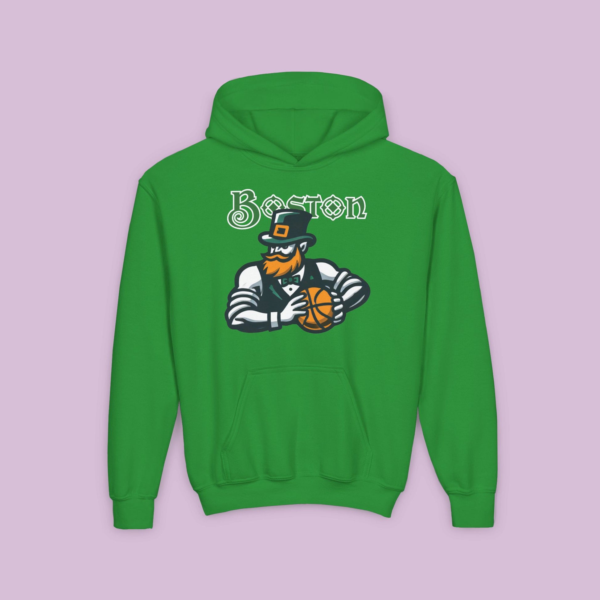This Boston Celtics themed youth blend hooded sweatshirt is made of ultra-soft, preshrunk fleece that feels wonderful against the skin. The garment is 50% cotton 50% polyester with reduced lint buildup. The front has a kangaroo pocket big enough for both hands. The neck is reinforced with twill taping.