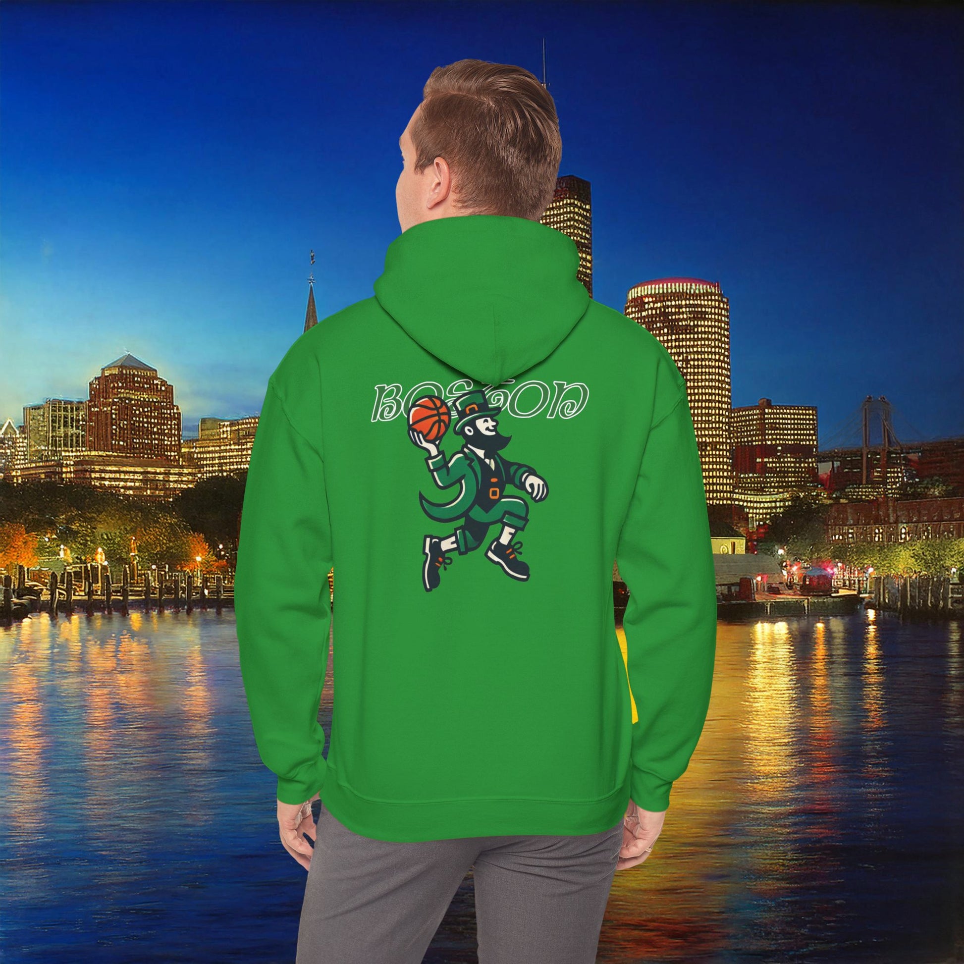 This Celtics themed heavy blend hooded sweatshirt is relaxation itself. Made with a thick blend of cotton and polyester, it feels plush, soft and warm, a perfect choice for any cold day. In the front, the spacious kangaroo pocket adds daily practicality while the hood's drawstring is the same color as the base sweater for extra style points.