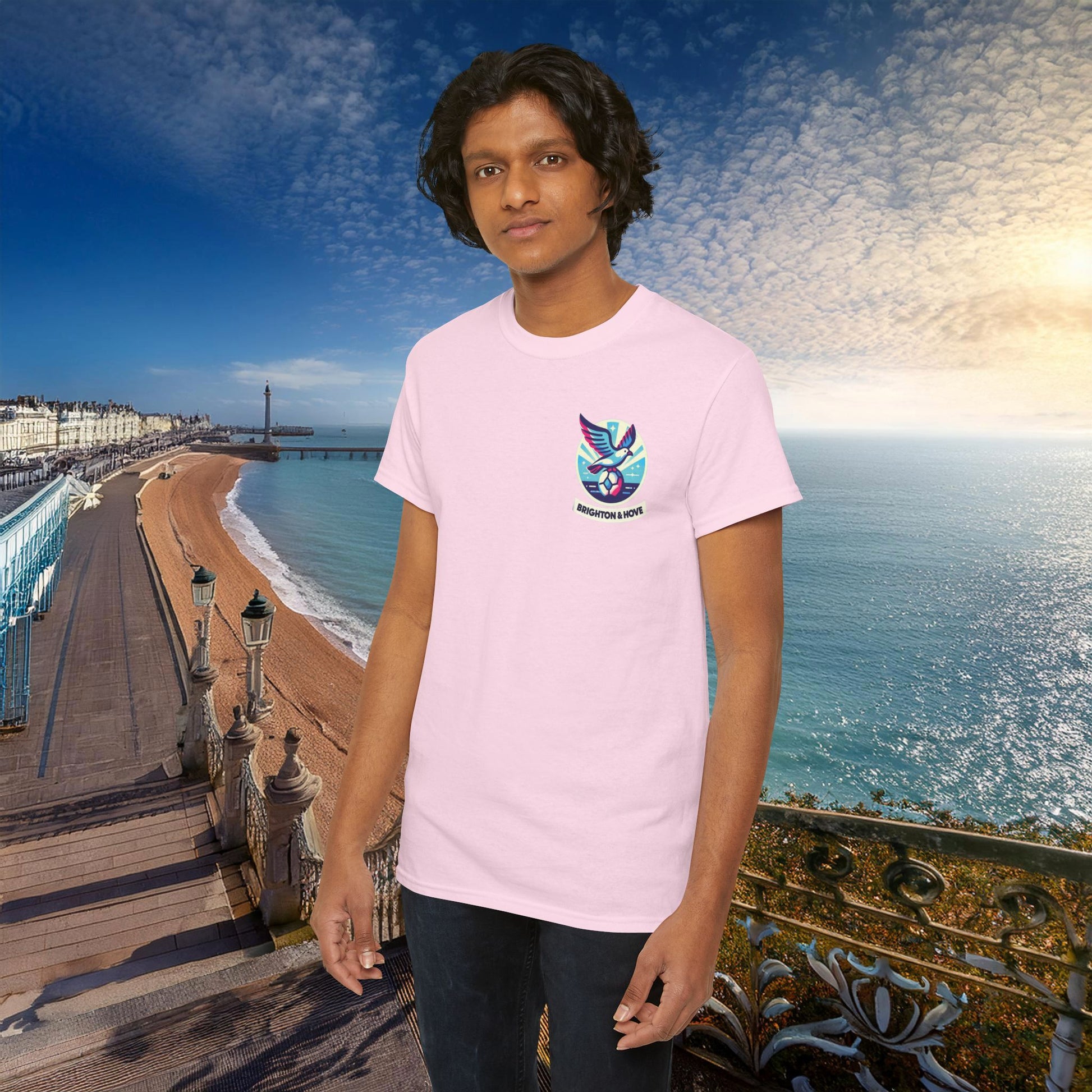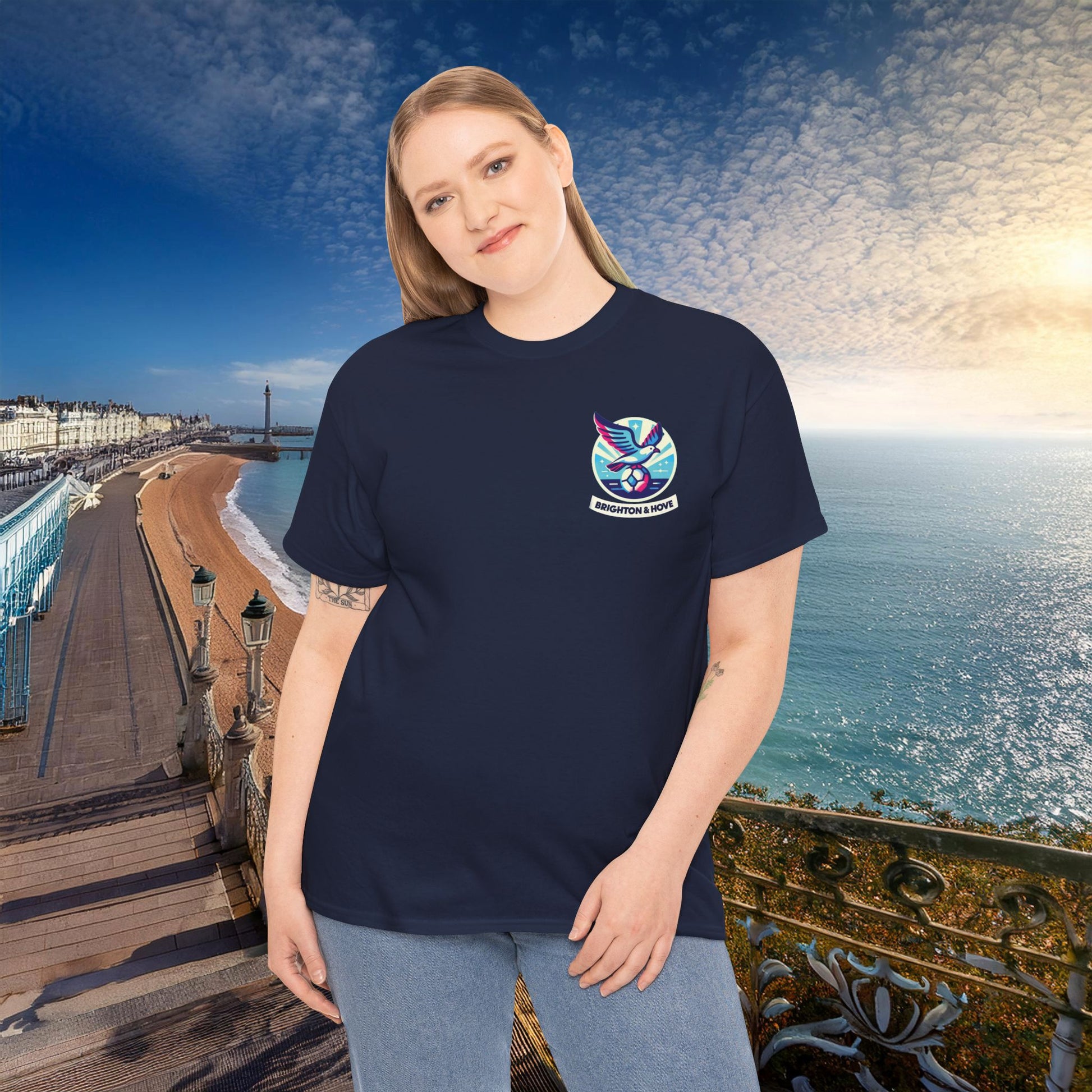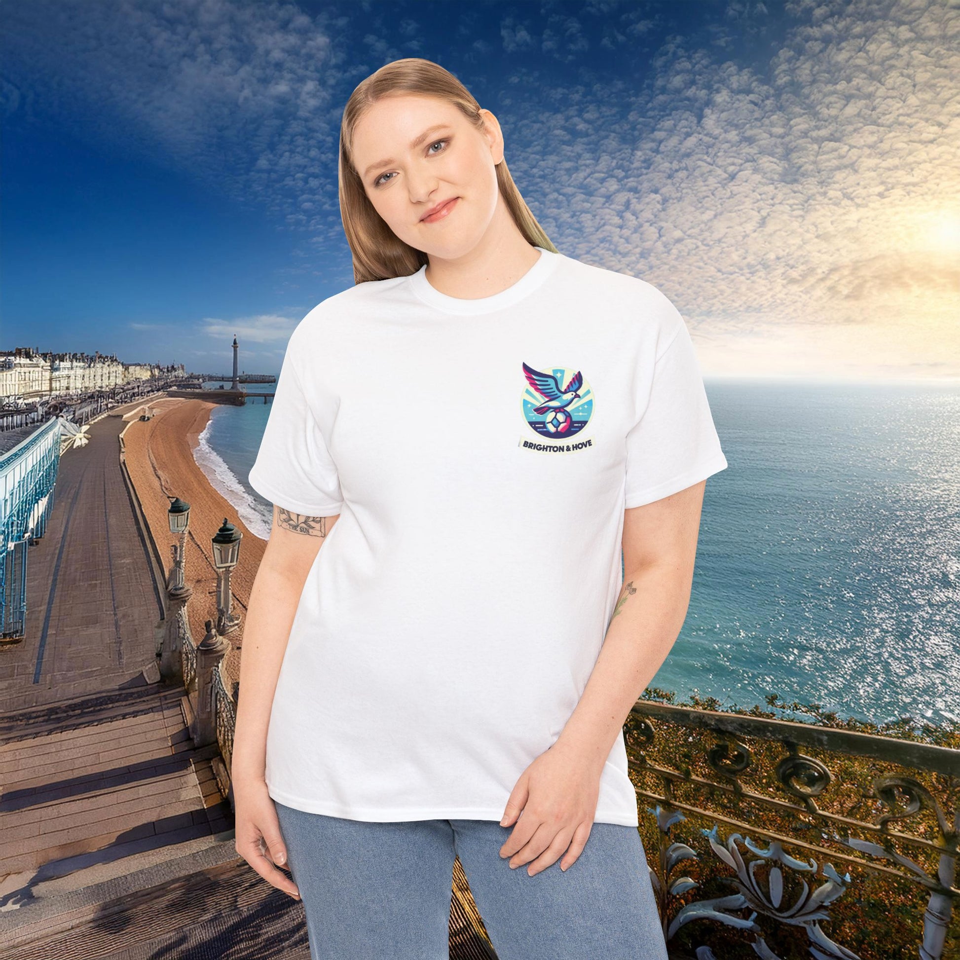This Brighton and Hove Albion themed heavy cotton tee is the basic staple of any wardrobe. It is the foundation upon which casual fashion grows. The specially spun fibers provide a smooth surface for premium printing vividity and sharpness. No side seams mean there are no itchy interruptions under the arms. The shoulders have tape for improved durability.