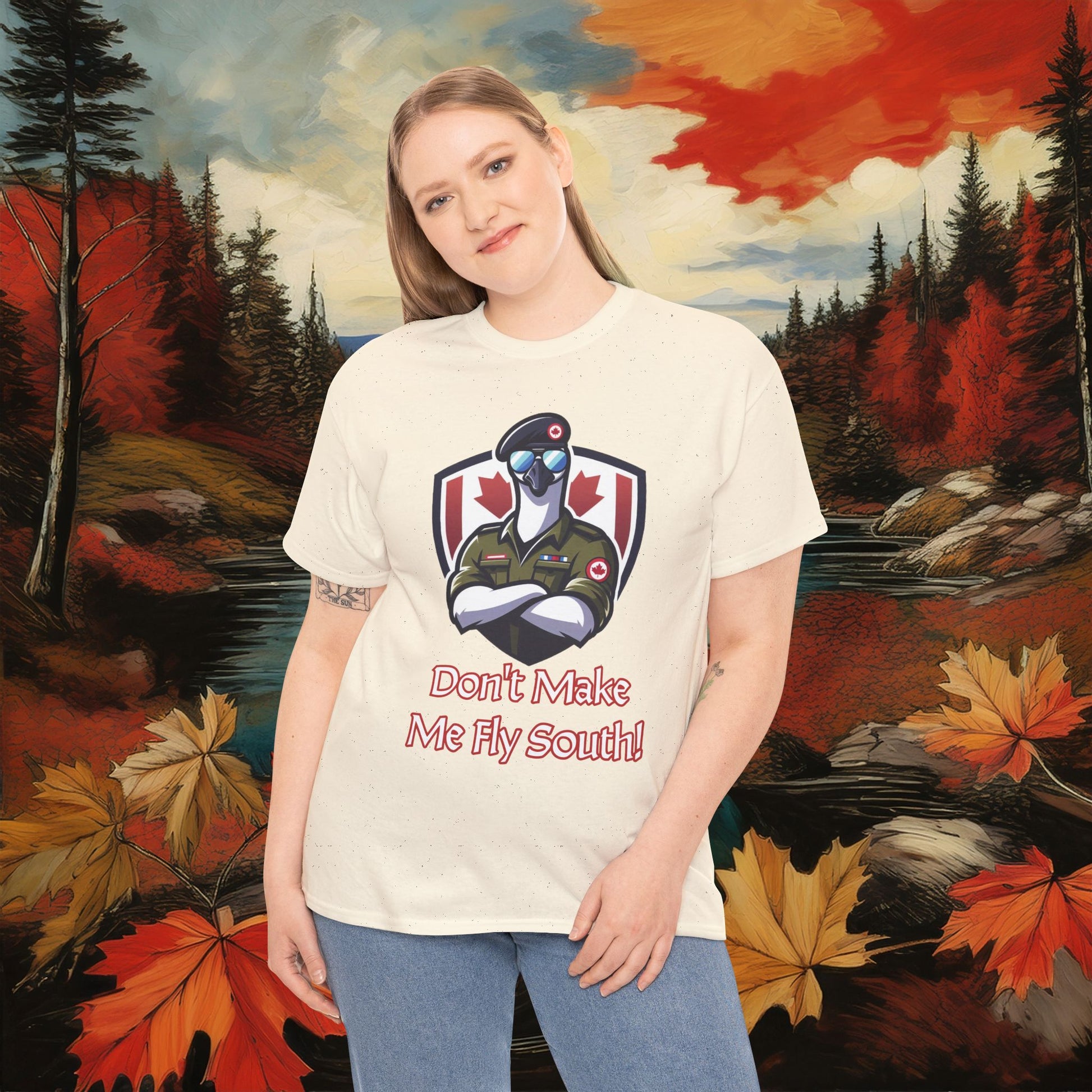 Introducing our Don't Make Me Fly South Canadian themed Unisex Heavy Cotton Tee, the perfect blend of comfort and style that speaks volumes! This tee radiates a relaxed vibe, making it an ideal choice for both casual outings and semi-formal events. Made from sustainably sourced 100% US cotton, it ensures a soft touch against your skin while keeping the environment in mind.