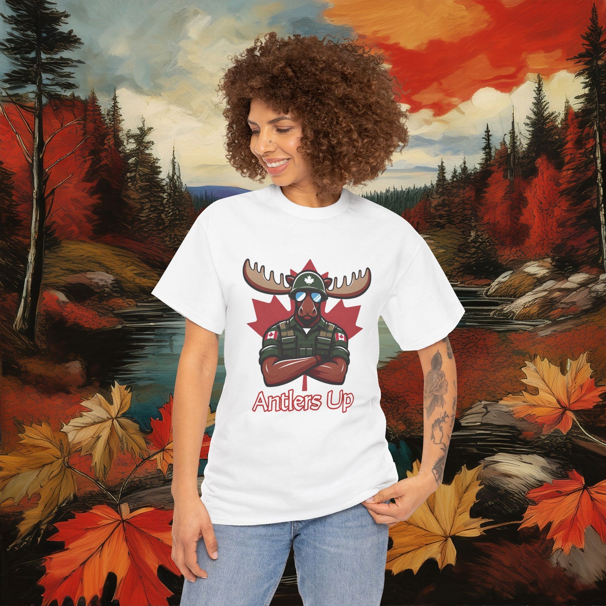 Elevate your casual wardrobe with this Antlers Up Canadian themed Heavy Cotton Tee. Perfect for those who appreciate both comfort and style, this tee offers a relaxed fit that suits any occasion—from laid-back outings to casual get-togethers. The vibrant design featuring a bold graphic adds a touch of personality, making it a great conversation starter. Ideal for anyone who loves to express their unique style, this tee is particularly relevant for gatherings, casual parties, and outdoor events. The versatile nature of this tee makes it an essential addition to any wardrobe, suitable for both men and women looking to make a statement while enjoying great comfort.