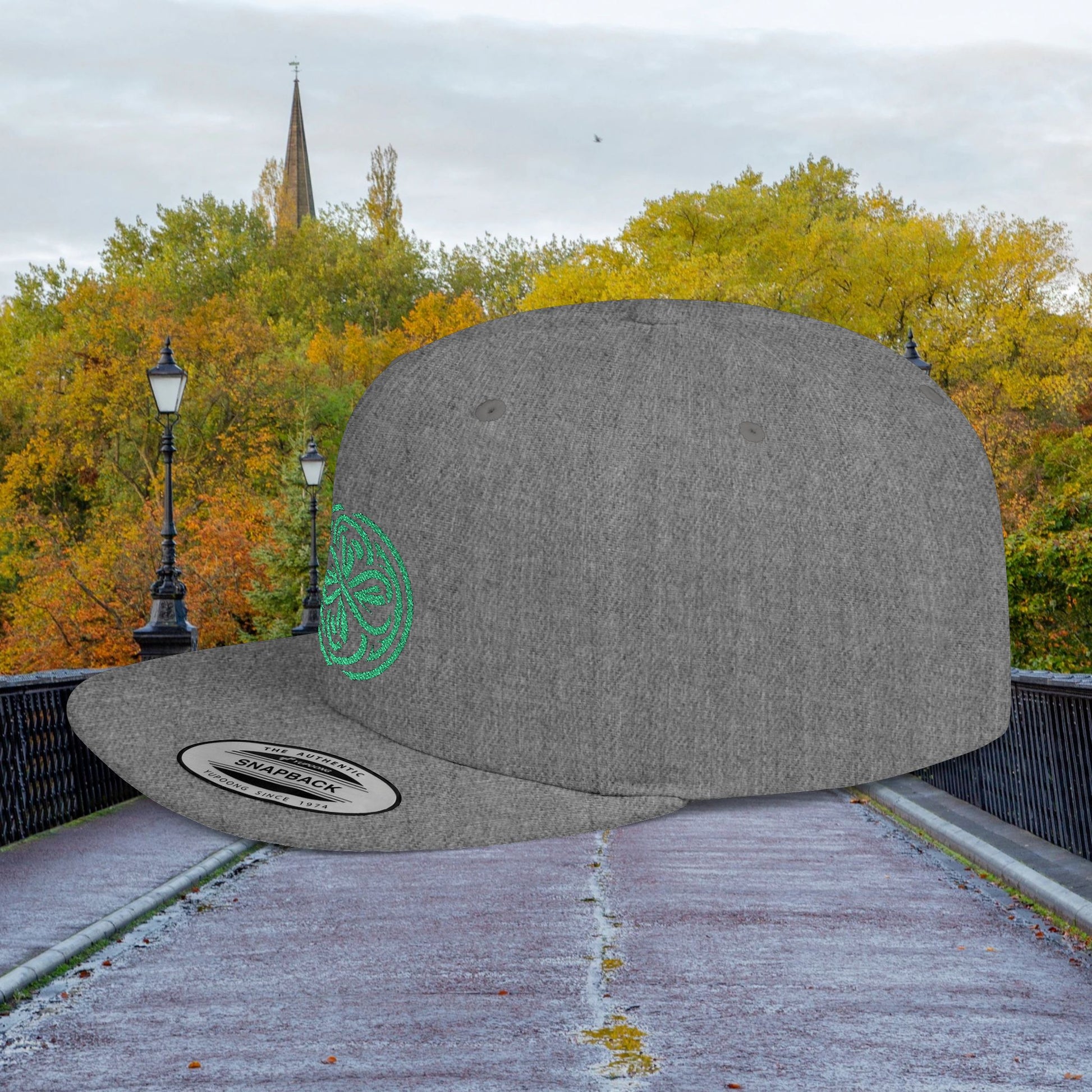 Introducing this Celtic FC themed ultimate flat bill snapback cap for adults, designed to fit all head sizes perfectly and complete any ensemble. Crafted from a premium blend of 80% acrylic and 20% wool, with the white variant being 100% acrylic, this cap ensures both comfort and durability. Its structured, high-profile, six-panel design gives a sleek and modern look. The flat bill, complemented by a green undervisor, adds a touch of classic style that's both minimal and timeless. The snapback closure provides a customizable fit, making this cap the ideal accessory for any casual outfit.