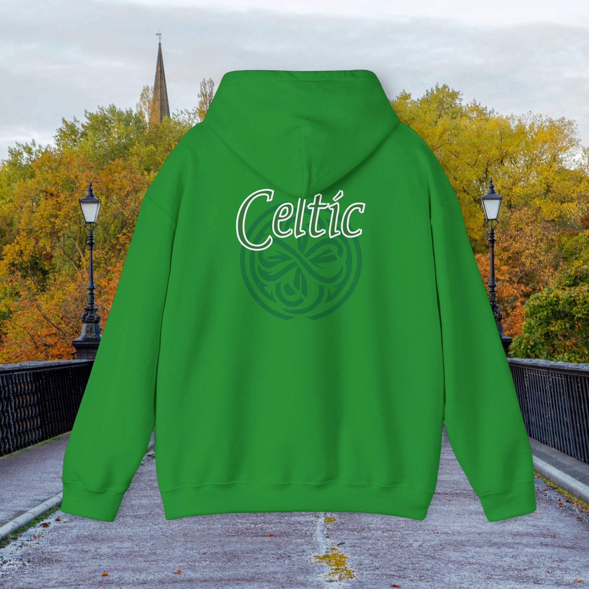 This Celtic FC themed heavy blend hooded sweatshirt is relaxation itself. Made with a thick blend of cotton and polyester, it feels plush, soft and warm, a perfect choice for any cold day. In the front, the spacious kangaroo pocket adds daily practicality while the hood's drawstring is the same color as the base sweater for extra style points.