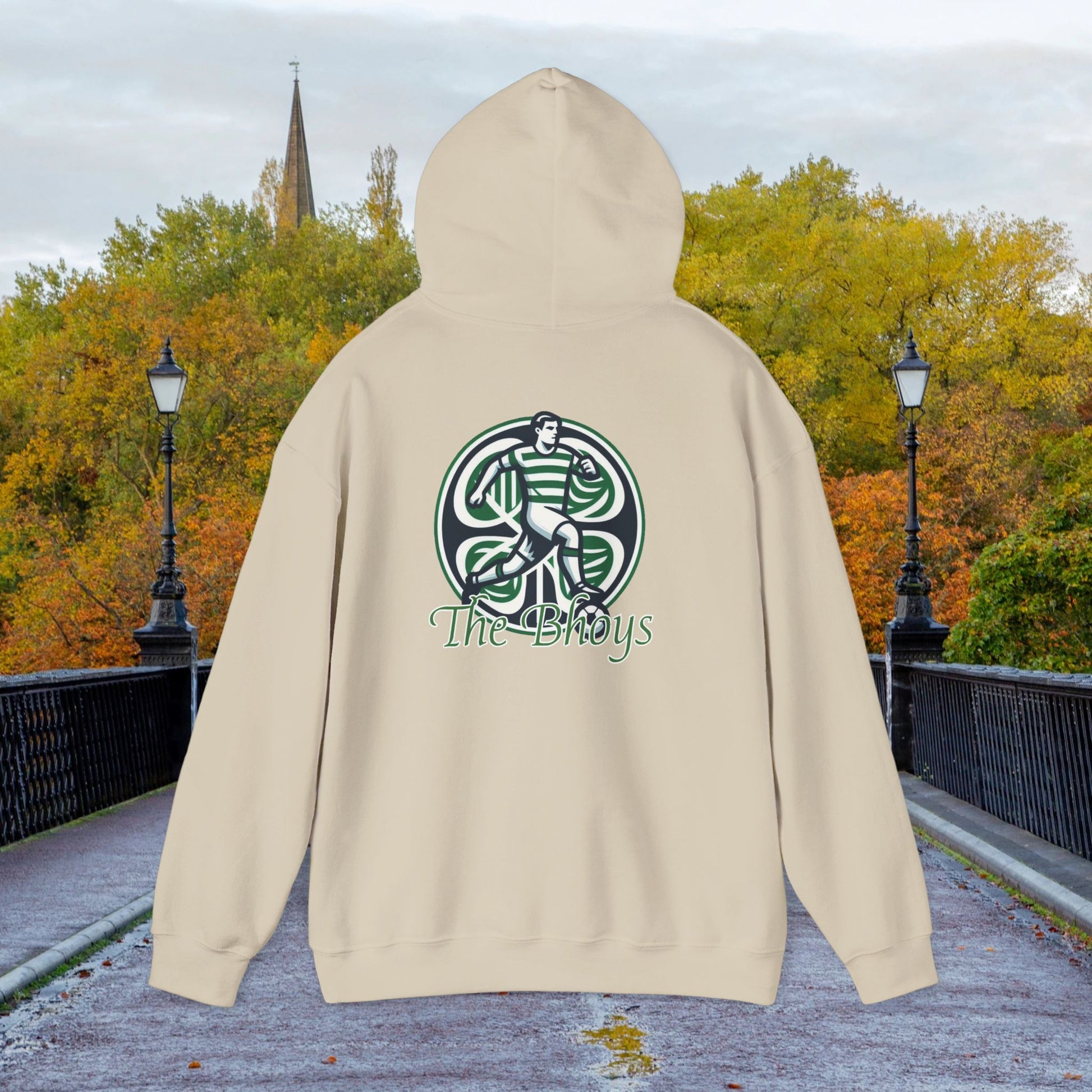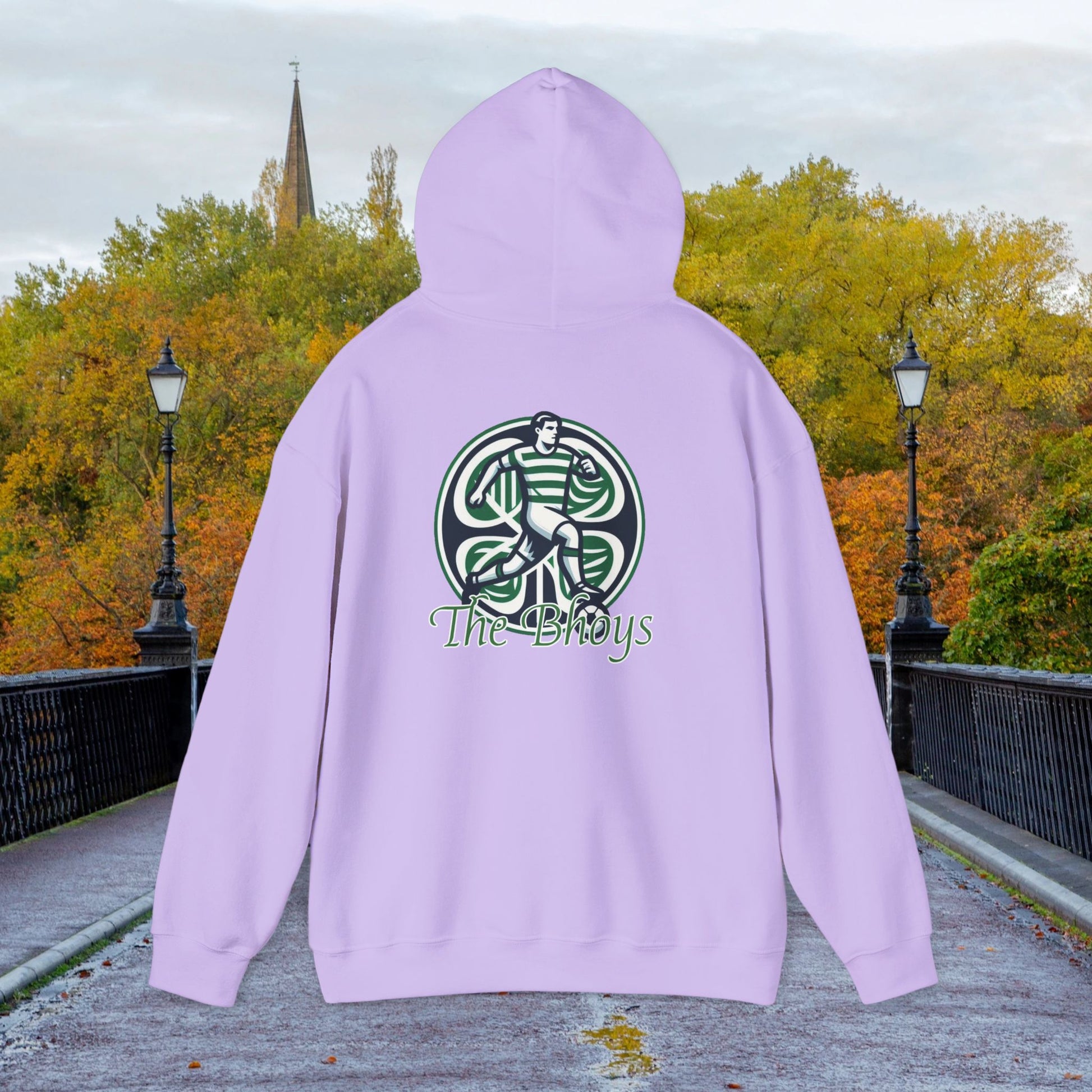 This Celtic FC themed heavy blend hooded sweatshirt is relaxation itself. Made with a thick blend of cotton and polyester, it feels plush, soft and warm, a perfect choice for any cold day. In the front, the spacious kangaroo pocket adds daily practicality while the hood's drawstring is the same color as the base sweater for extra style points.