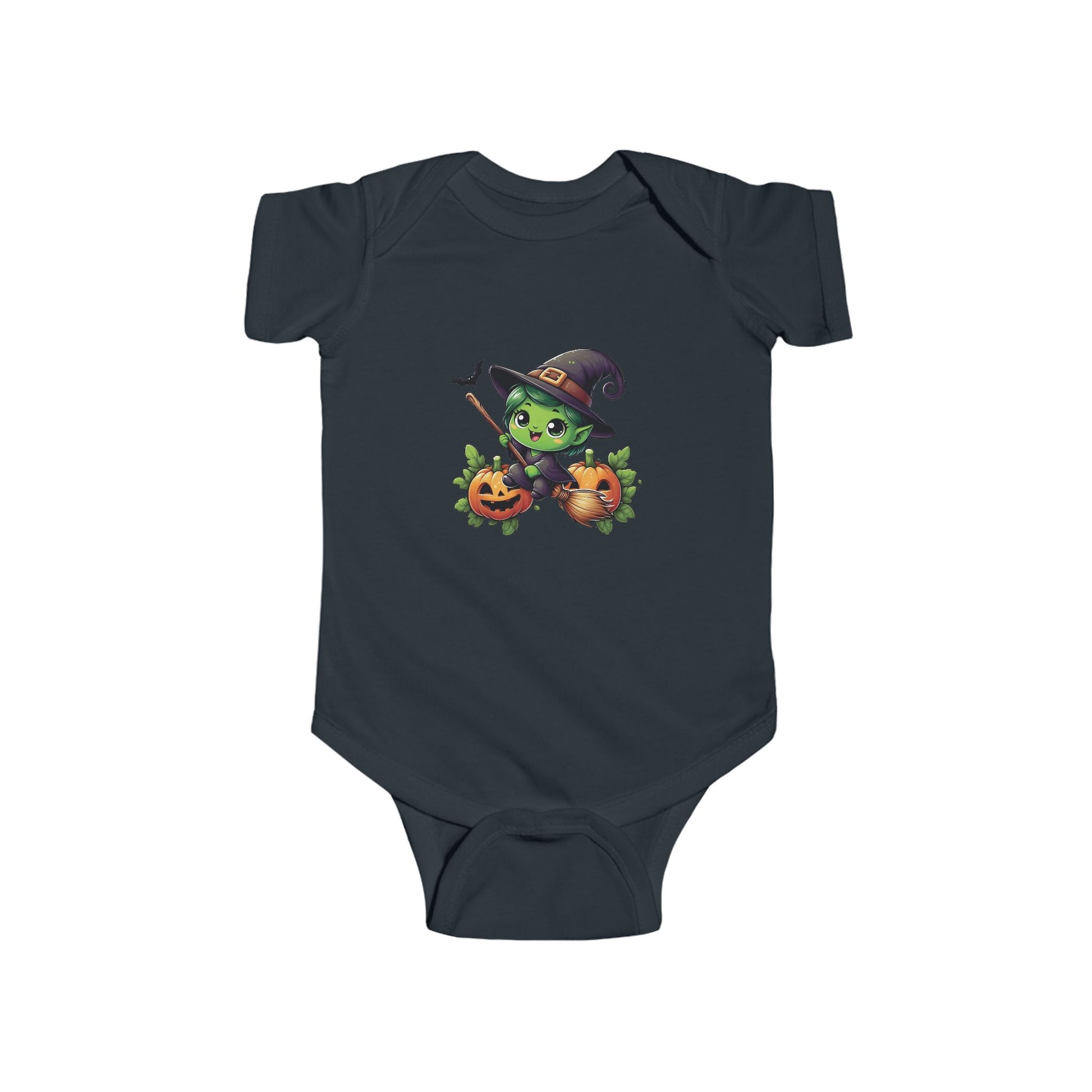 Baby clothing needs to be both durable and soft. With this Halloween themed infant fine jersey bodysuit, youths get just that. The fabric is 100% cotton for solid colors. For heather colors, polyester is included. There are seams along the sides of this product. All bindings are made with ribbed knitting for improved durability. There are plastic snaps at the cross closure for easy changing access.