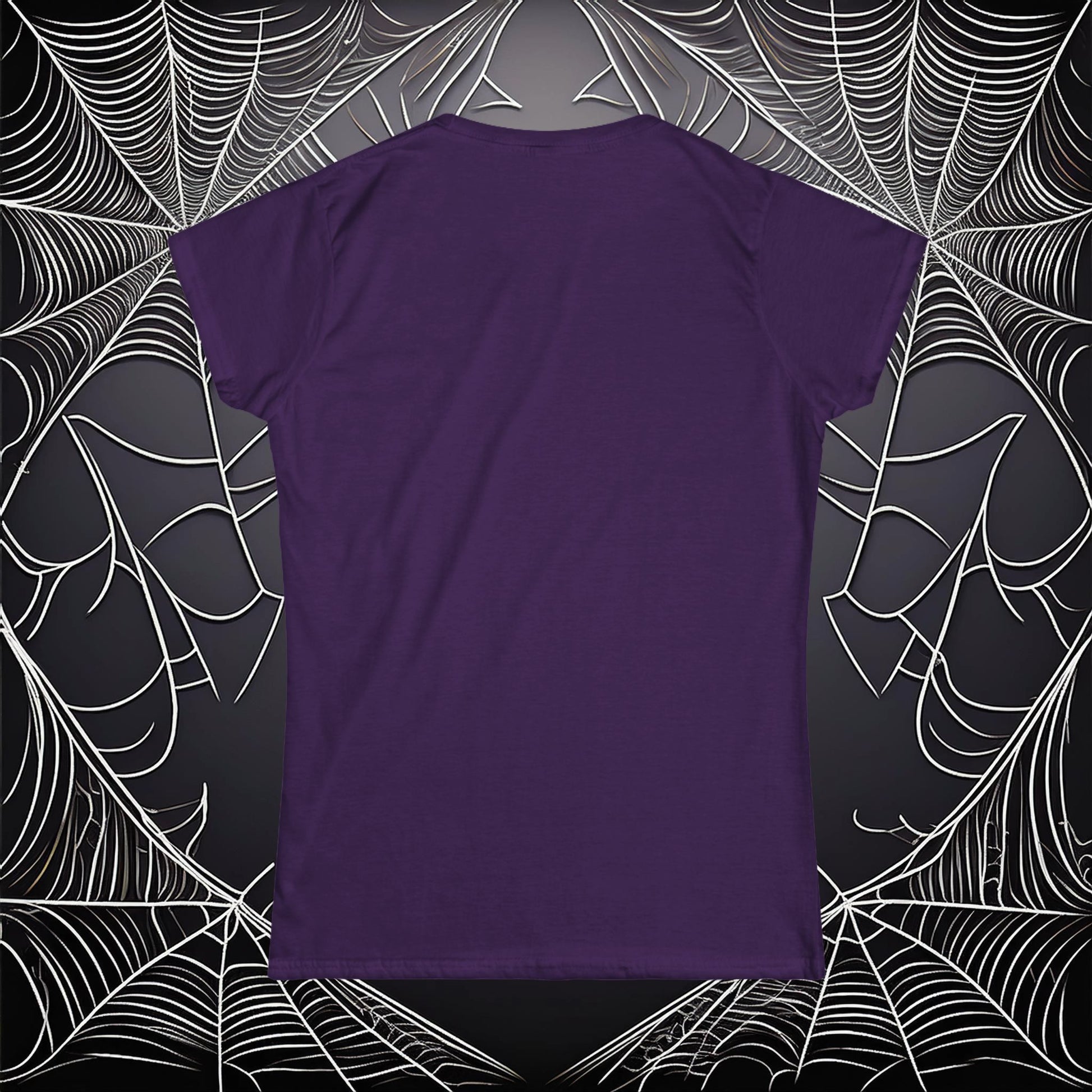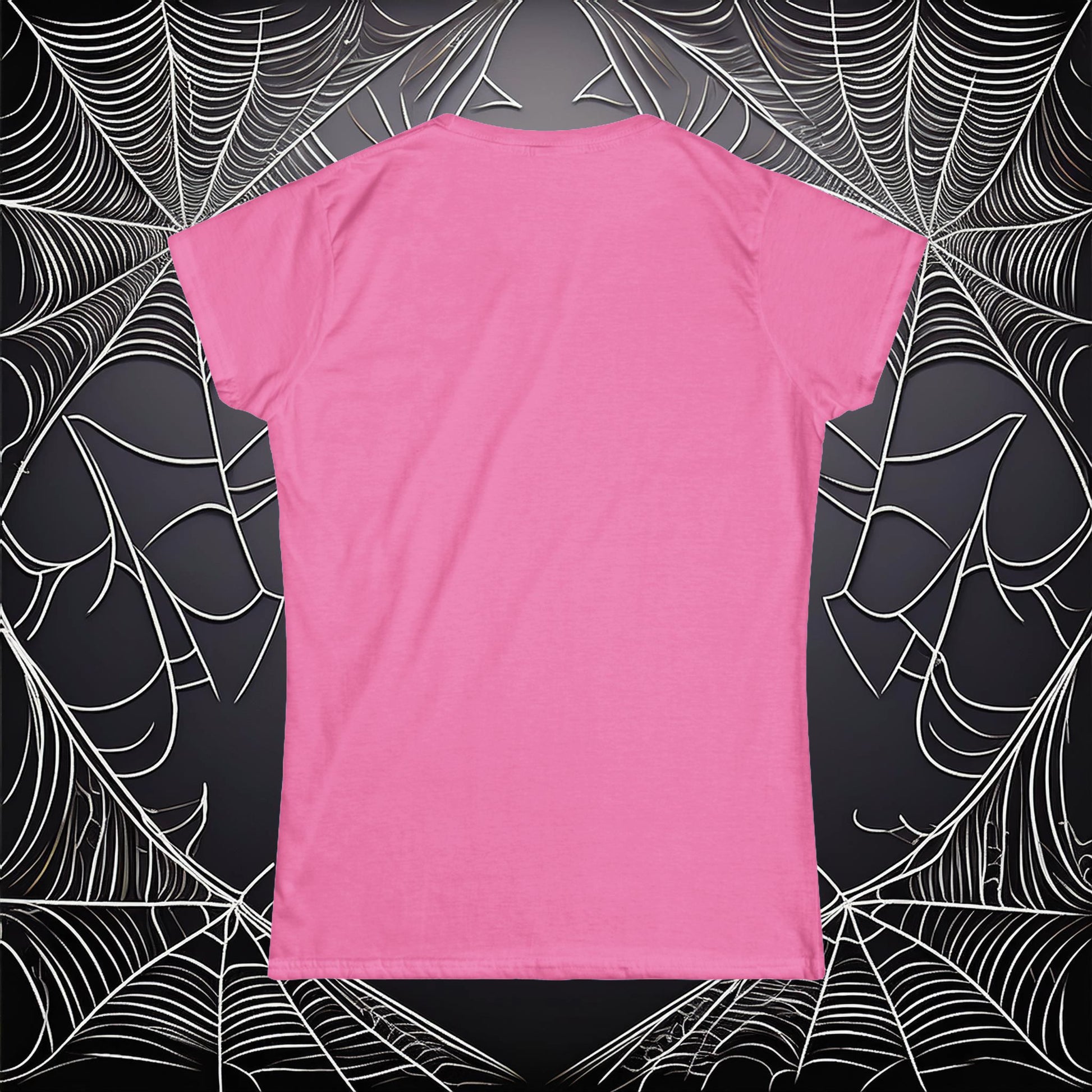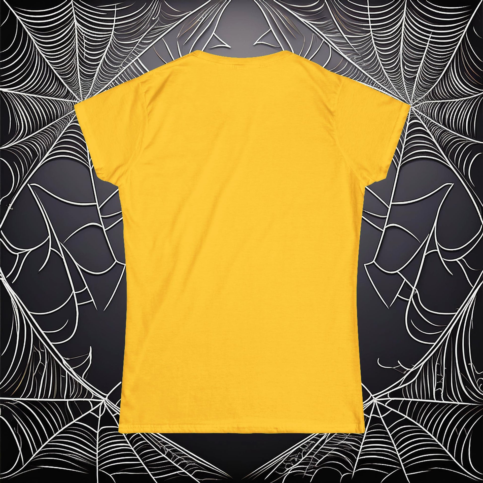This Halloween themed woman's softstyle tee is a more feminine take on the classic tee. The sleeves are shortened to reveal some shoulder. The fabric is 100% ringspun cotton for all solid colors. The shoulders are taped with twill to prolong durability. The collar seam is reinforced with ribbed knitting.