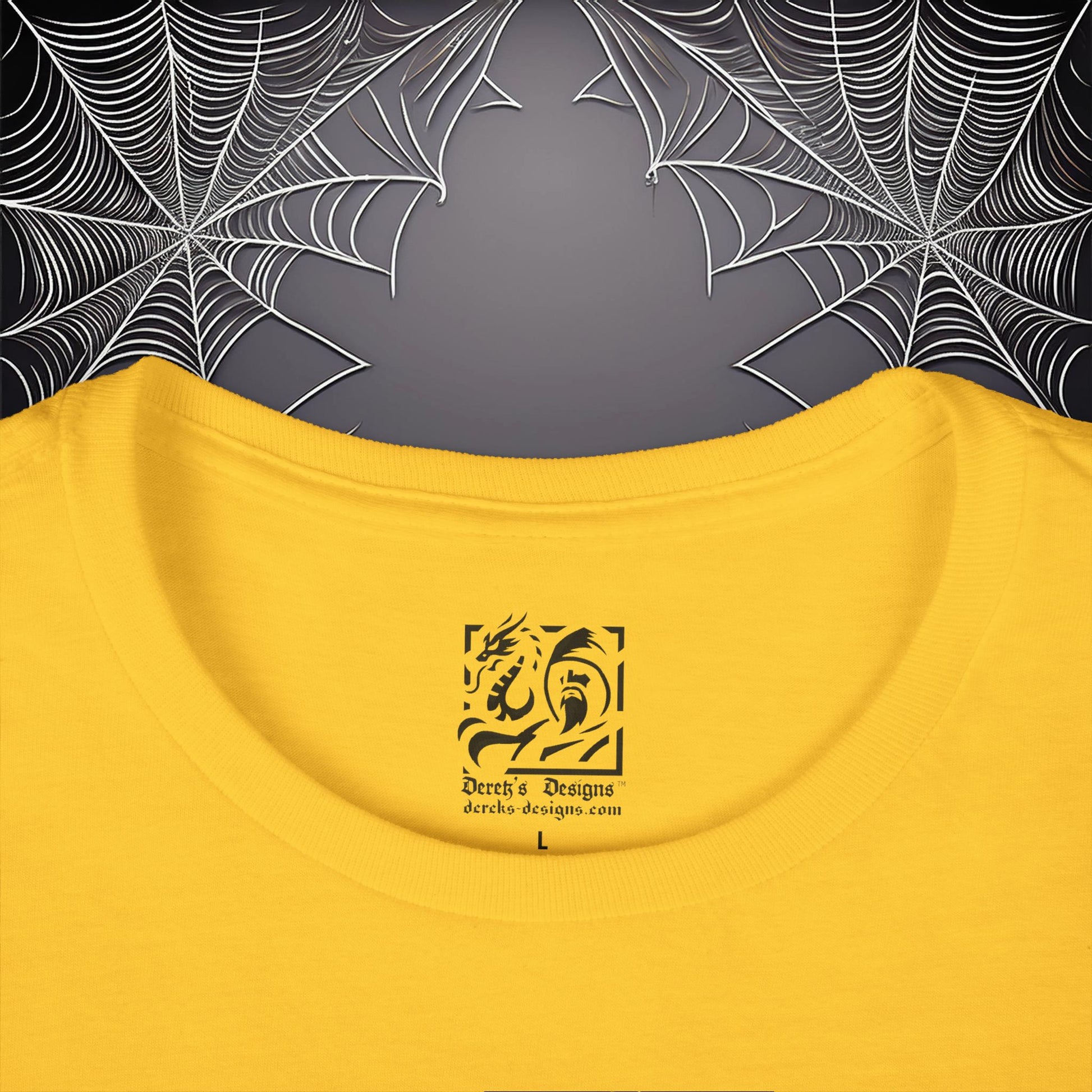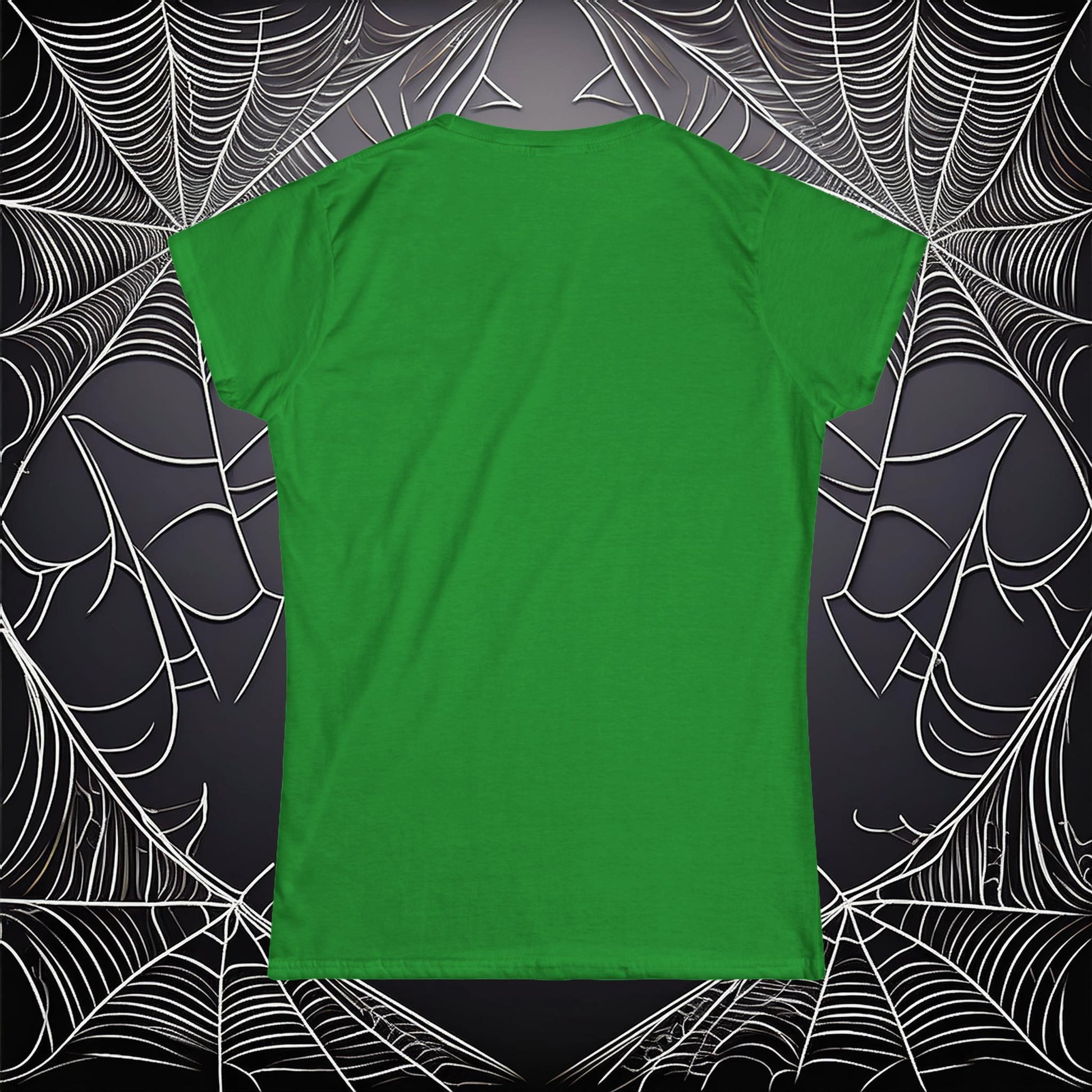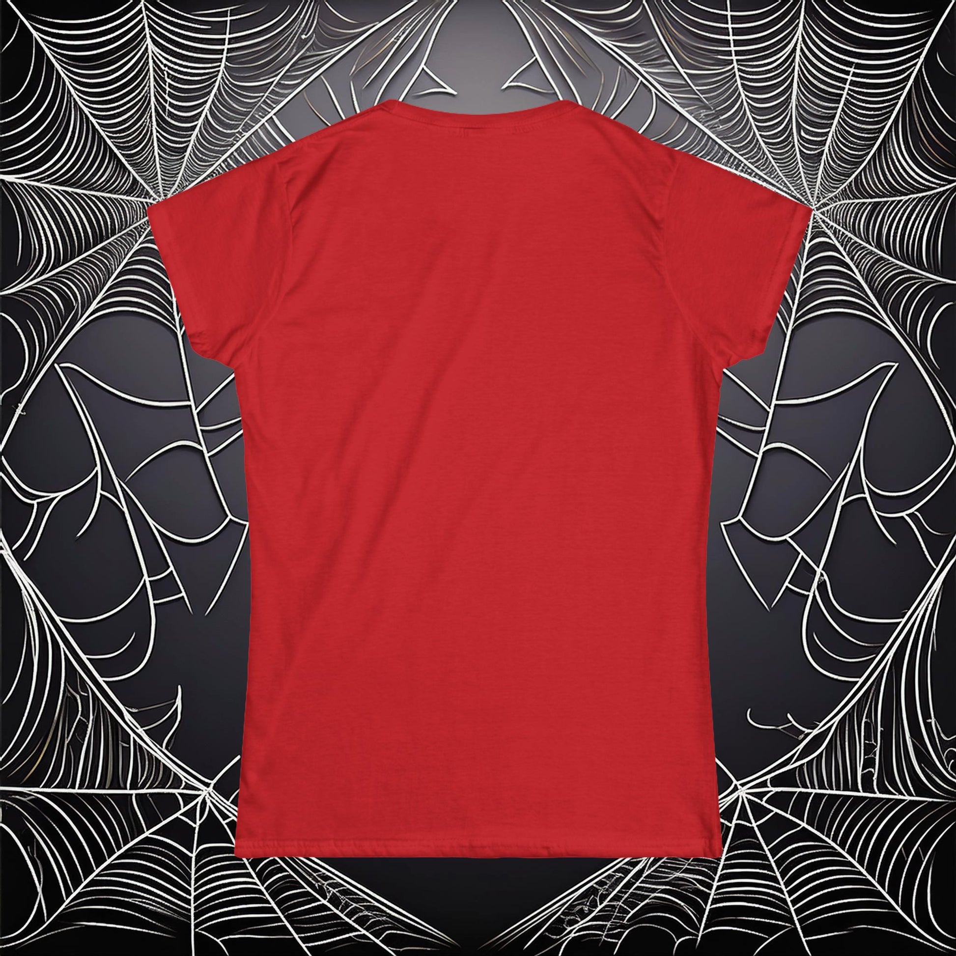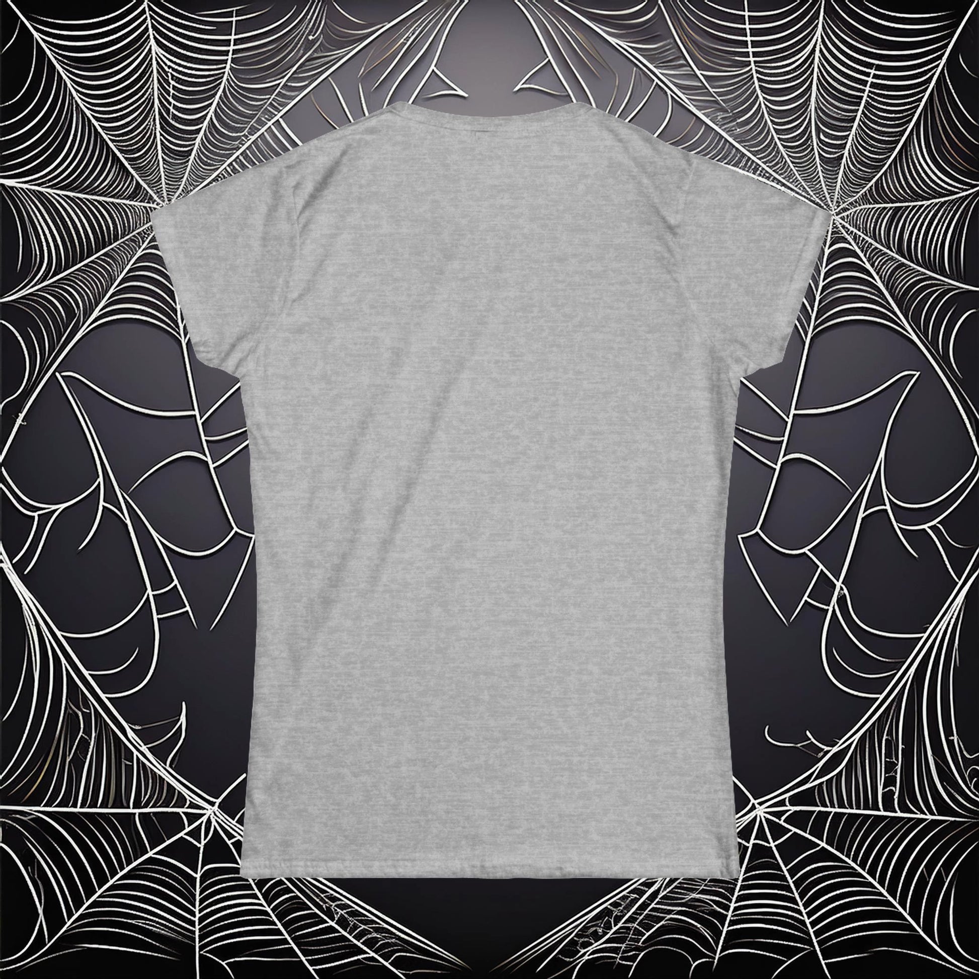 This Halloween themed woman's softstyle tee is a more feminine take on the classic tee. The sleeves are shortened to reveal some shoulder. The fabric is 100% ringspun cotton for all solid colors. The shoulders are taped with twill to prolong durability. The collar seam is reinforced with ribbed knitting.