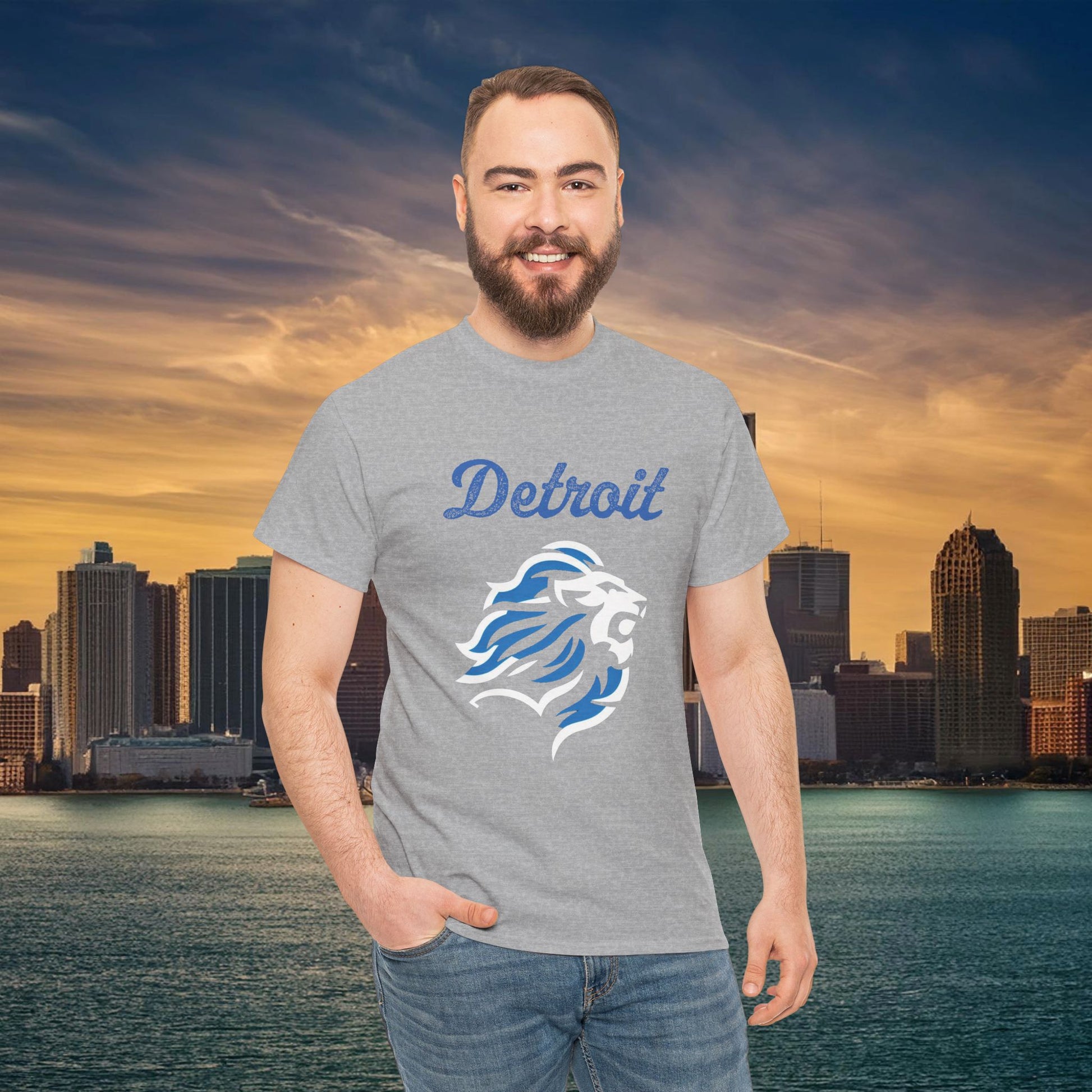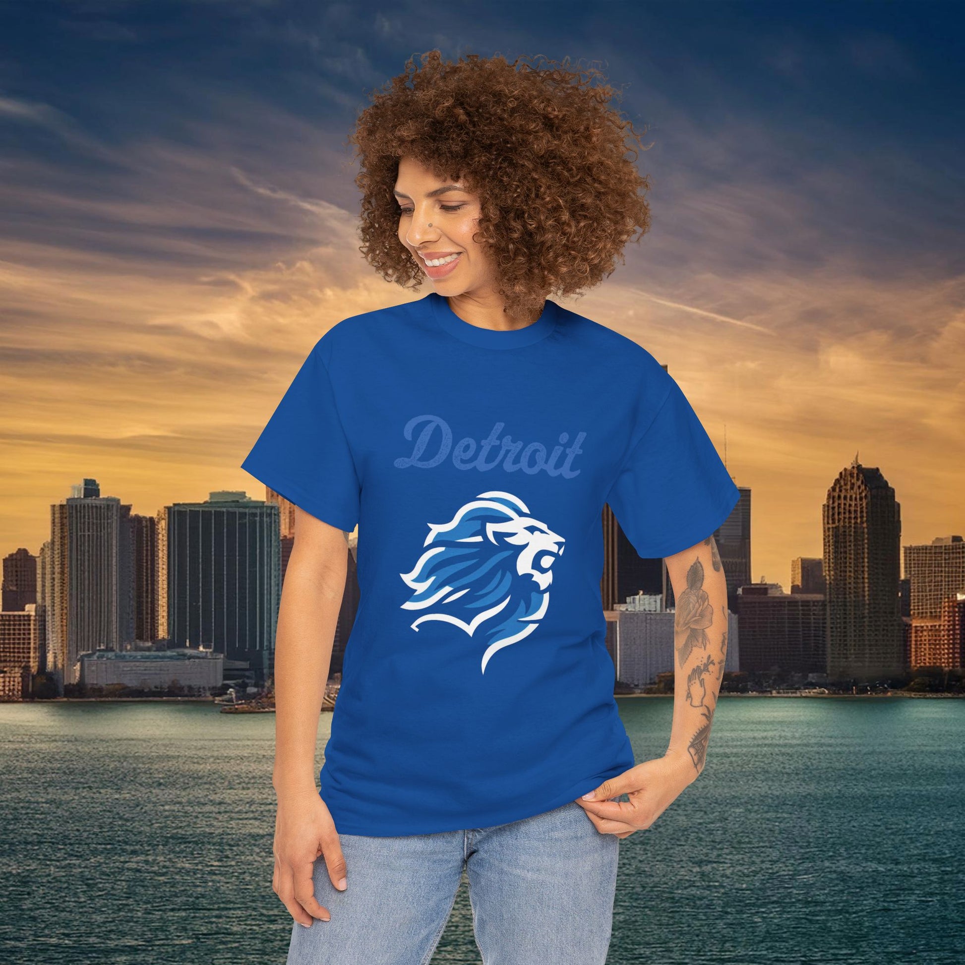 This Detroit Lions themed heavy cotton tee is the basic staple of any wardrobe. It is the foundation upon which casual fashion grows. The specially spun fibers provide a smooth surface for premium printing vividity and sharpness. No side seams mean there are no itchy interruptions under the arms. The shoulders have tape for improved durability.