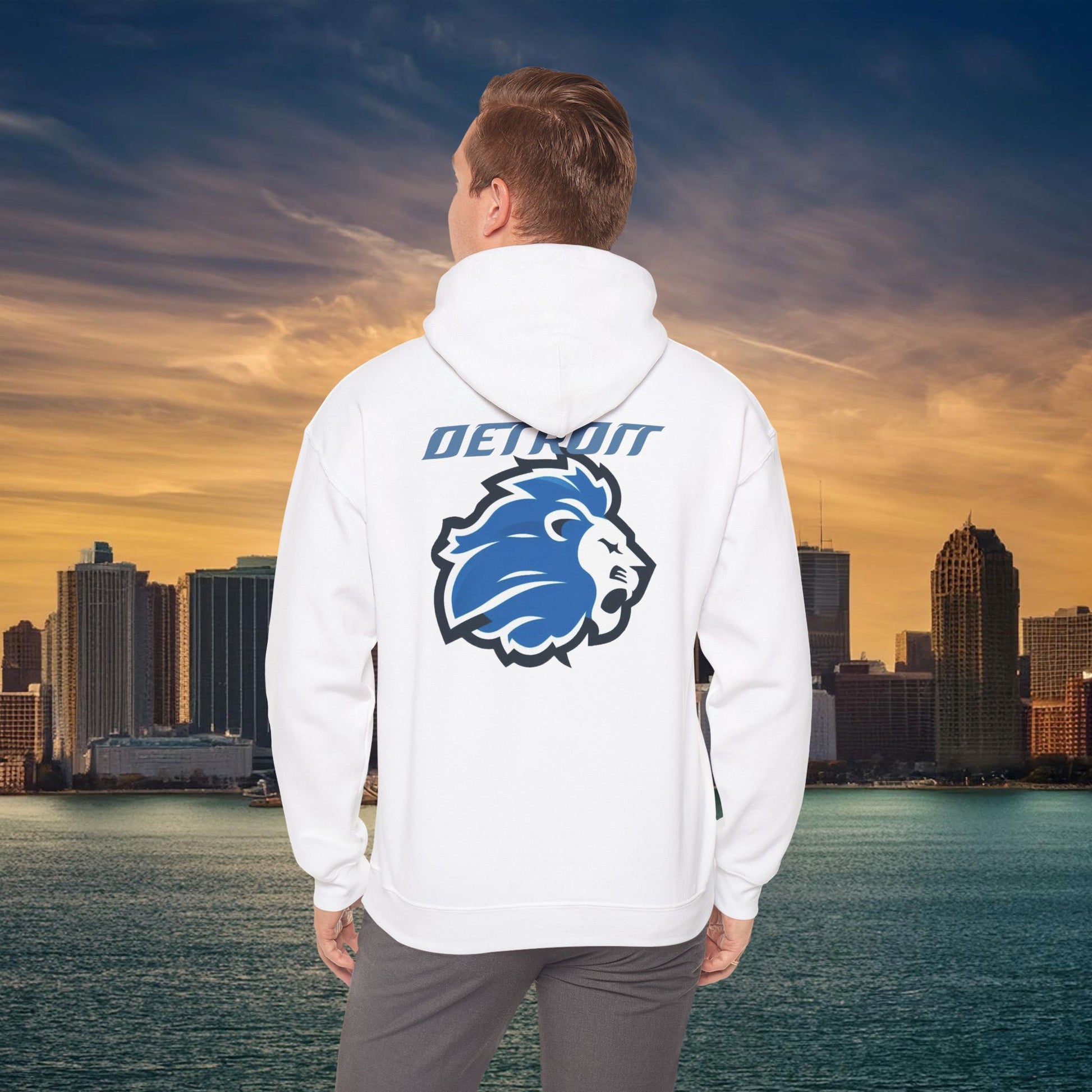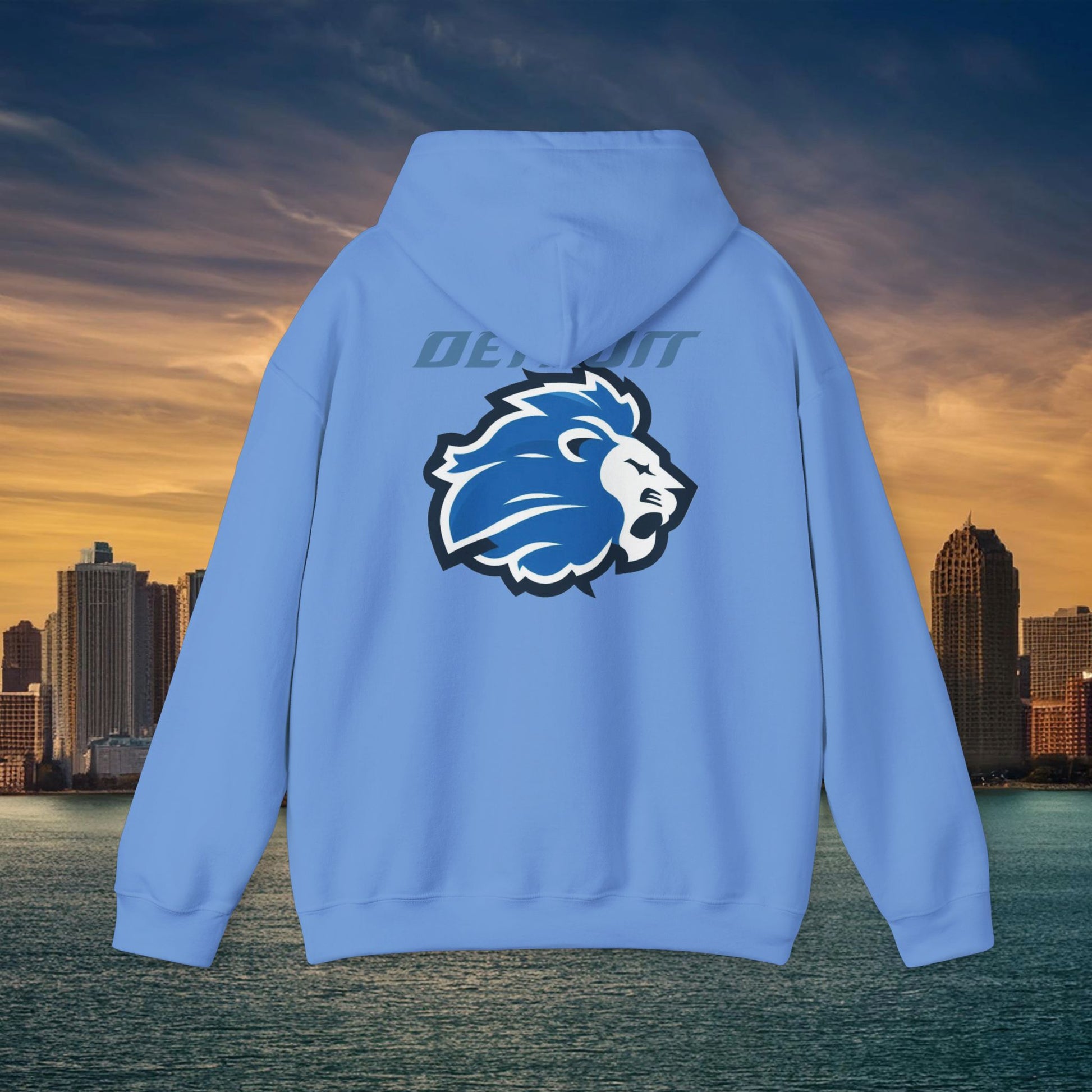 This Detroit Lions themed heavy blend hooded sweatshirt is relaxation itself. Made with a thick blend of cotton and polyester, it feels plush, soft and warm, a perfect choice for any cold day. In the front, the spacious kangaroo pocket adds daily practicality while the hood's drawstring is the same color as the base sweater for extra style points.