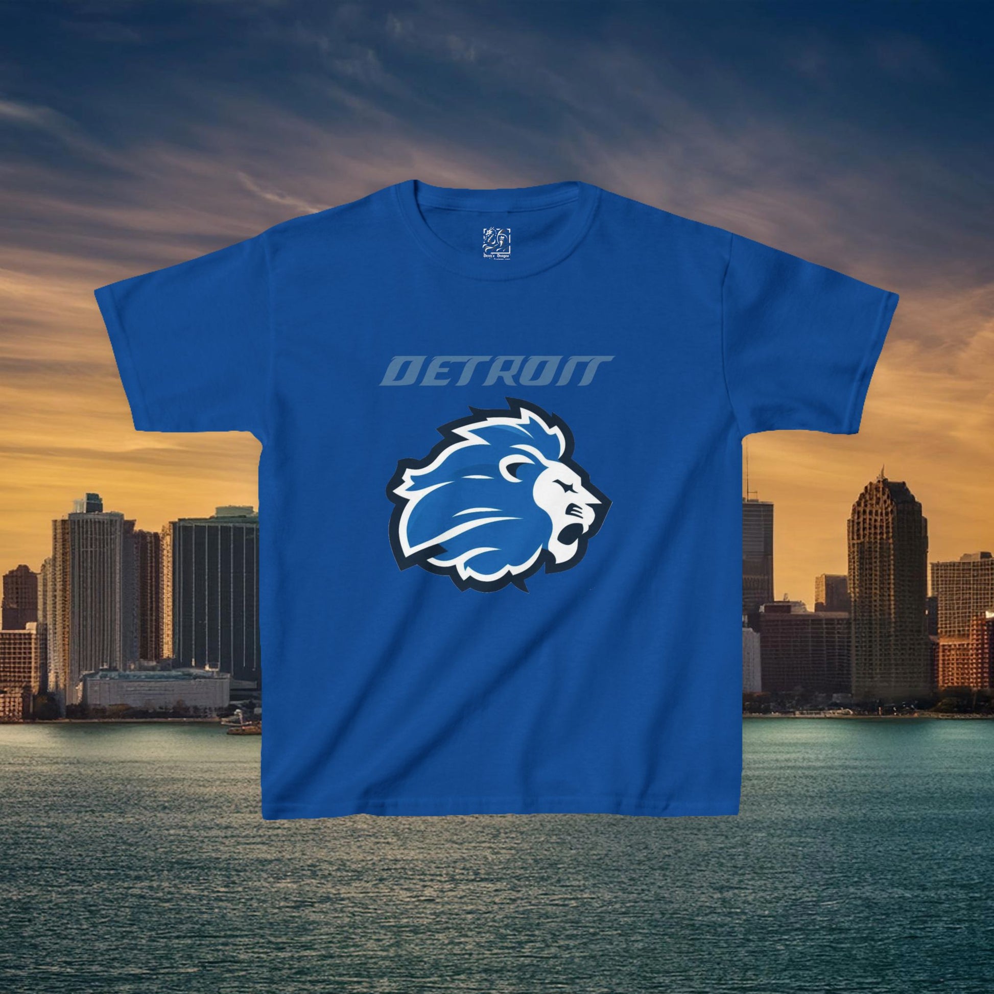 This Detroit Lions themed kids heavy cotton tee is perfect for everyday use. The fabric is 100% cotton for solid colors. Polyester is included for heather-color variants. The shoulders have twill tape for improved durability. The collar is curl resistant due to ribbed knitting. There are no seams along the sides.