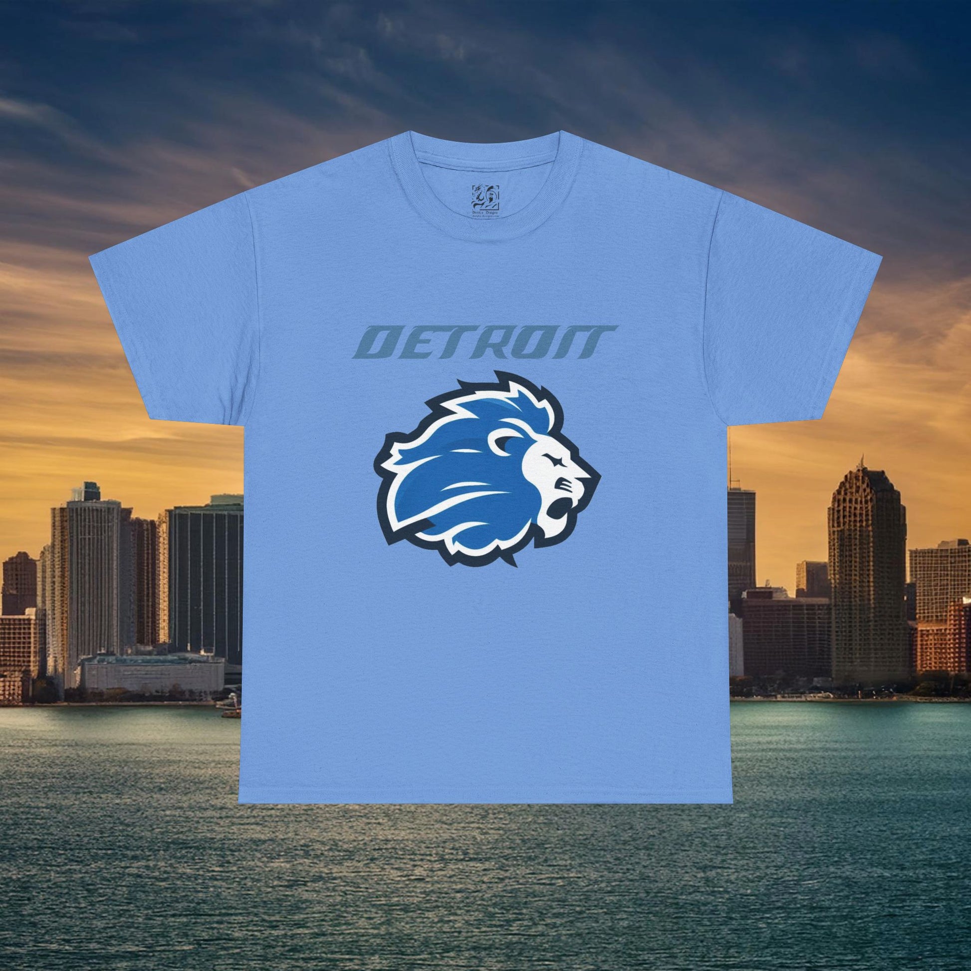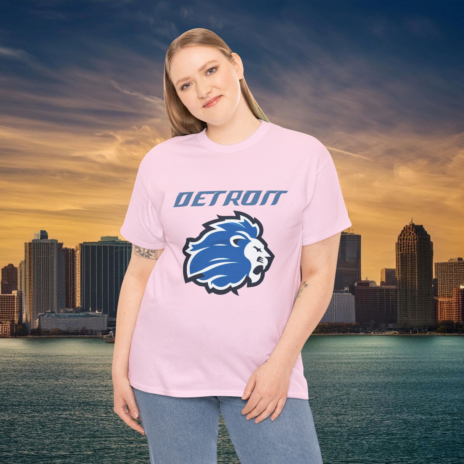 This Detroit Lions themed heavy cotton tee is the basic staple of any wardrobe. It is the foundation upon which casual fashion grows. The specially spun fibers provide a smooth surface for premium printing vividity and sharpness. No side seams mean there are no itchy interruptions under the arms. The shoulders have tape for improved durability.