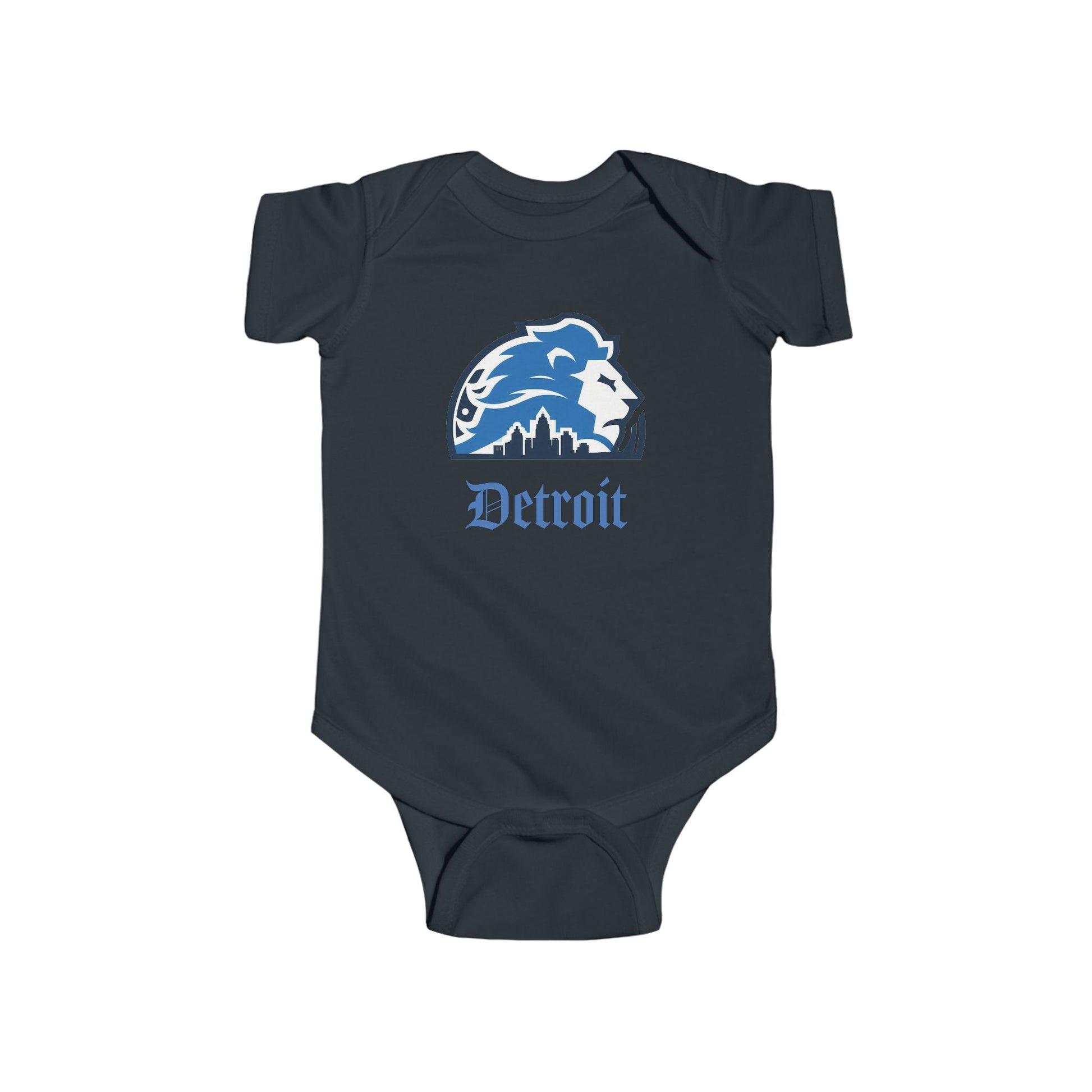 Baby clothing needs to be both durable and soft. With this Detroit Lions themed infant fine jersey bodysuit, youths get just that. The fabric is 100% cotton for solid colors. For heather colors, polyester is included. There are seams along the sides of this product. All bindings are made with ribbed knitting for improved durability. There are plastic snaps at the cross closure for easy changing access.