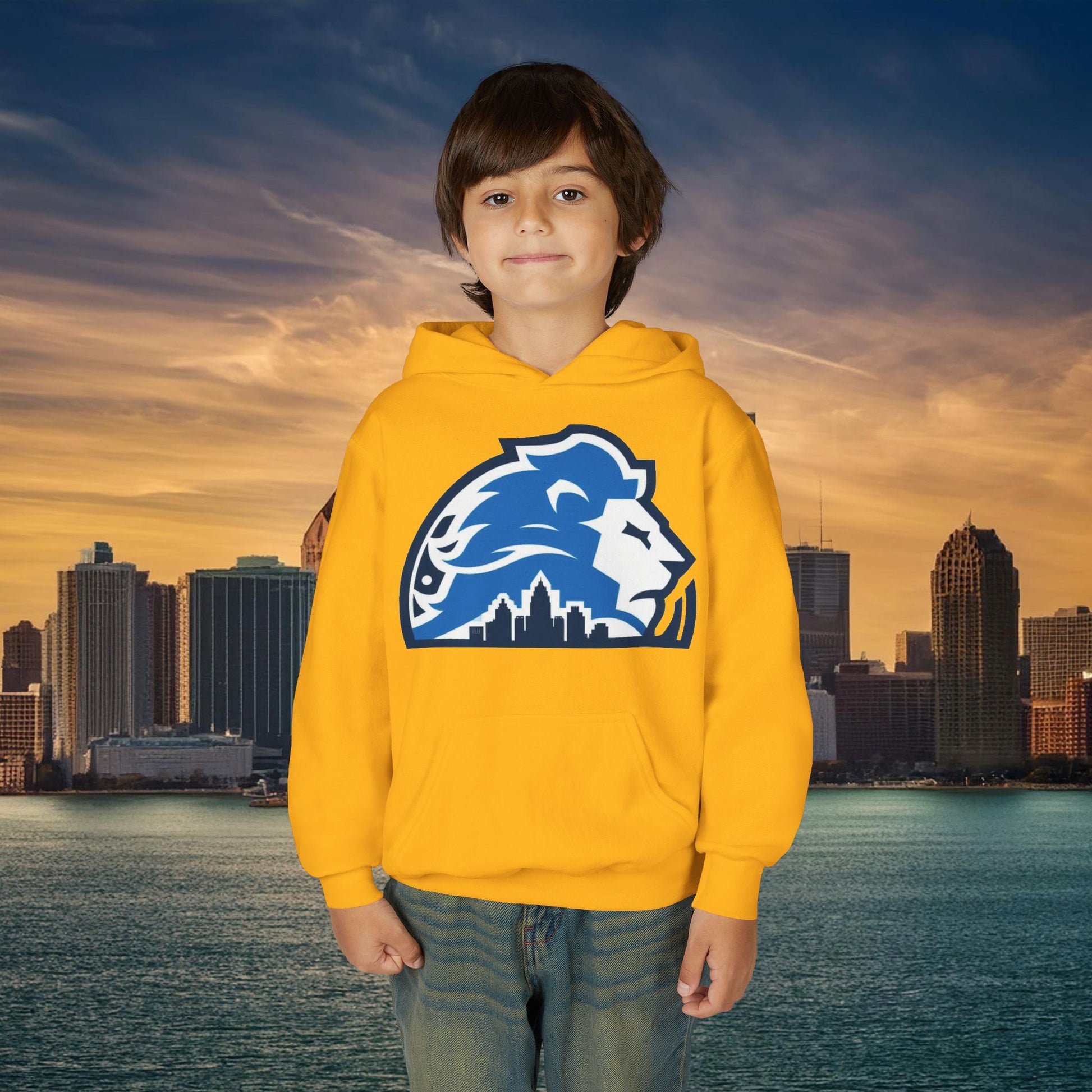 This Detroit Lions themed youth blend hooded sweatshirt is made of ultra-soft, preshrunk fleece that feels wonderful against the skin. The garment is 50% cotton 50% polyester with reduced lint buildup. The front has a kangaroo pocket big enough for both hands. The neck is reinforced with twill taping.