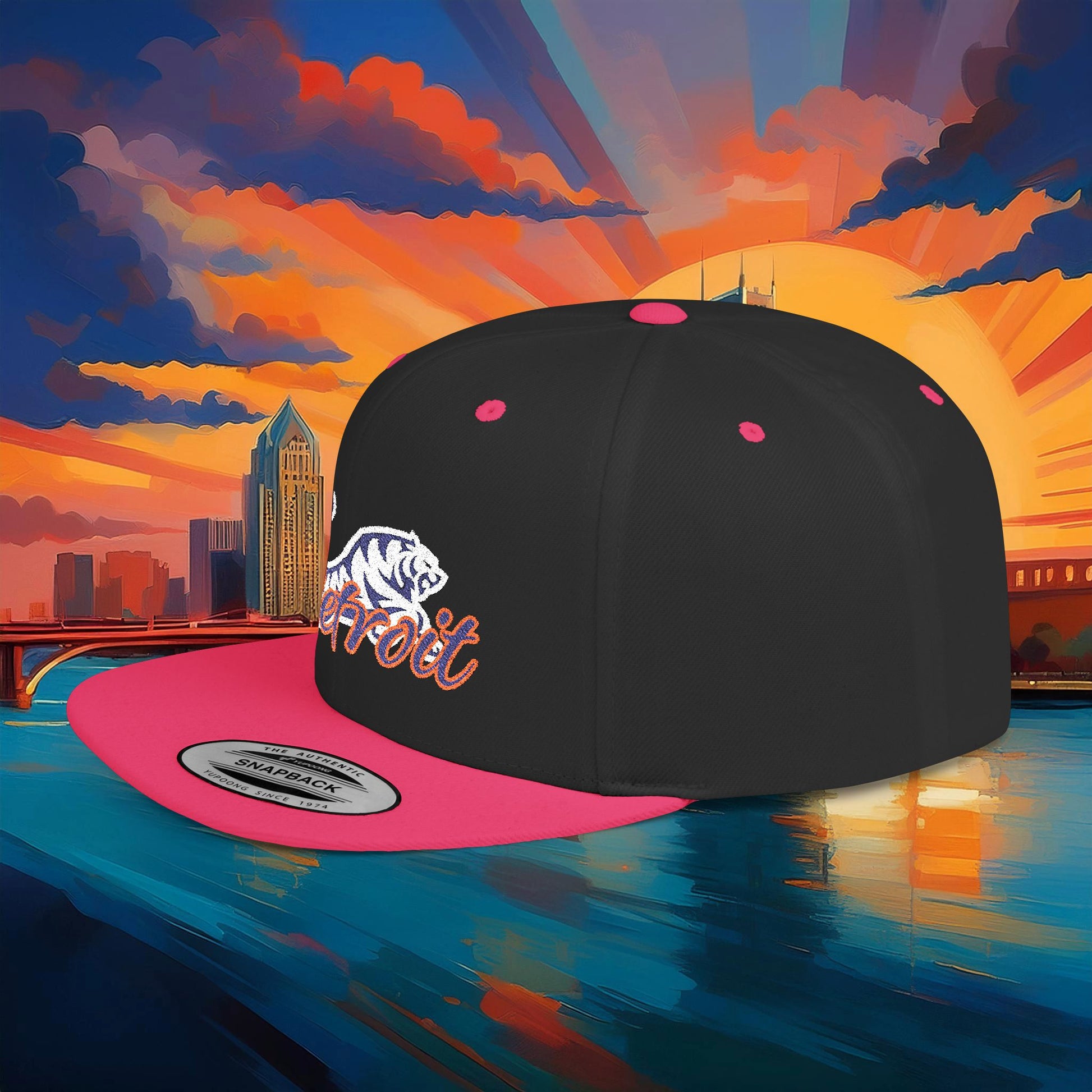 Introducing this Detroit Tigers themed ultimate flat bill snapback cap for adults, designed to fit all head sizes perfectly and complete any ensemble. Crafted from a premium blend of 80% acrylic and 20% wool, with the white variant being 100% acrylic, this cap ensures both comfort and durability. Its structured, high-profile, six-panel design gives a sleek and modern look. The flat bill, complemented by a green undervisor, adds a touch of classic style that's both minimal and timeless. The snapback closure provides a customizable fit, making this cap the ideal accessory for any casual outfit.