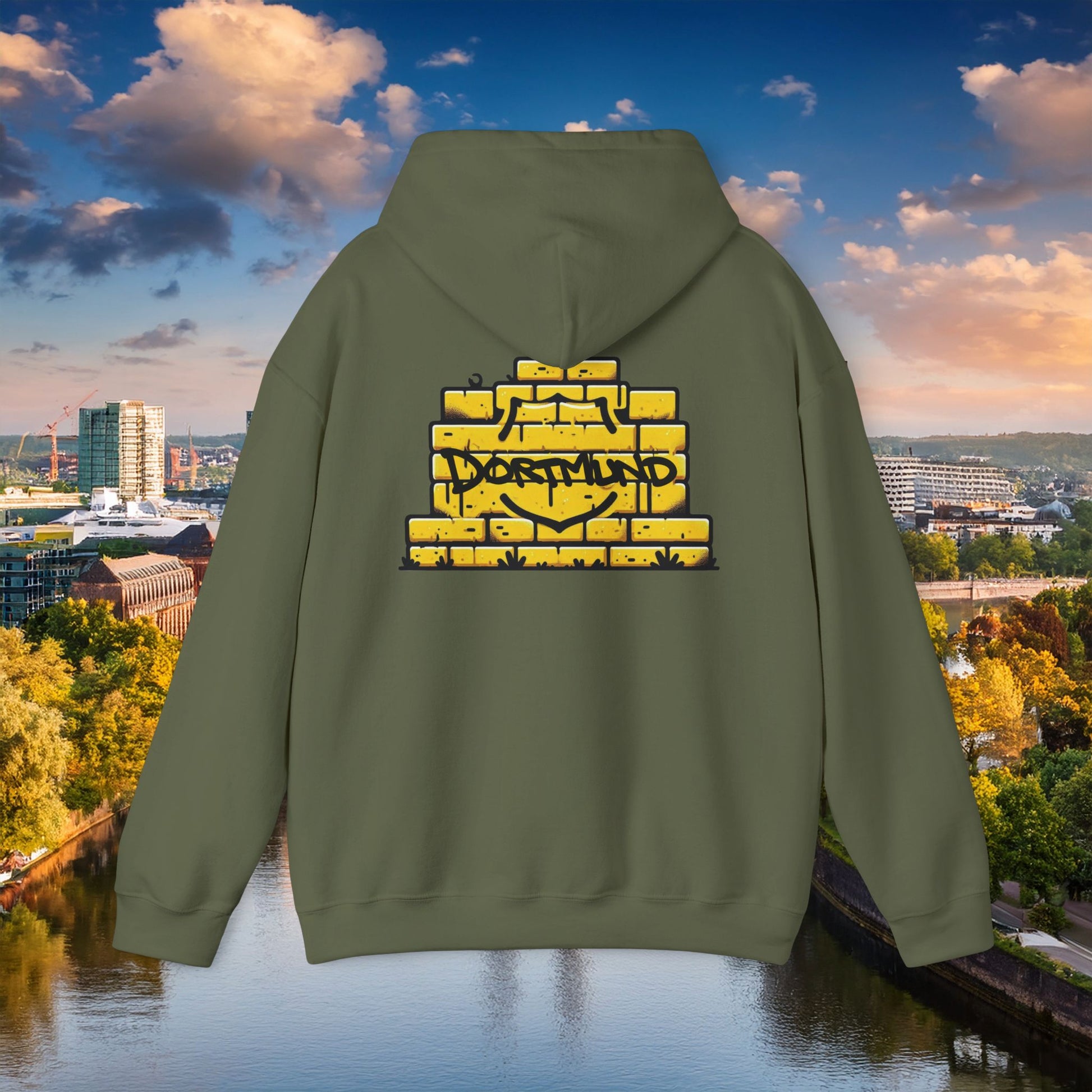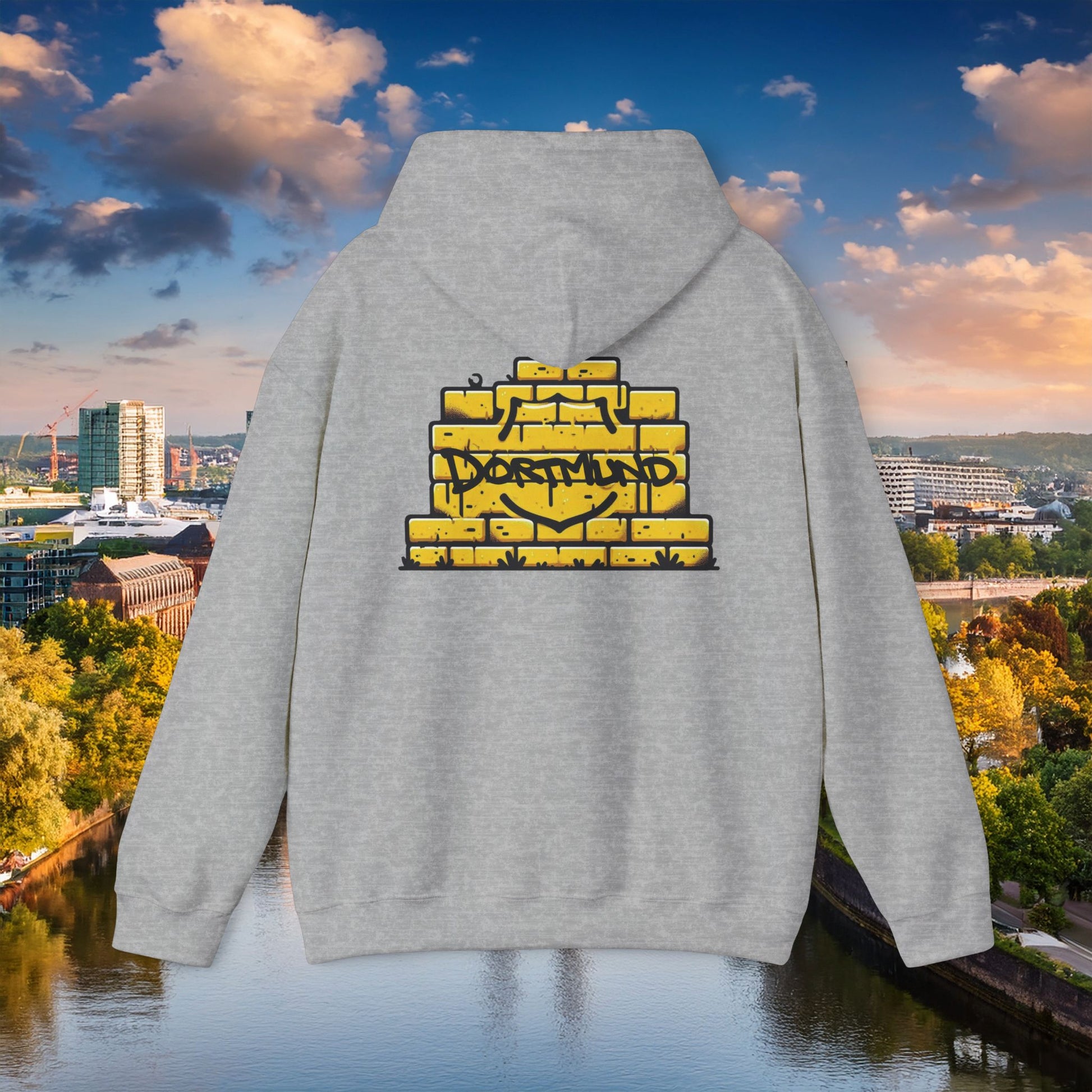 This Borussia Dortmund themed unisex heavy blend hooded sweatshirt is relaxation itself. Made with a thick blend of cotton and polyester, it feels plush, soft and warm, a perfect choice for any cold day. In the front, the spacious kangaroo pocket adds daily practicality while the hood's drawstring is the same color as the base sweater for extra style points.