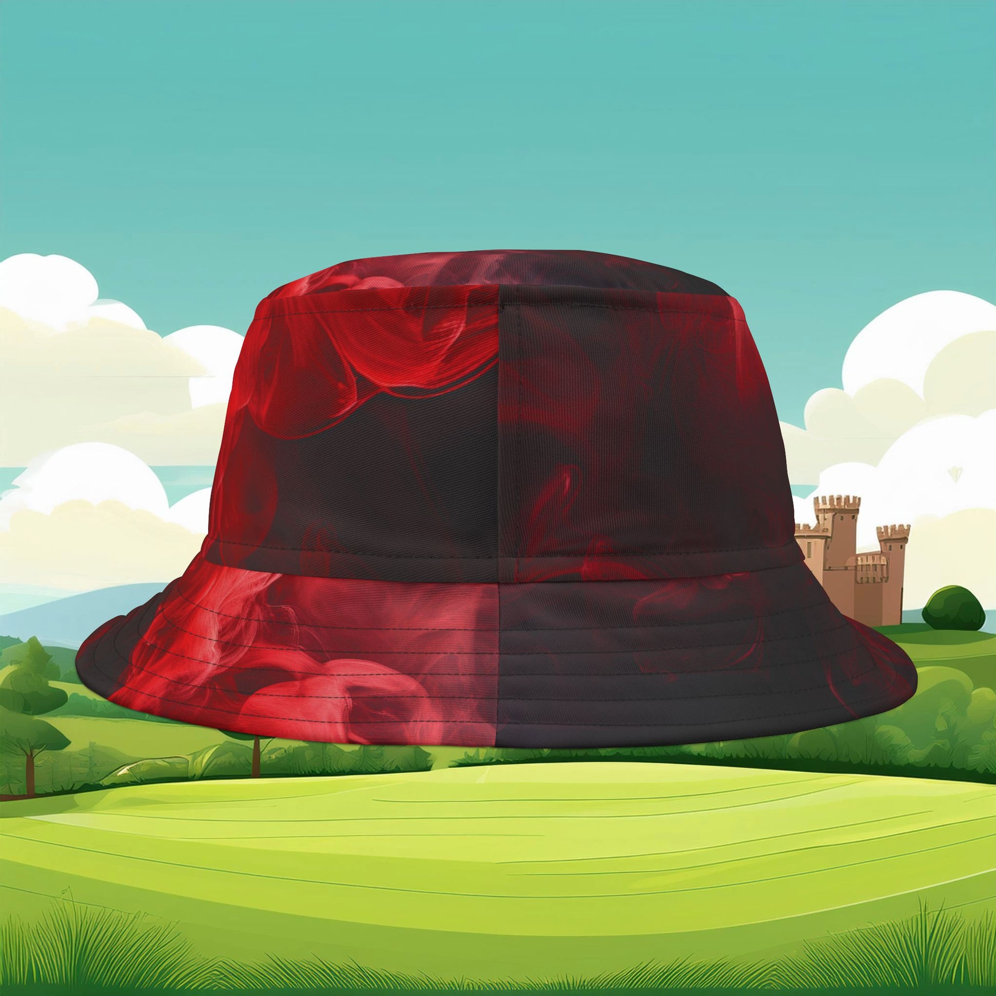 A unique bucket hat featuring smoke from dragon's breath details. This accessory is perfect for those looking to make a statement and stand out from the crowd. Ideal for outdoor events, festivals, and summer days.