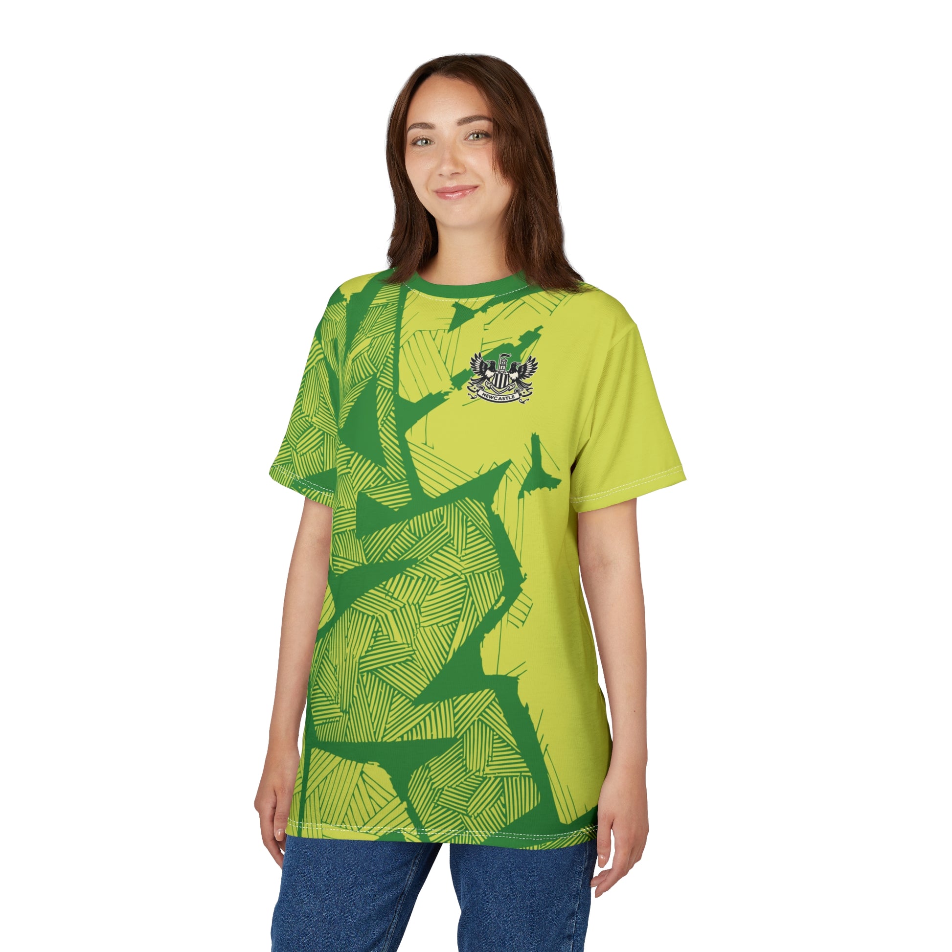Embrace your individuality with this vibrant Newcastle United themed Unisex Tee, designed to make a bold statement in any casual setting. Inspired by the green and gold away kits from 1988-1993, this tee is not only comfortable but also highly durable, ensuring it maintains its shape wear after wear. Customize it with the name and number of your choice. Perfect for everyday wear, outdoor adventures, or lounging at home, it fits seamlessly into any wardrobe. The breathable fabric is ideal for warm weather, while the unique pattern adds a playful twist to your outfit. This tee makes a great gift for friends or family who love fashion-forward clothing and can be a great addition to holiday celebrations, birthdays, or special outings. Its versatile design is suitable for both men and women, making it a go-to choice for anyone looking to express their style with confidence.