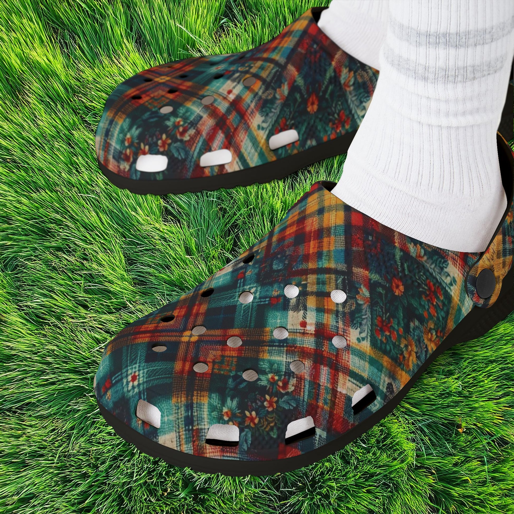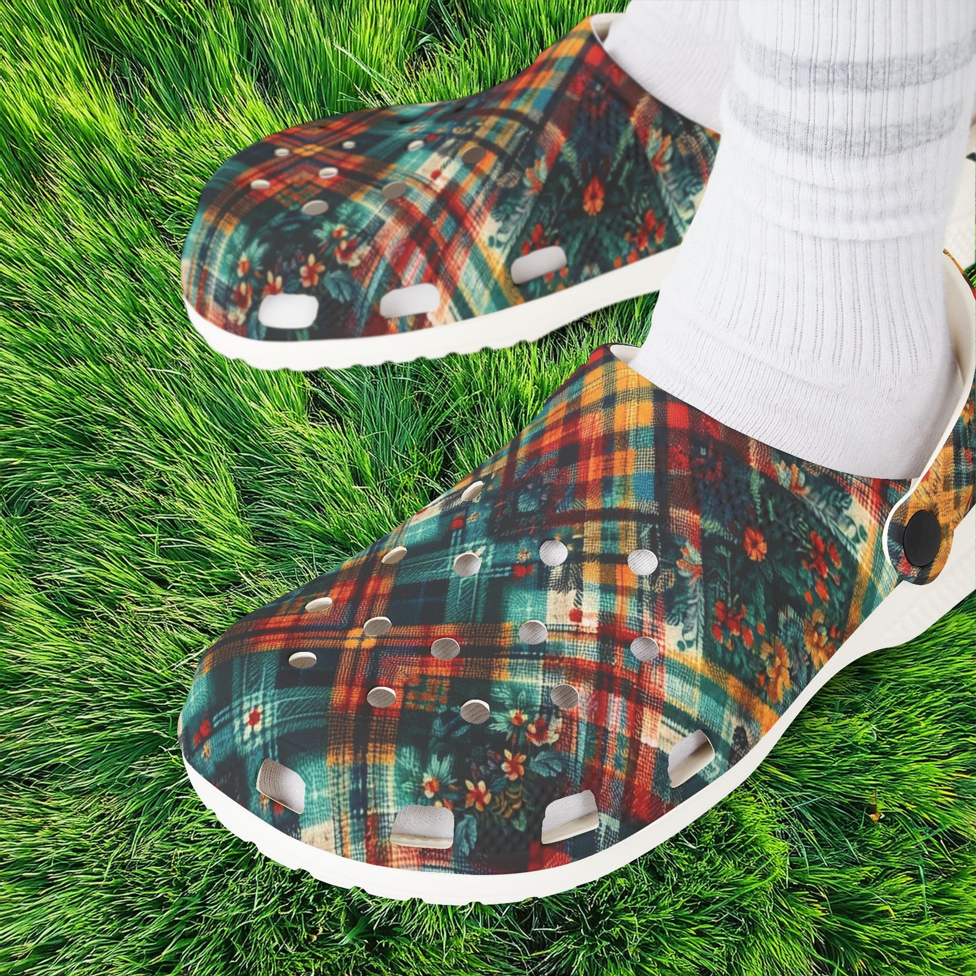Floral Plaid Foam Clogs