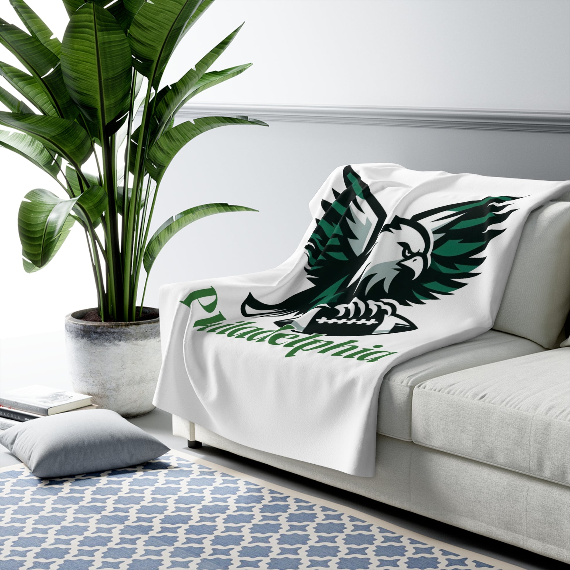 Unbelievably fluffy and warm - this Philadelphia Eagles themed high-quality cozy fleece blanket is impossible to leave behind wherever one might go. The perfect size for snuggling on the couch, by the fireplace, or at outdoor events.