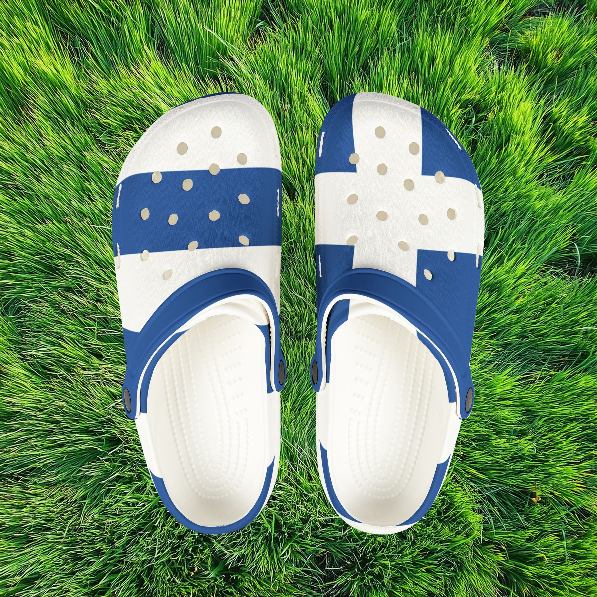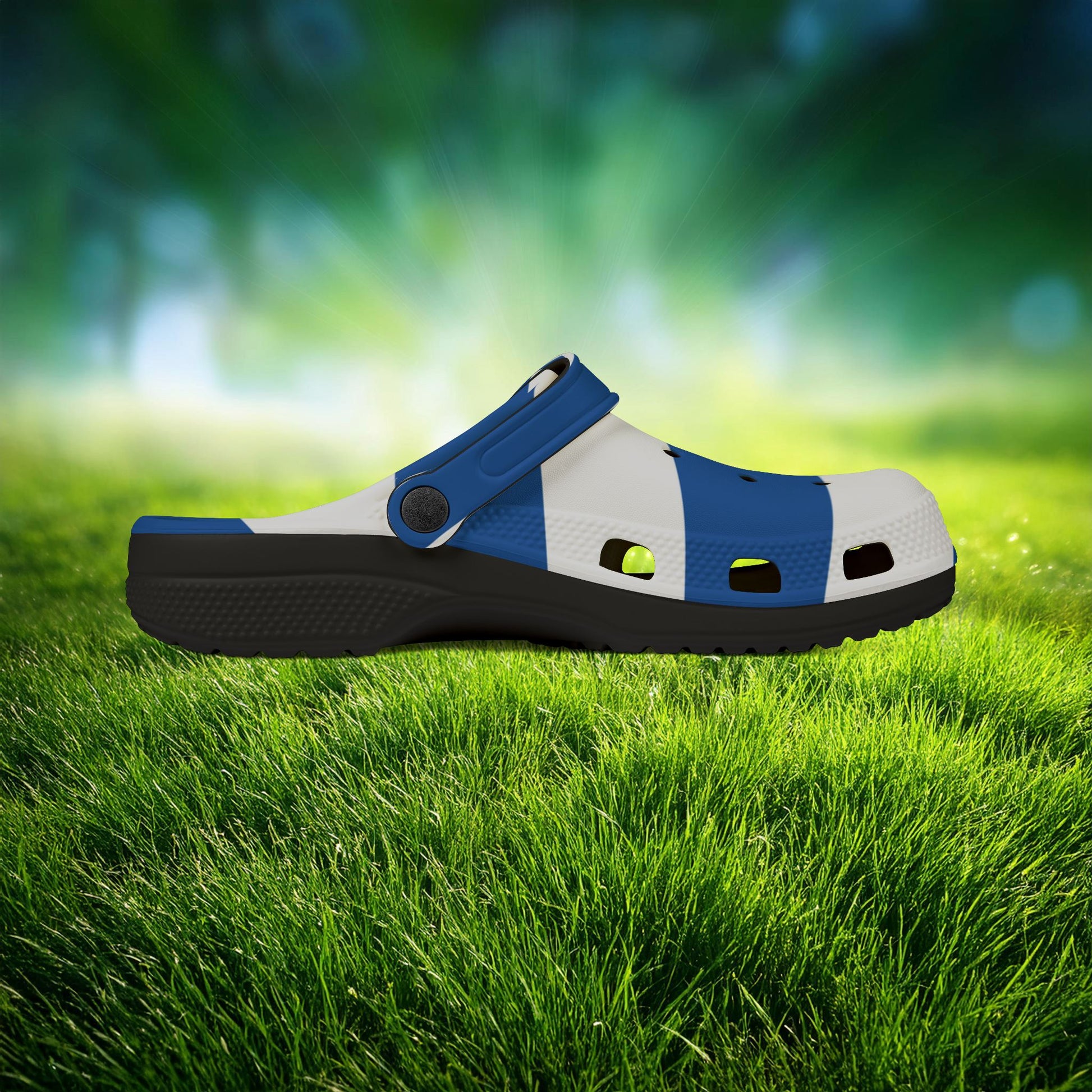 With a bold Greek flag print across the strap and exterior, these clogs aren’t just comfy - they’re a statement of pride and personality.