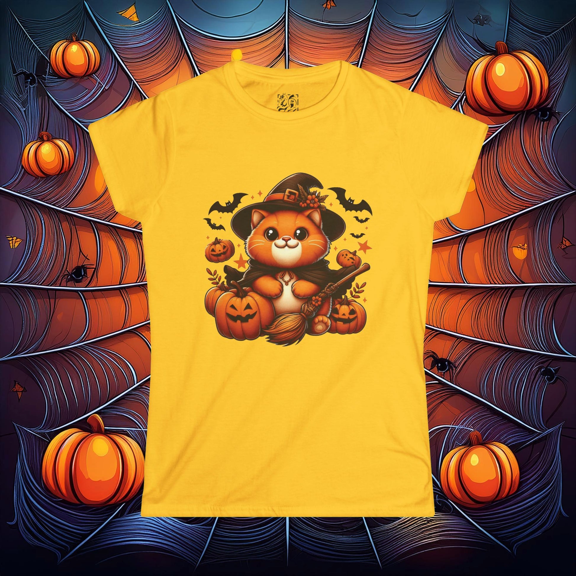 This Halloween themed woman's softstyle tee is a more feminine take on the classic tee. The sleeves are shortened to reveal some shoulder. The fabric is 100% ringspun cotton for all solid colors. The shoulders are taped with twill to prolong durability. The collar seam is reinforced with ribbed knitting.
