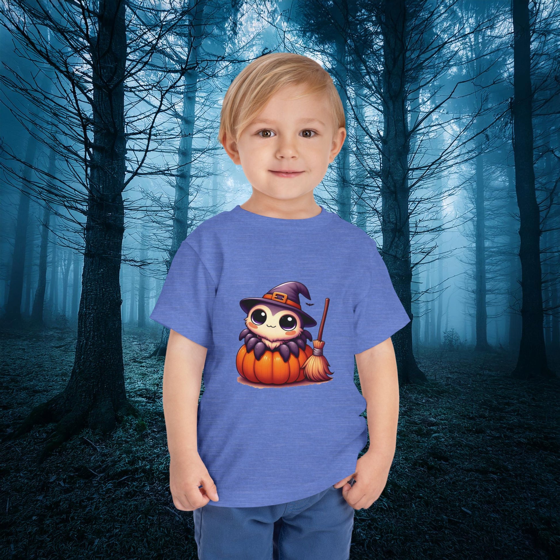 Uplift any child's wardrobe with this Halloween themed kid's t-shirt. The Bella Canvas short sleeve tee for toddlers is a 100% Airlume combed and ring-spun cotton jersey with a tear-away label for extra comfort. Choose your favorite color and get a unique design that toddlers will happily wear every day.