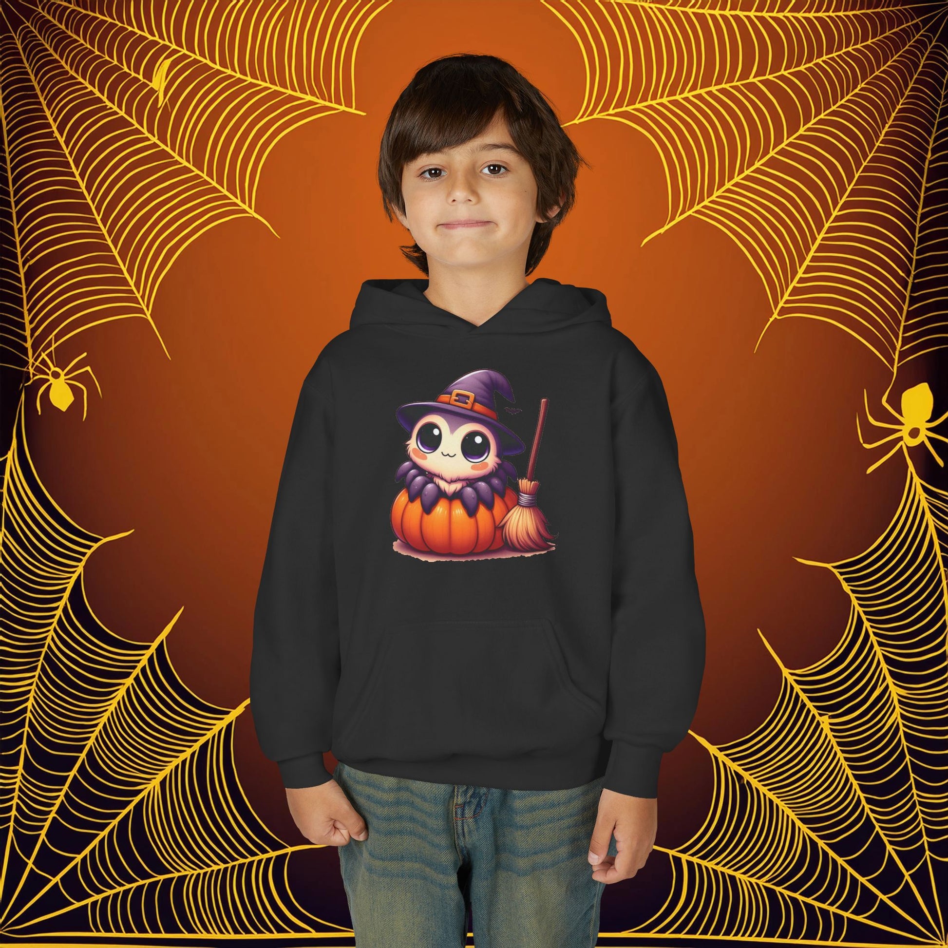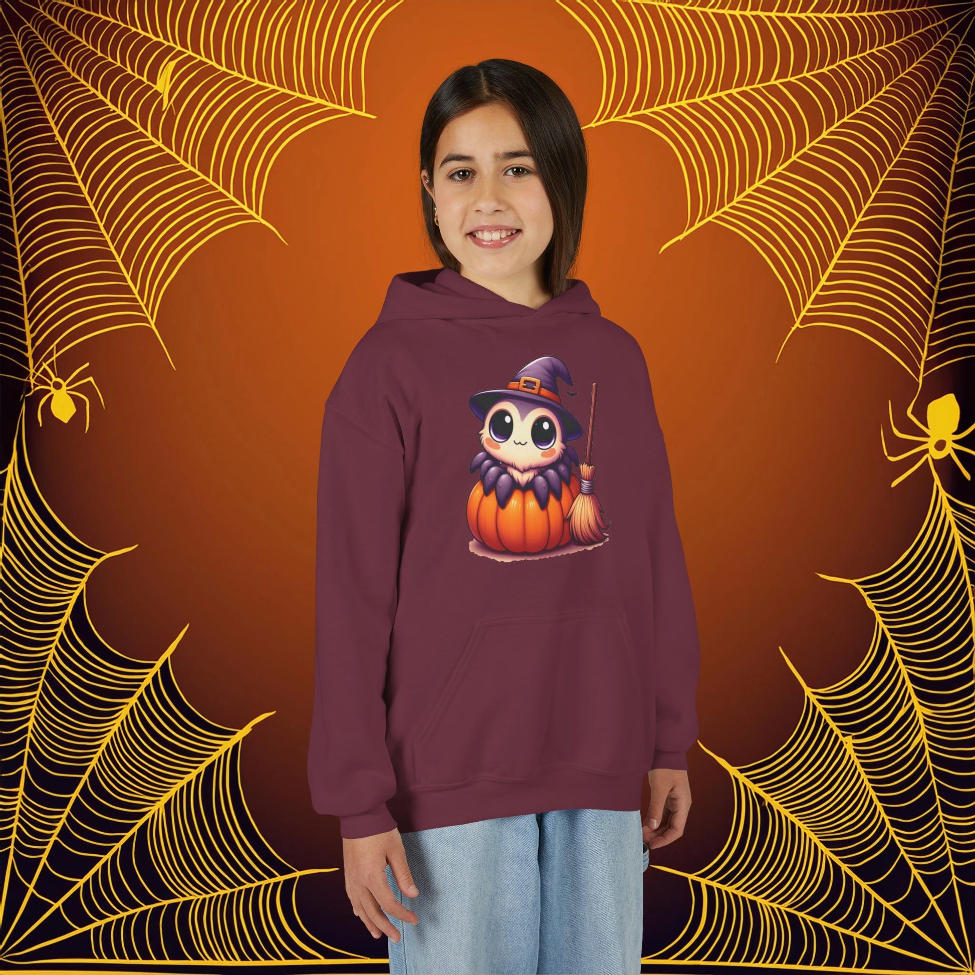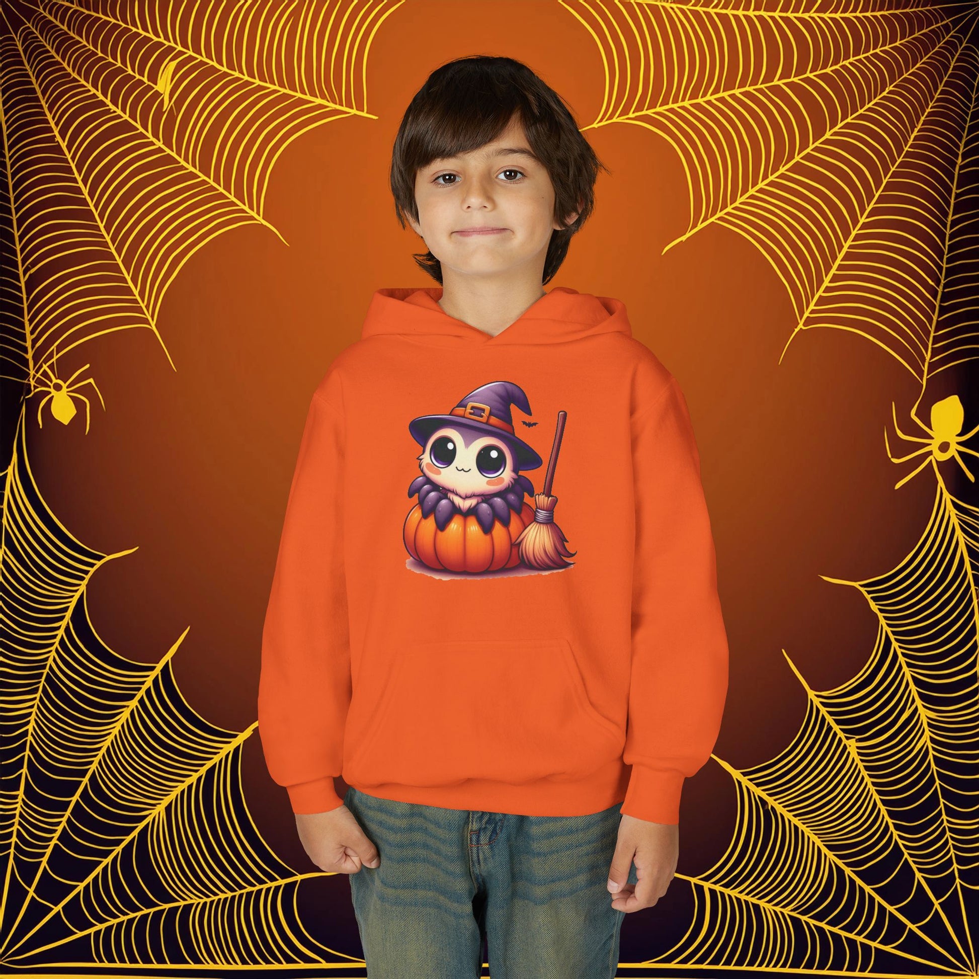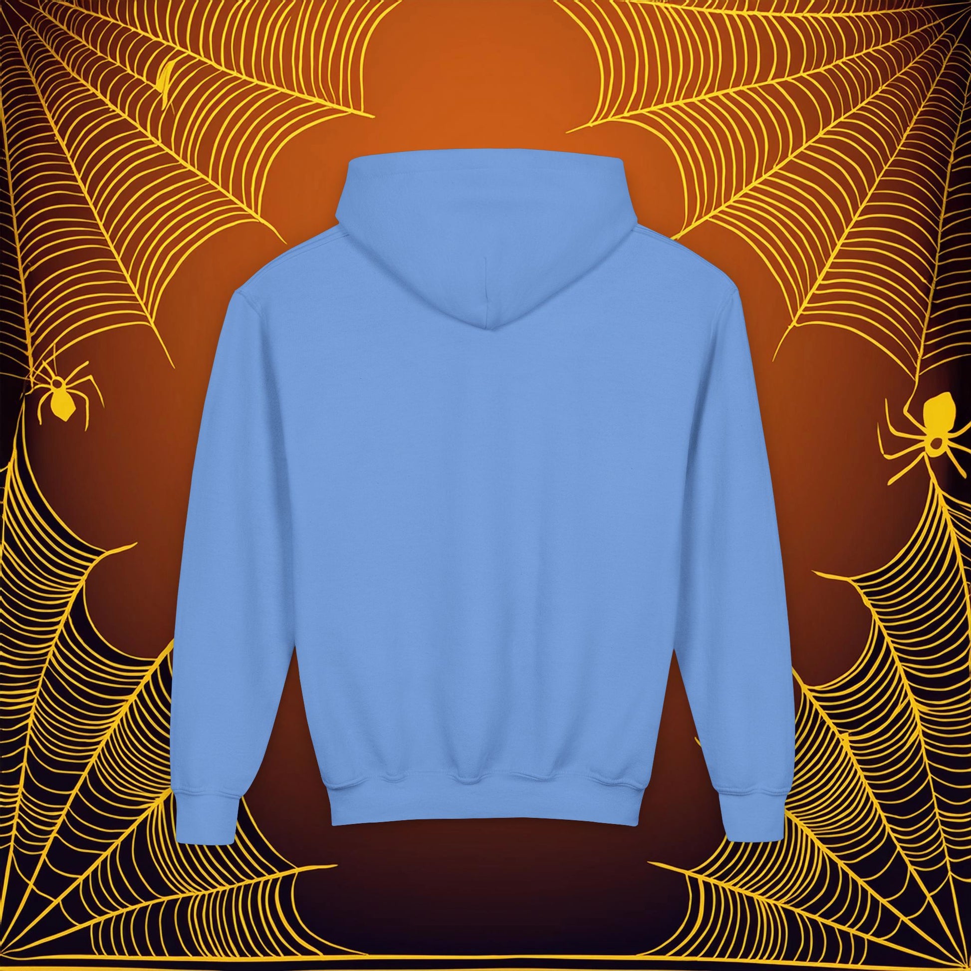 This Halloween themed youth blend hooded sweatshirt is made of ultra-soft, preshrunk fleece that feels wonderful against the skin. The garment is 50% cotton 50% polyester with reduced lint buildup. The front has a kangaroo pocket big enough for both hands. The neck is reinforced with twill taping.