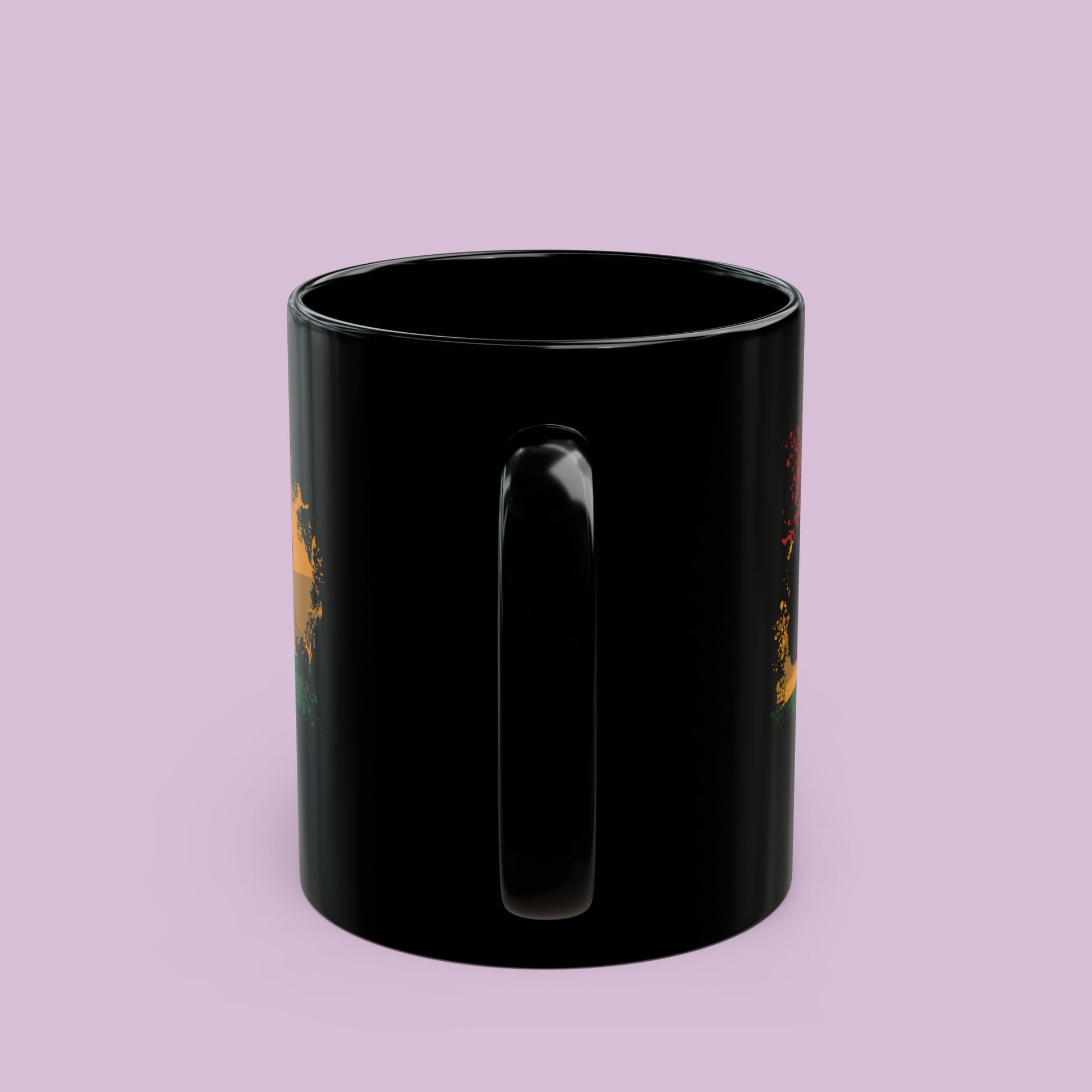 Set on a sleek black ceramic mug, the vibrant design stands out with striking contrast, making every sip a reminder that history lives on through the voices, achievements, and stories of today. Perfect for your morning coffee, evening tea, or as a meaningful gift, this mug blends everyday function with powerful symbolism.