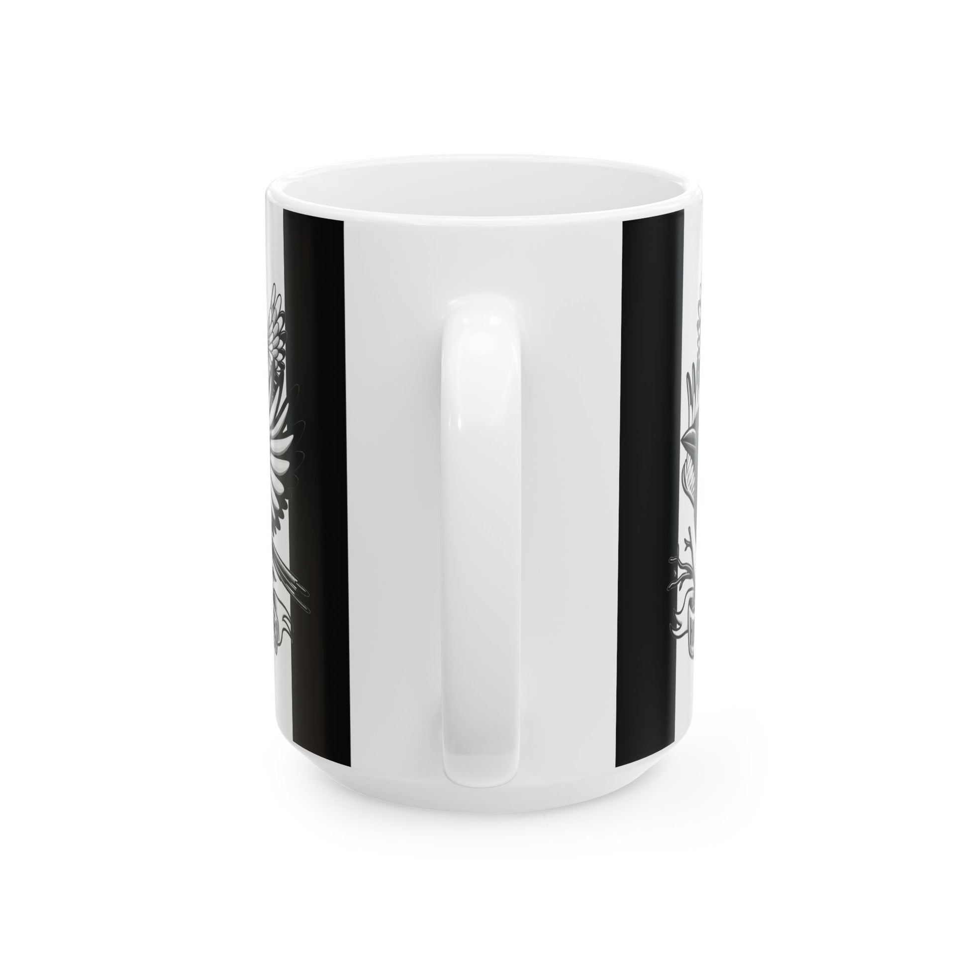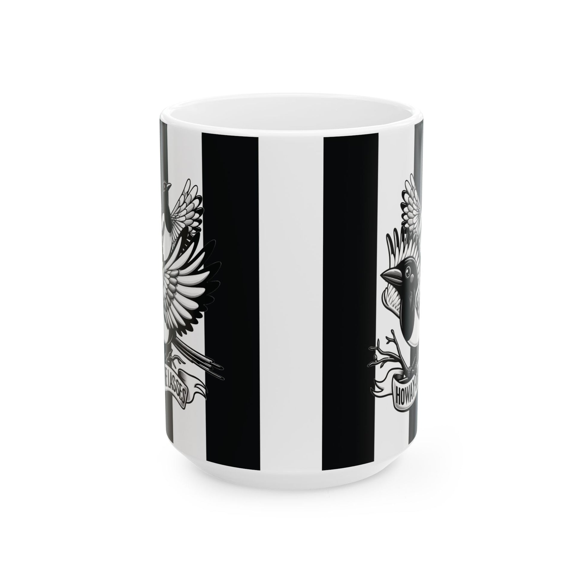 This glossy Newcastle United Women's themed ceramic mug brings a touch of bold, monochrome flair to slow mornings and late-night sketch sessions. Clean black-and-white stripes wrap around crisp, detailed illustrations—sharp lines and tattoo-style motifs that sit comfortably in a creative’s hand. It feels steady and familiar when you sip: warm coffee, herbal tea, or a quiet moment between projects. The sturdy C-handle and shiny finish catch the light just so, while the durable white ceramic lets the artwork stay vivid wash after wash. Give your daily ritual a little attitude for gallery mornings, studio nights, or relaxed weekends at home.