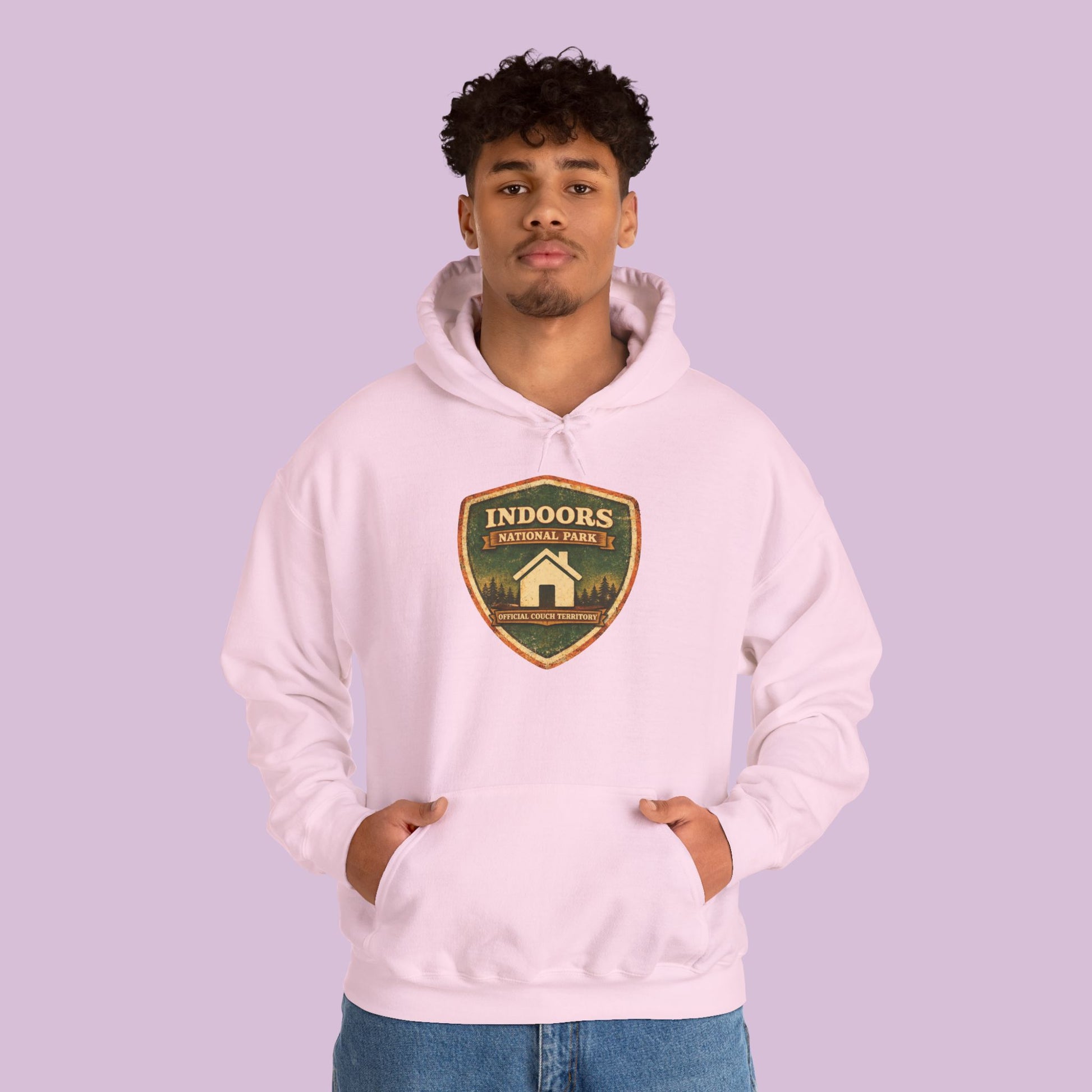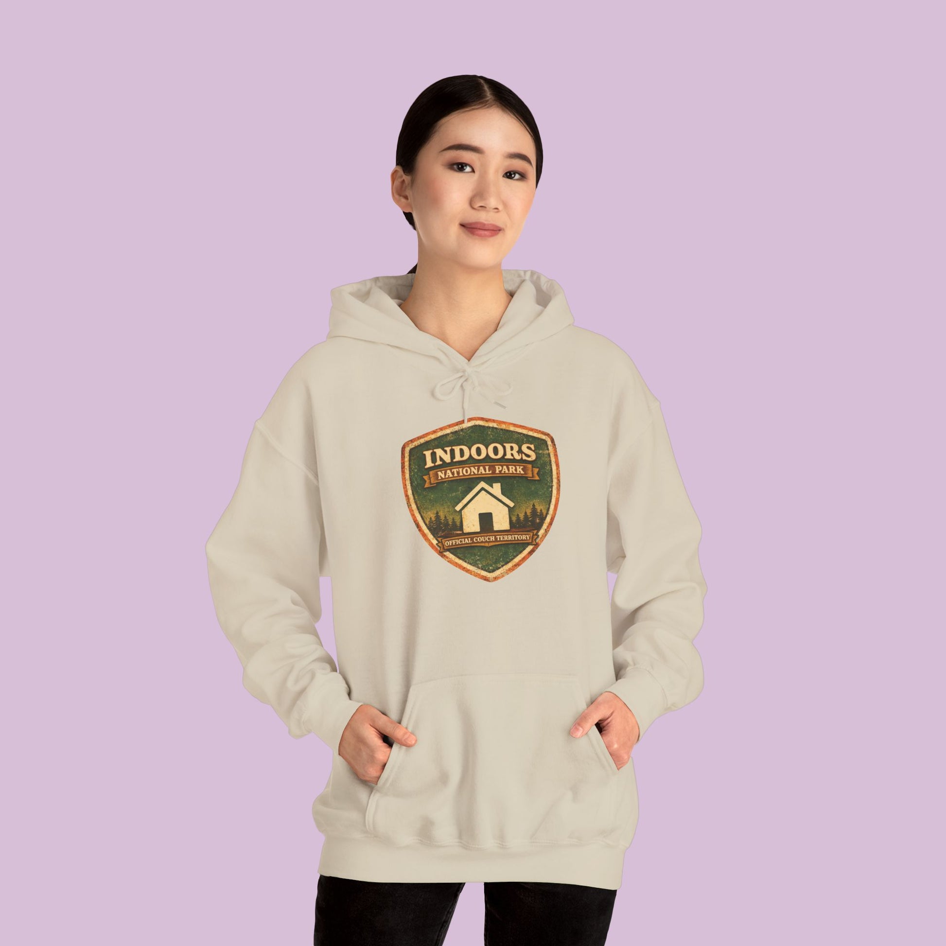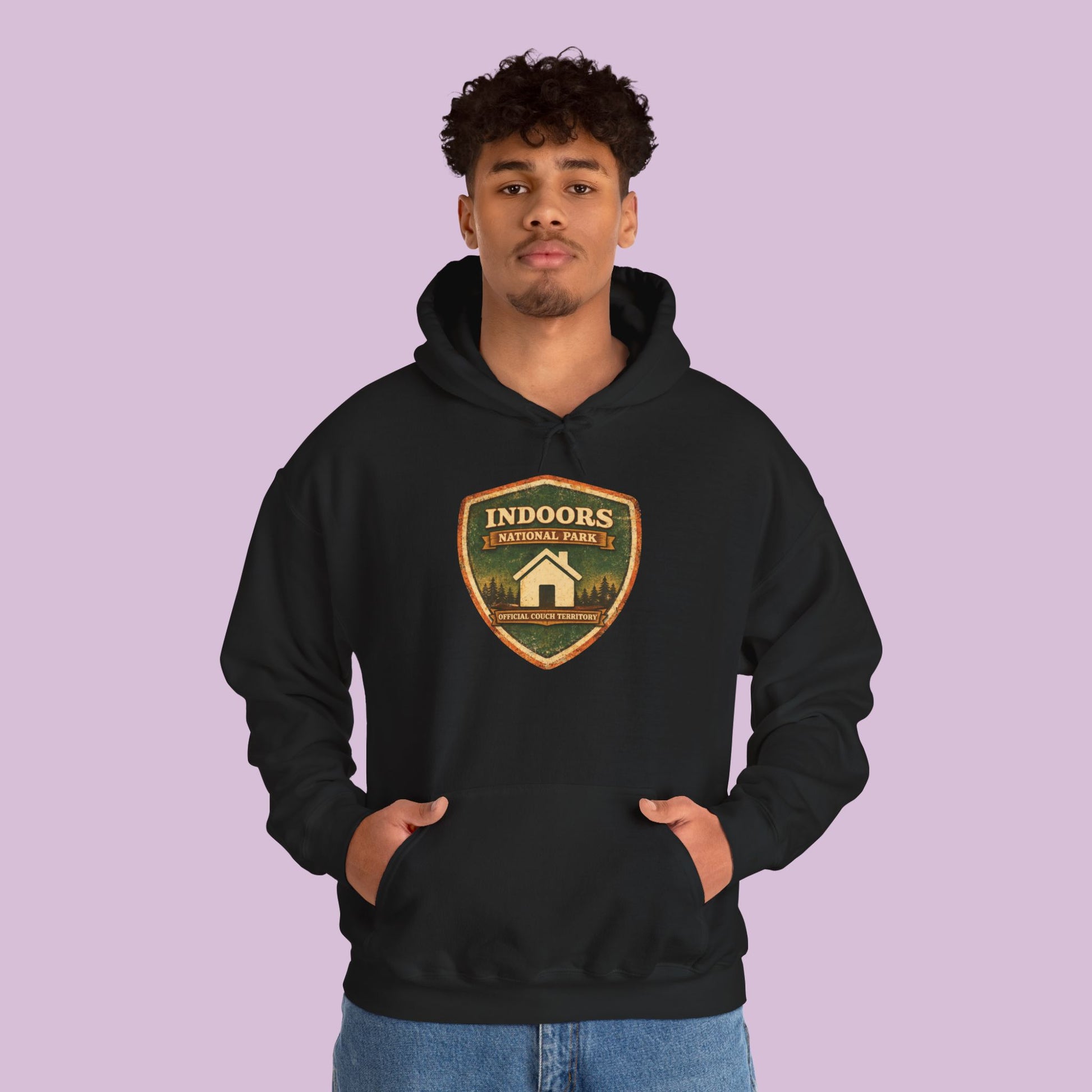Declare your favorite destination without ever leaving the house. The Indoors National Park Hoodie celebrates the coziest park of them all, where the trails lead straight to the couch and the only wildlife you encounter is the occasional snack run. Designed with a vintage national park inspired badge, this hoodie blends classic outdoors aesthetics with a perfectly relatable homebody twist.