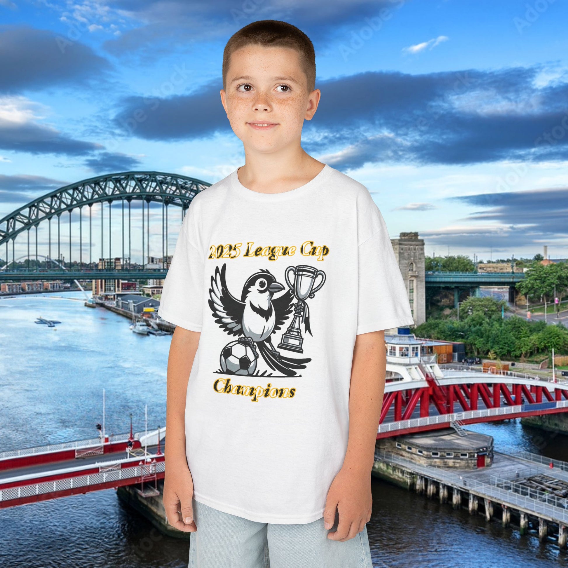 Let your little ones celebrate Newcastle United's historic 2025 Carabao Cup final victory with this Kids Heavy Cotton™ Tee! Perfect for everyday wear, this tee offers a soft and comfortable feel, making it ideal for school, playdates, or family outings. The vibrant design captures the spirit of celebration, perfect for sports events, birthday parties, or casual family gatherings. It's designed for active kids who love to express themselves boldly. With its timeless style and classic fit, this tee can be easily paired with shorts or jeans, adding a touch of excitement to any outfit. Ideal for holidays like Easter, back-to-school season, or just because, this tee is a fabulous addition to your child's wardrobe!