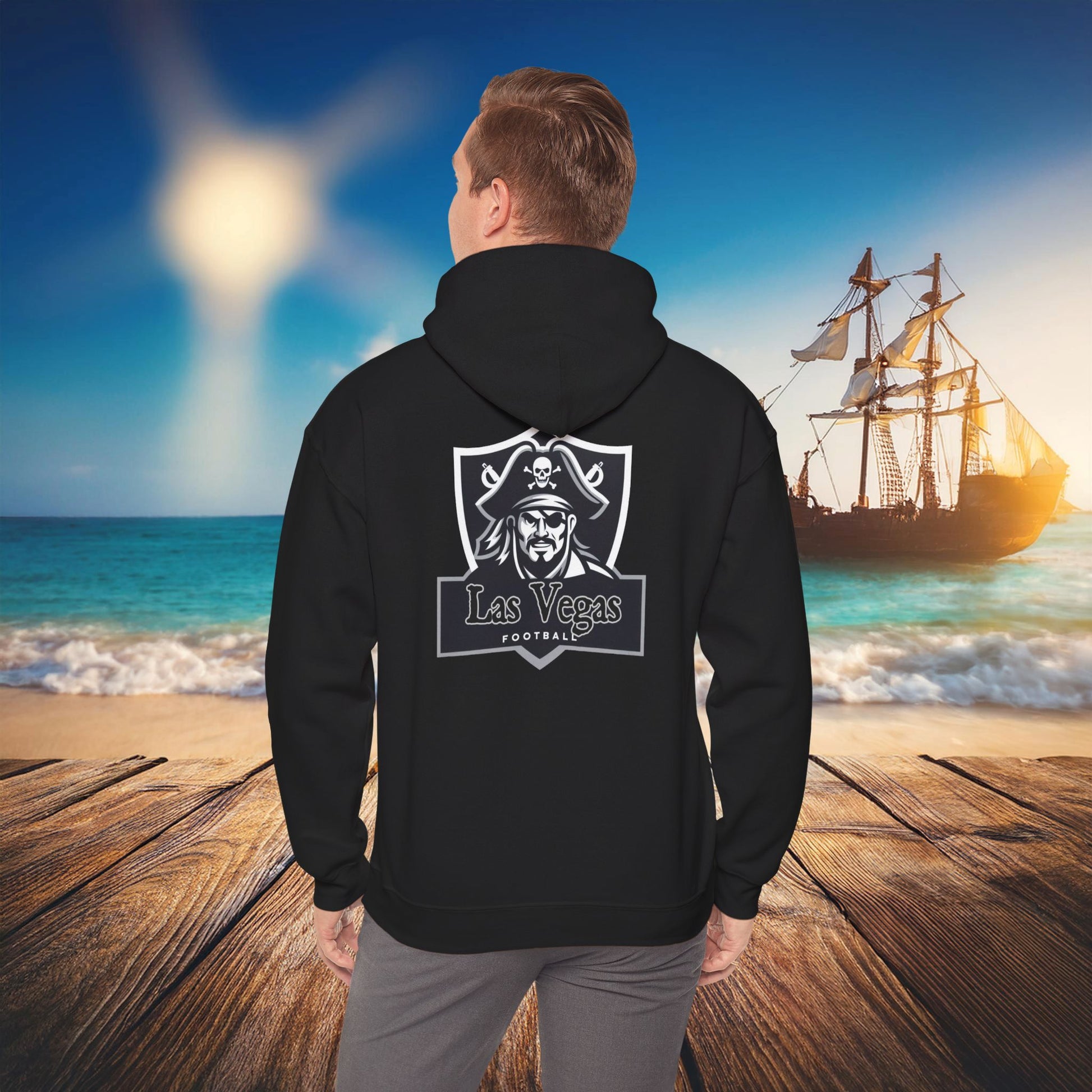 This Raiders themed heavy blend hooded sweatshirt is relaxation itself. Made with a thick blend of cotton and polyester, it feels plush, soft and warm, a perfect choice for any cold day. In the front, the spacious kangaroo pocket adds daily practicality while the hood's drawstring is the same color as the base sweater for extra style points.