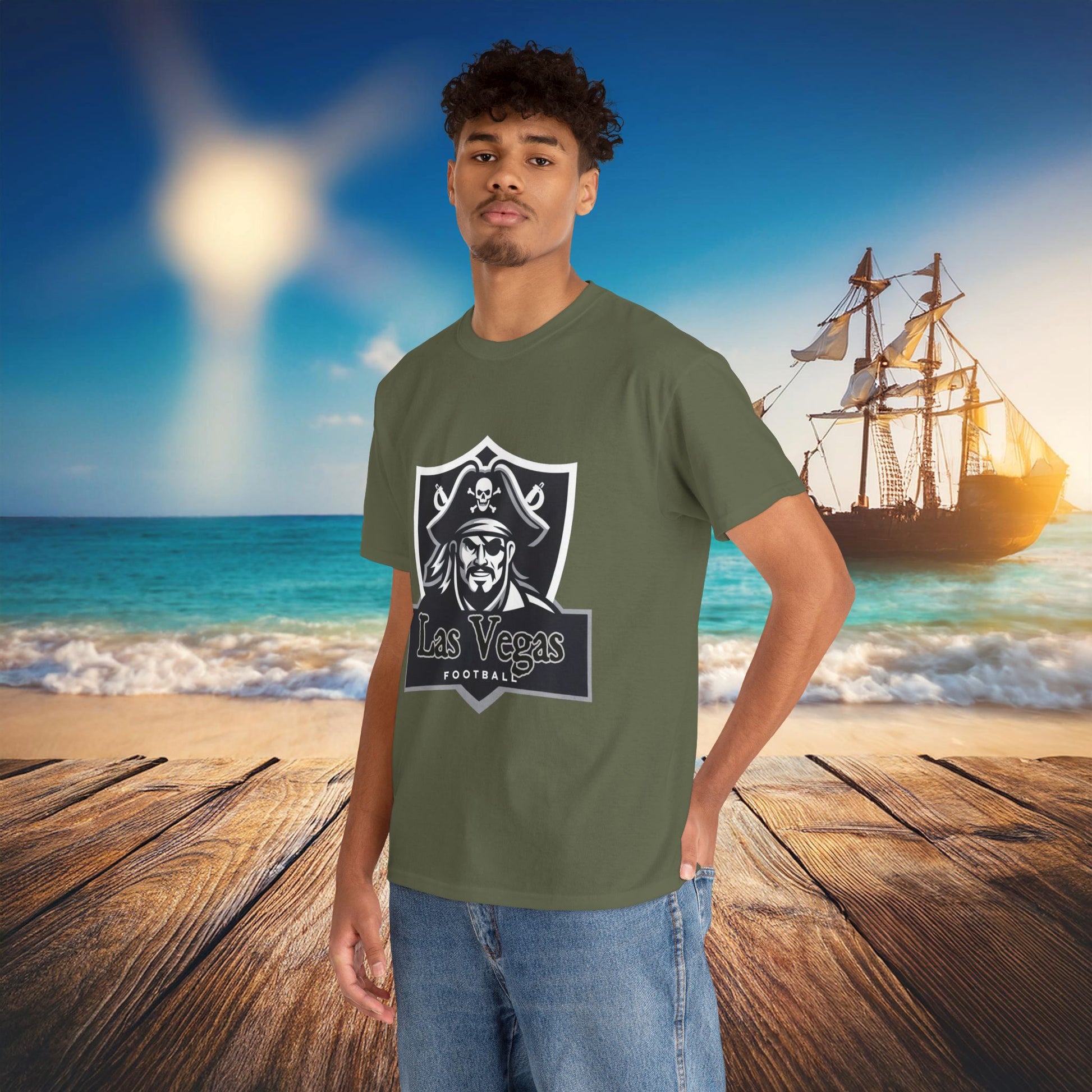 This Las Vegas Raiders themed heavy cotton tee is the basic staple of any wardrobe. It is the foundation upon which casual fashion grows. The specially spun fibers provide a smooth surface for premium printing vividity and sharpness. No side seams mean there are no itchy interruptions under the arms. The shoulders have tape for improved durability.
