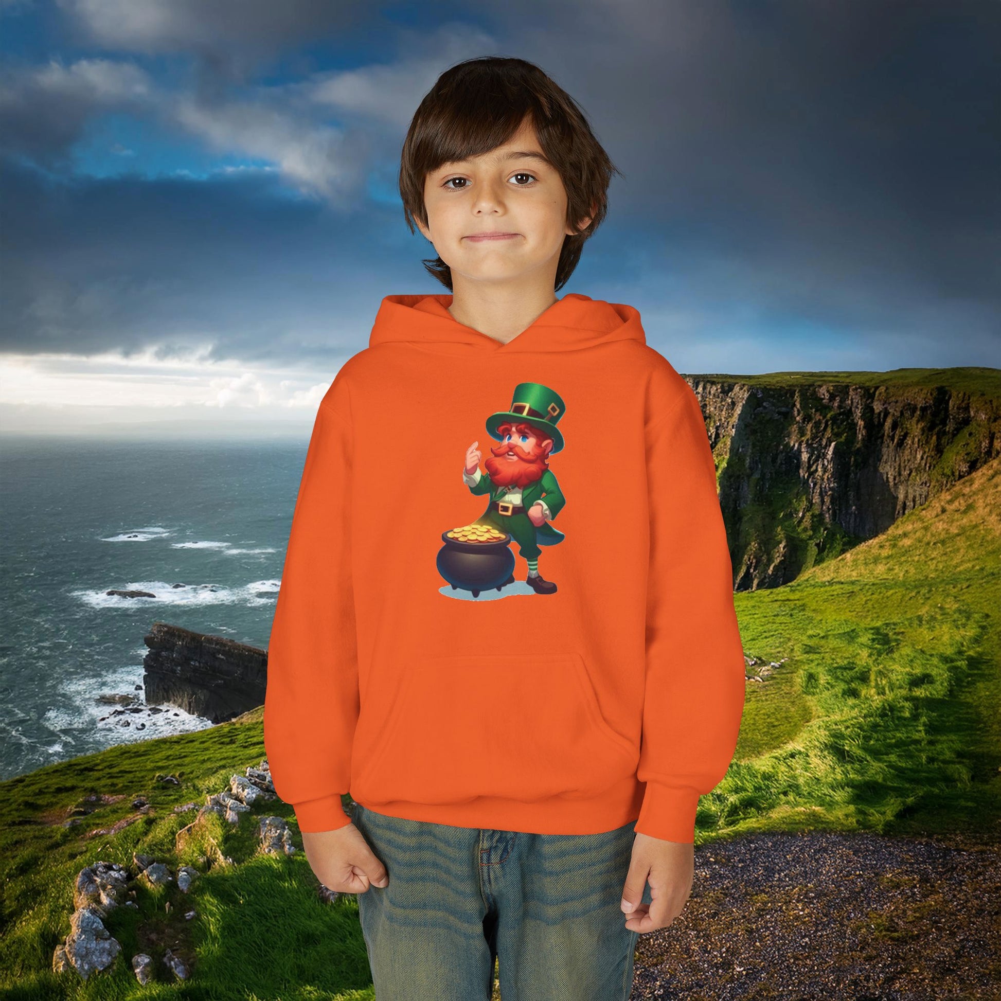 Soft, cozy, and a little bit mischievous — this youth hoodie brings a touch of folklore to everyday wear. A cheerful leprechaun stands over a pot of gold on the chest, brightening chilly mornings and playground afternoons. The medium-weight fabric holds prints well while staying comfortable for running, climbing, and quiet storytime. Thoughtful details like the kangaroo pocket and twill necktape keep kids comfortable and ready for whatever the day brings, whether that’s a rainy walk to school or a family gathering on Saint Patrick’s Day.