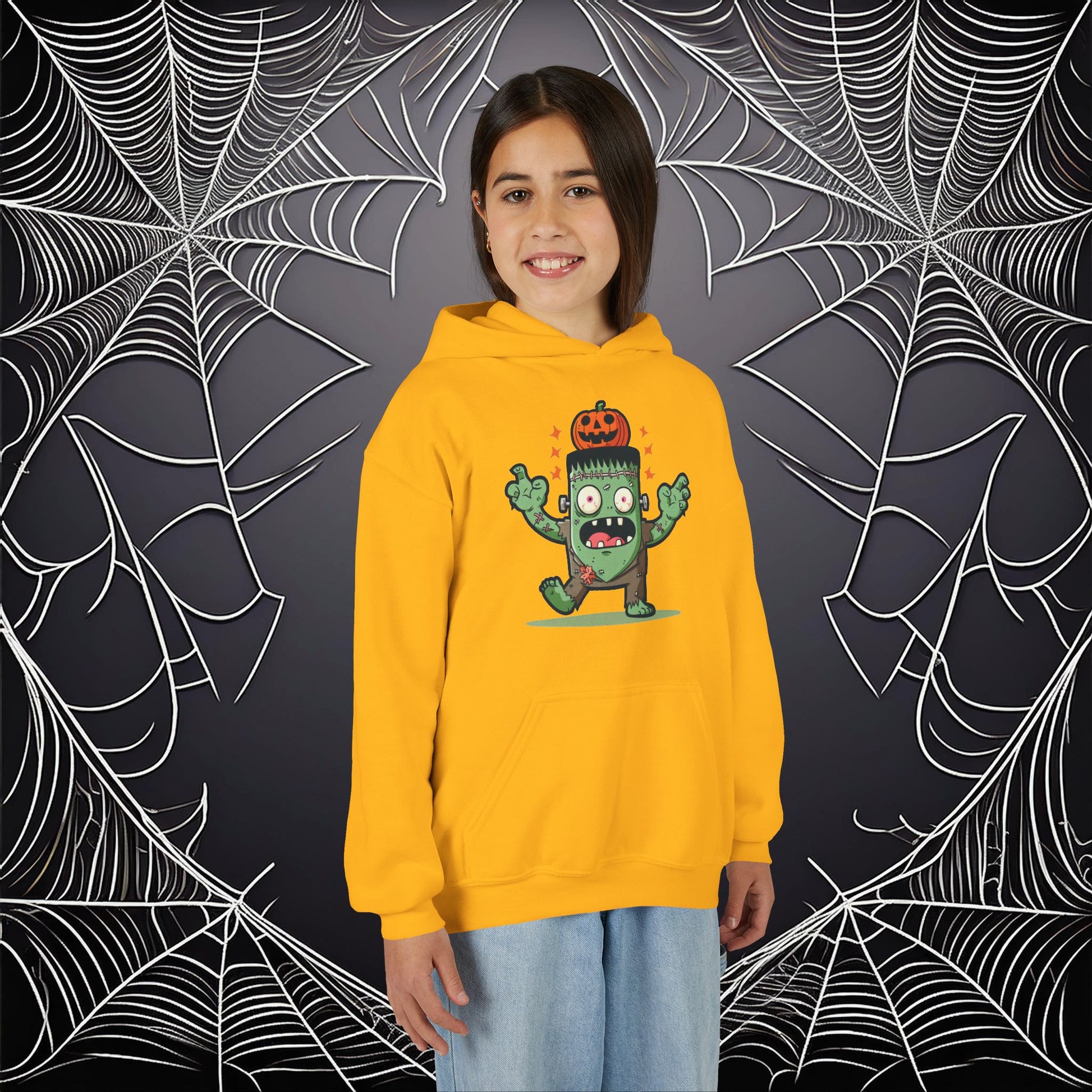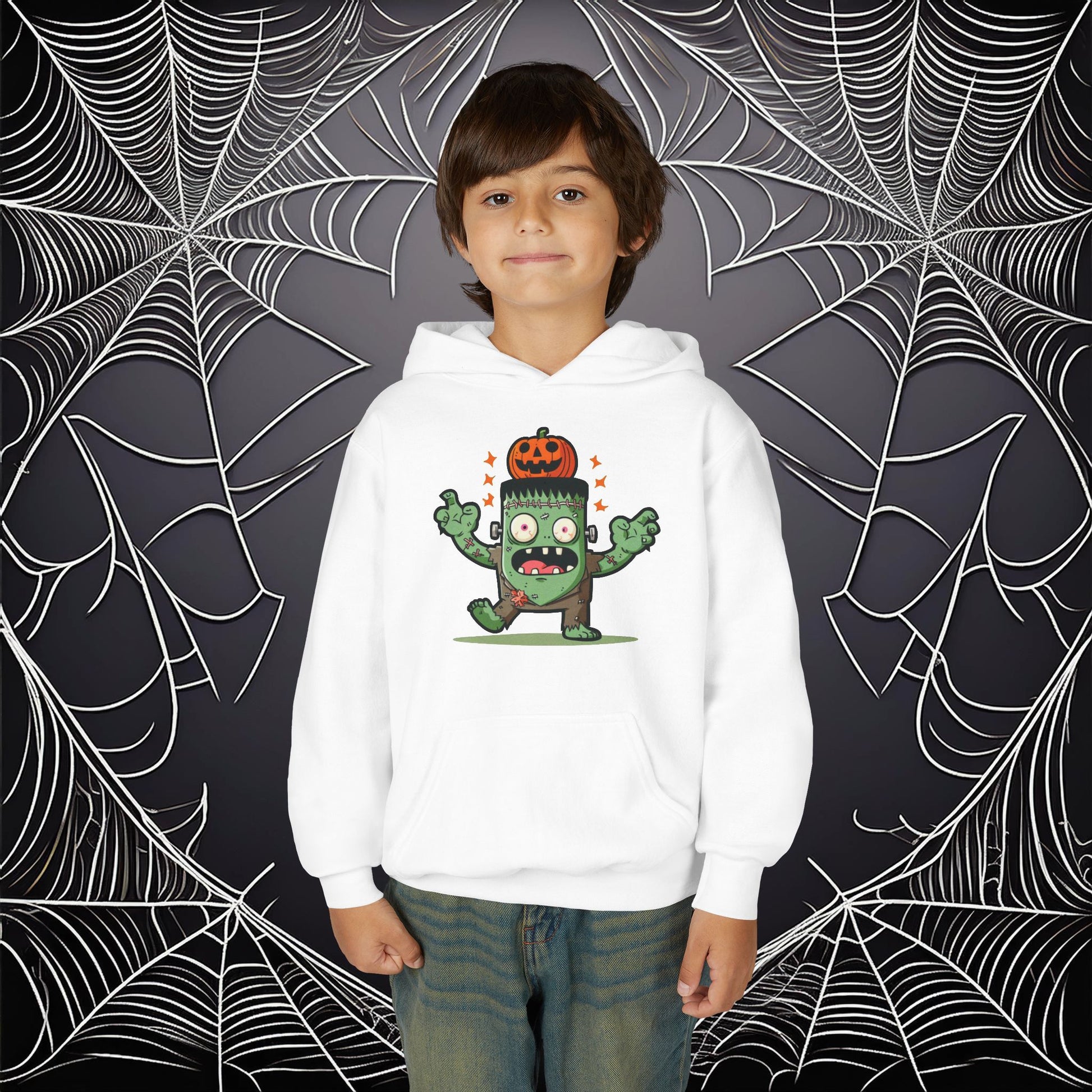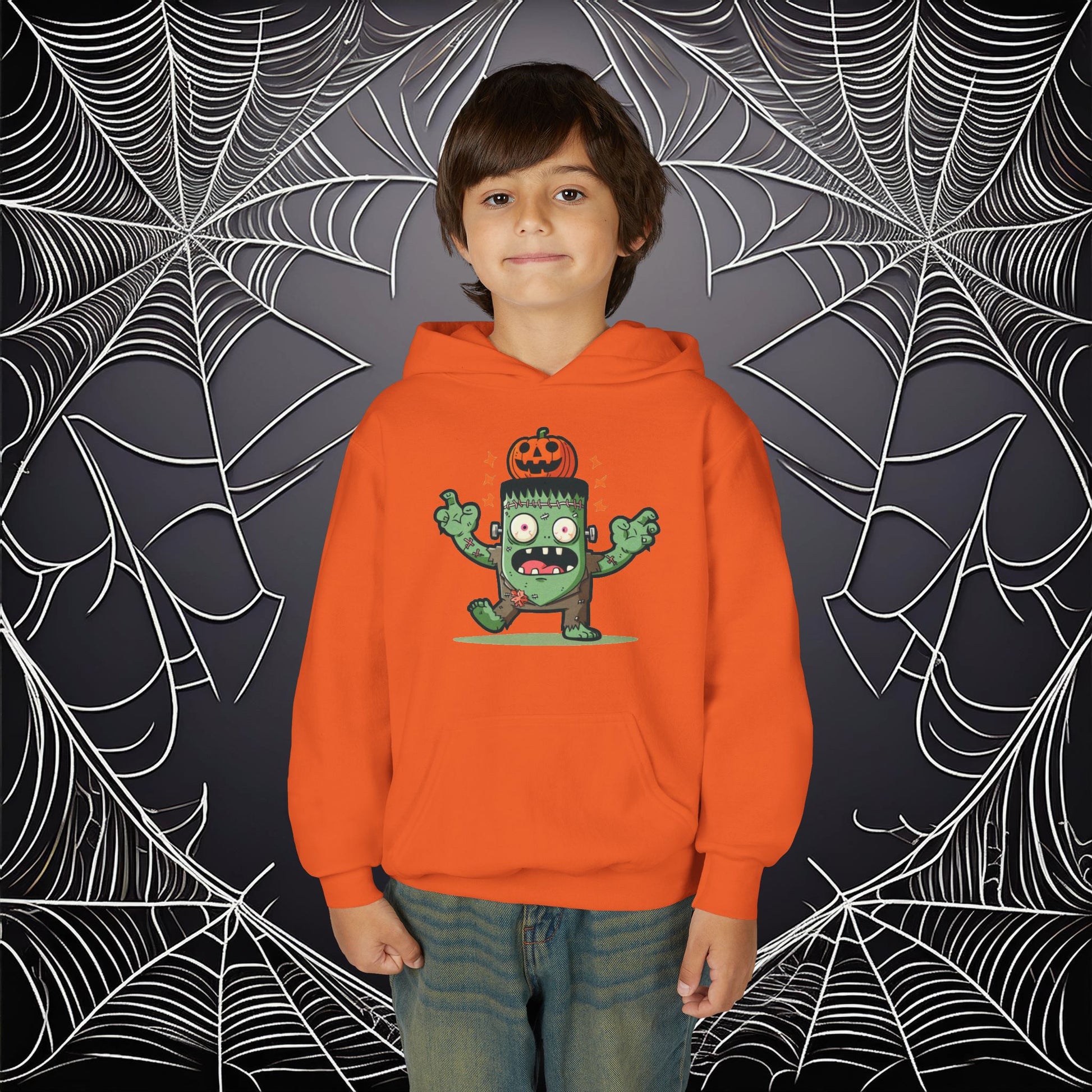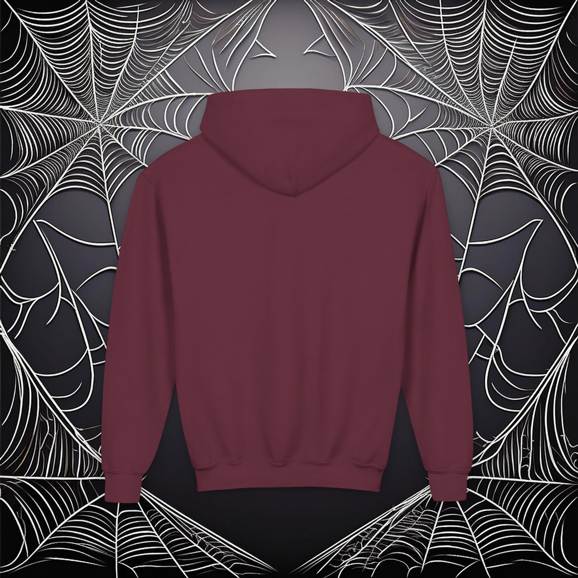 This Halloween themed youth blend hooded sweatshirt is made of ultra-soft, preshrunk fleece that feels wonderful against the skin. The garment is 50% cotton 50% polyester with reduced lint buildup. The front has a kangaroo pocket big enough for both hands. The neck is reinforced with twill taping.