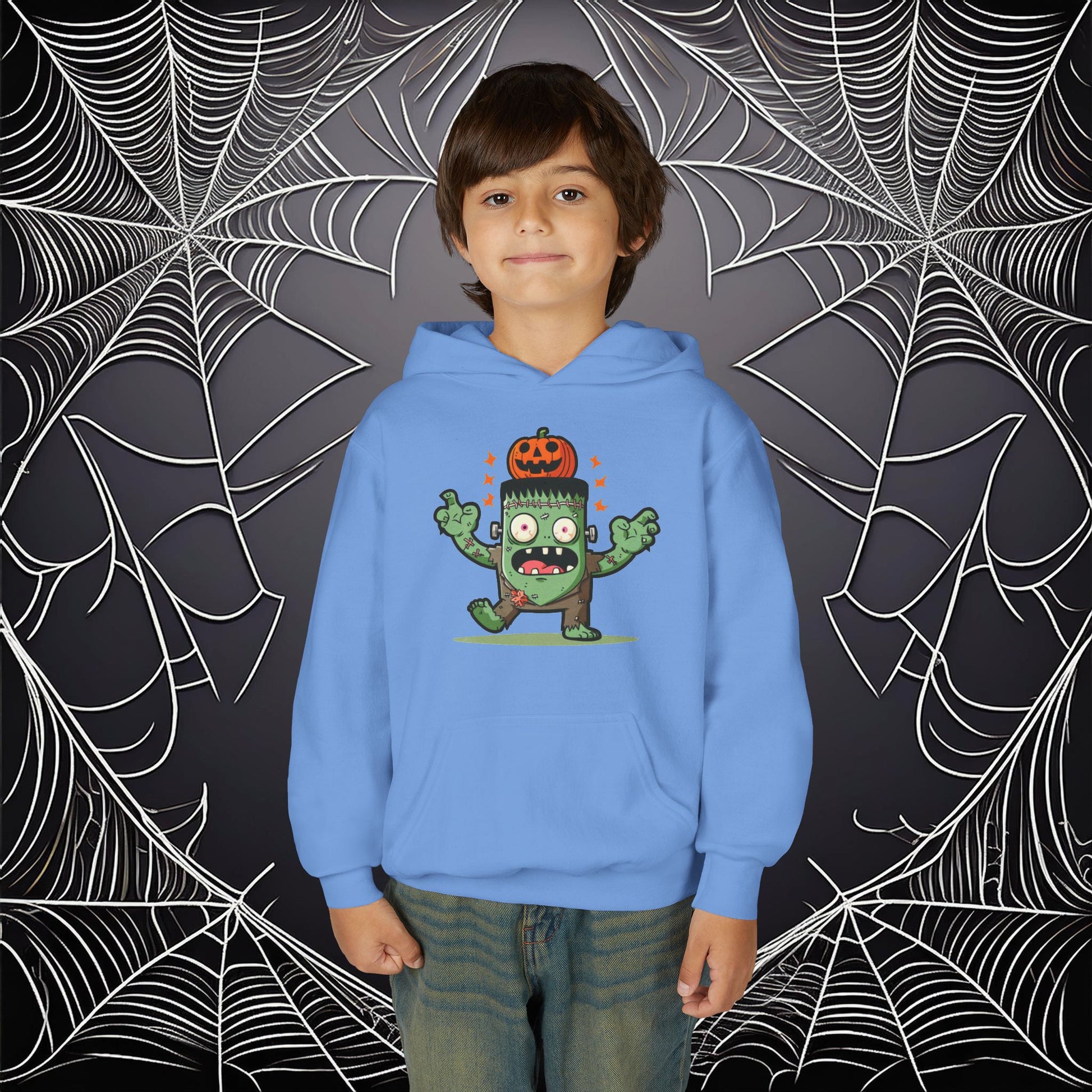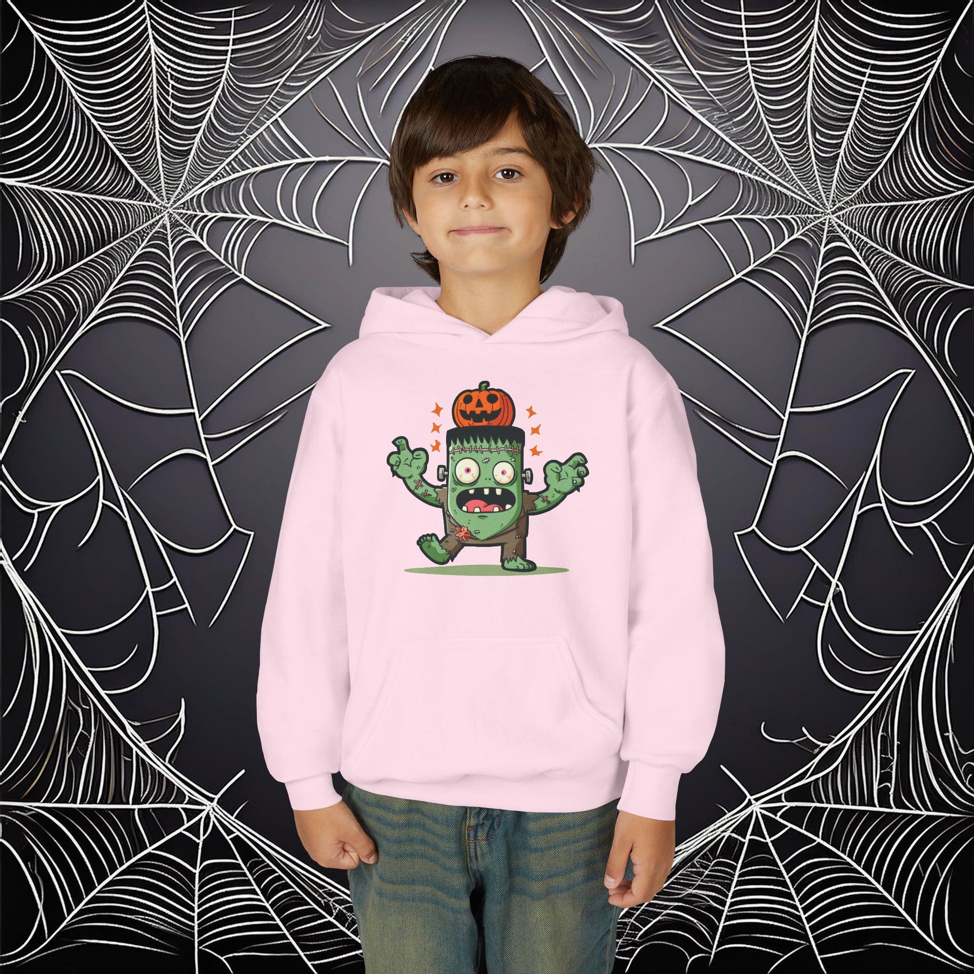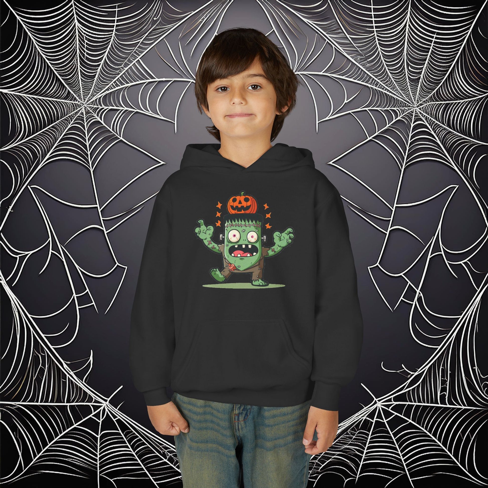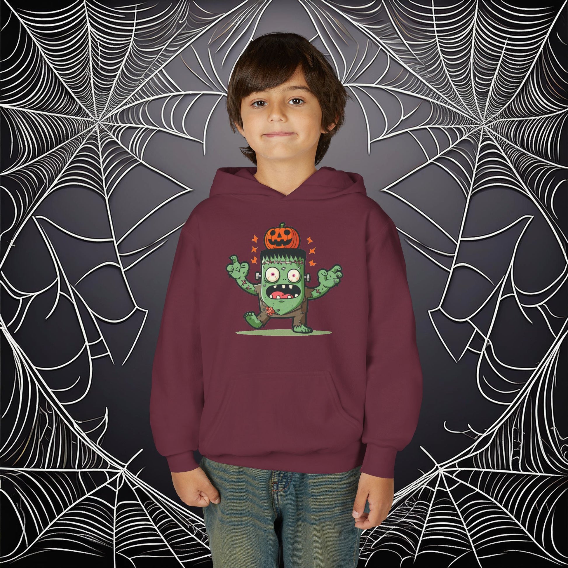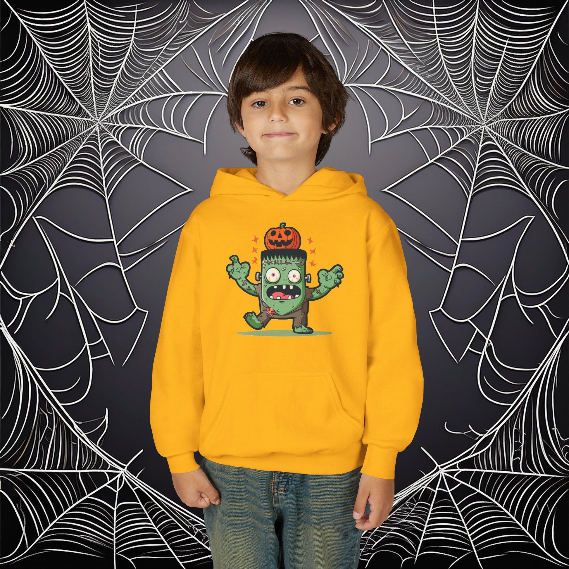 This Halloween themed youth blend hooded sweatshirt is made of ultra-soft, preshrunk fleece that feels wonderful against the skin. The garment is 50% cotton 50% polyester with reduced lint buildup. The front has a kangaroo pocket big enough for both hands. The neck is reinforced with twill taping.
