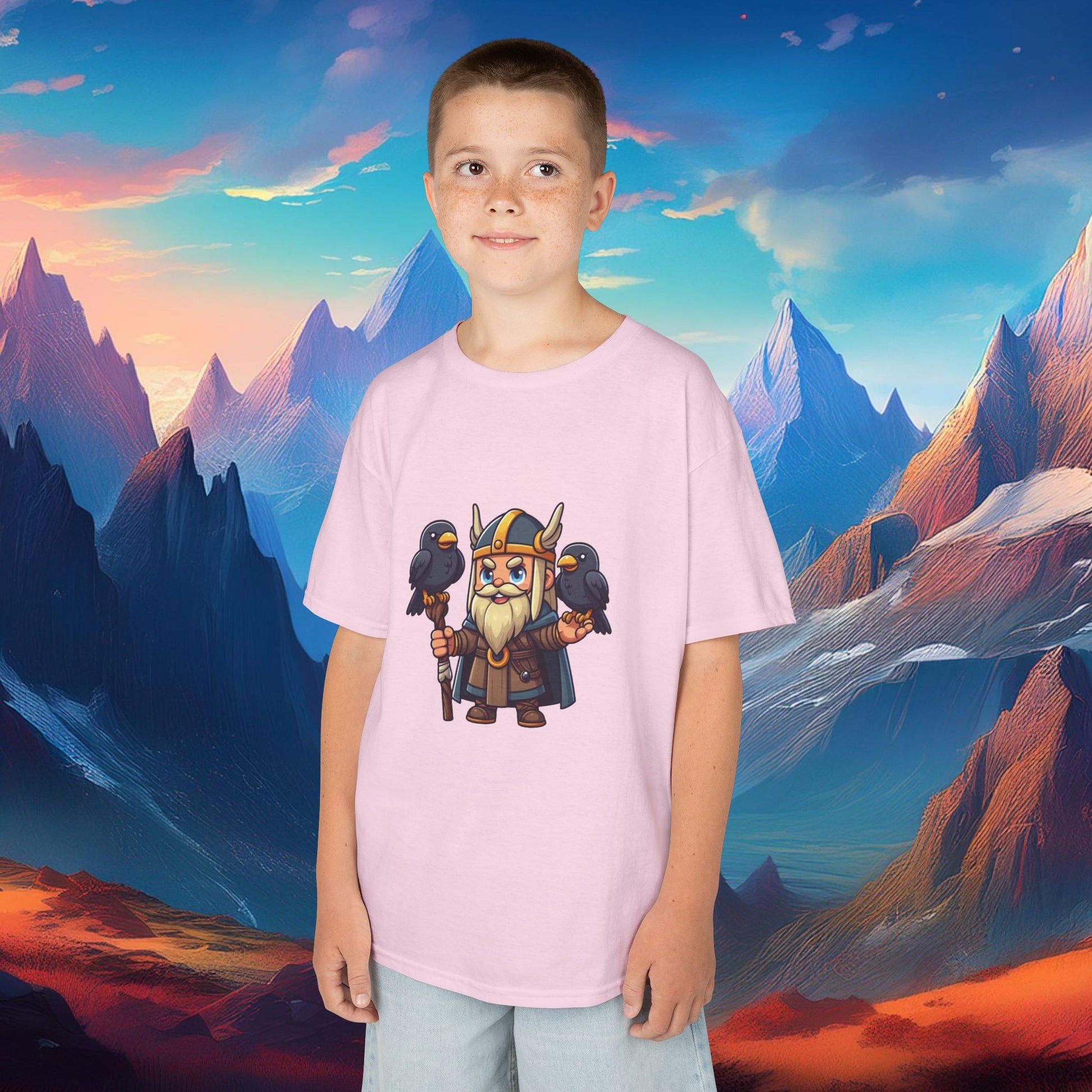 This Viking themed kids heavy cotton tee is perfect for everyday use. The fabric is 100% cotton for solid colors. Polyester is included for heather-color variants. The shoulders have twill tape for improved durability. The collar is curl resistant due to ribbed knitting. There are no seams along the sides.