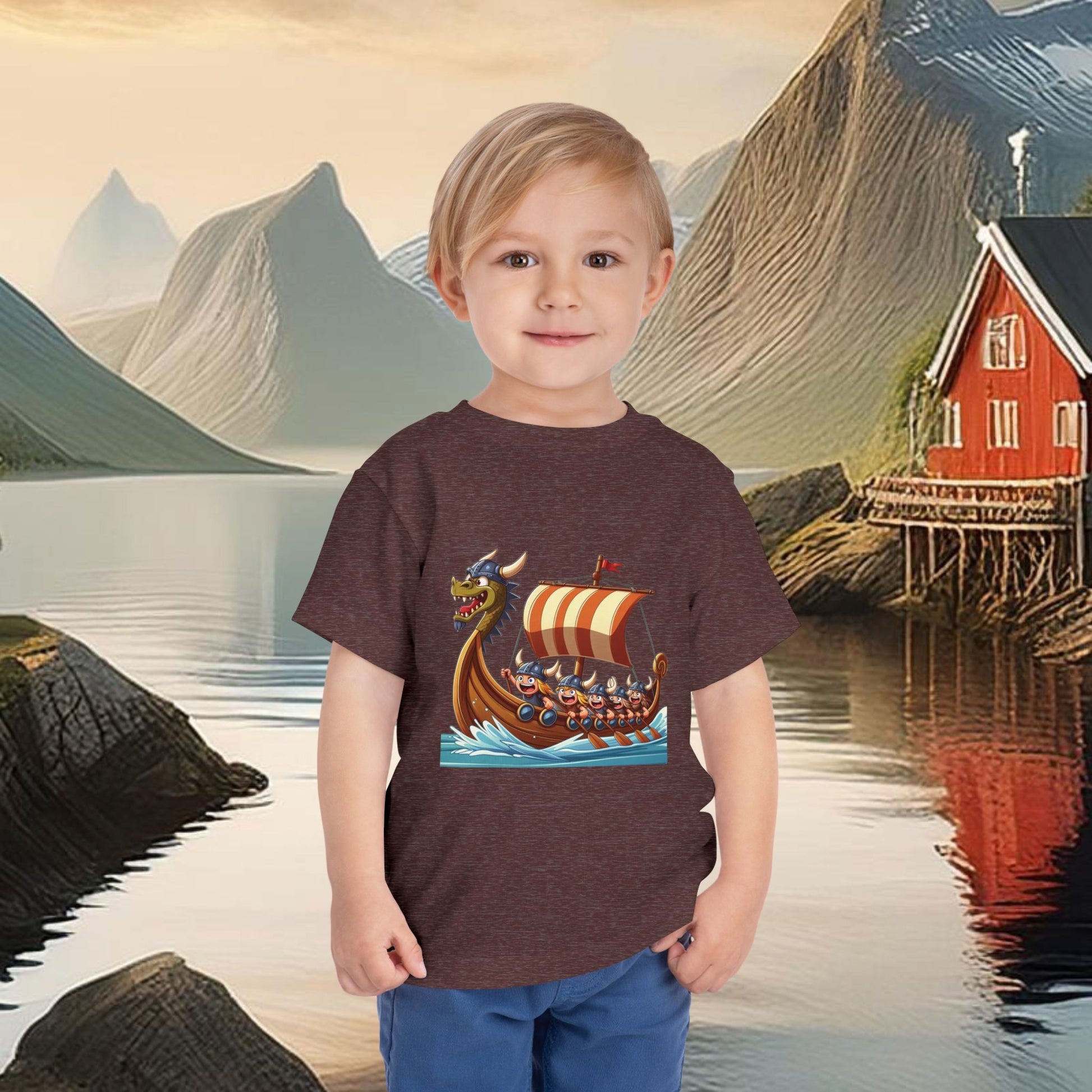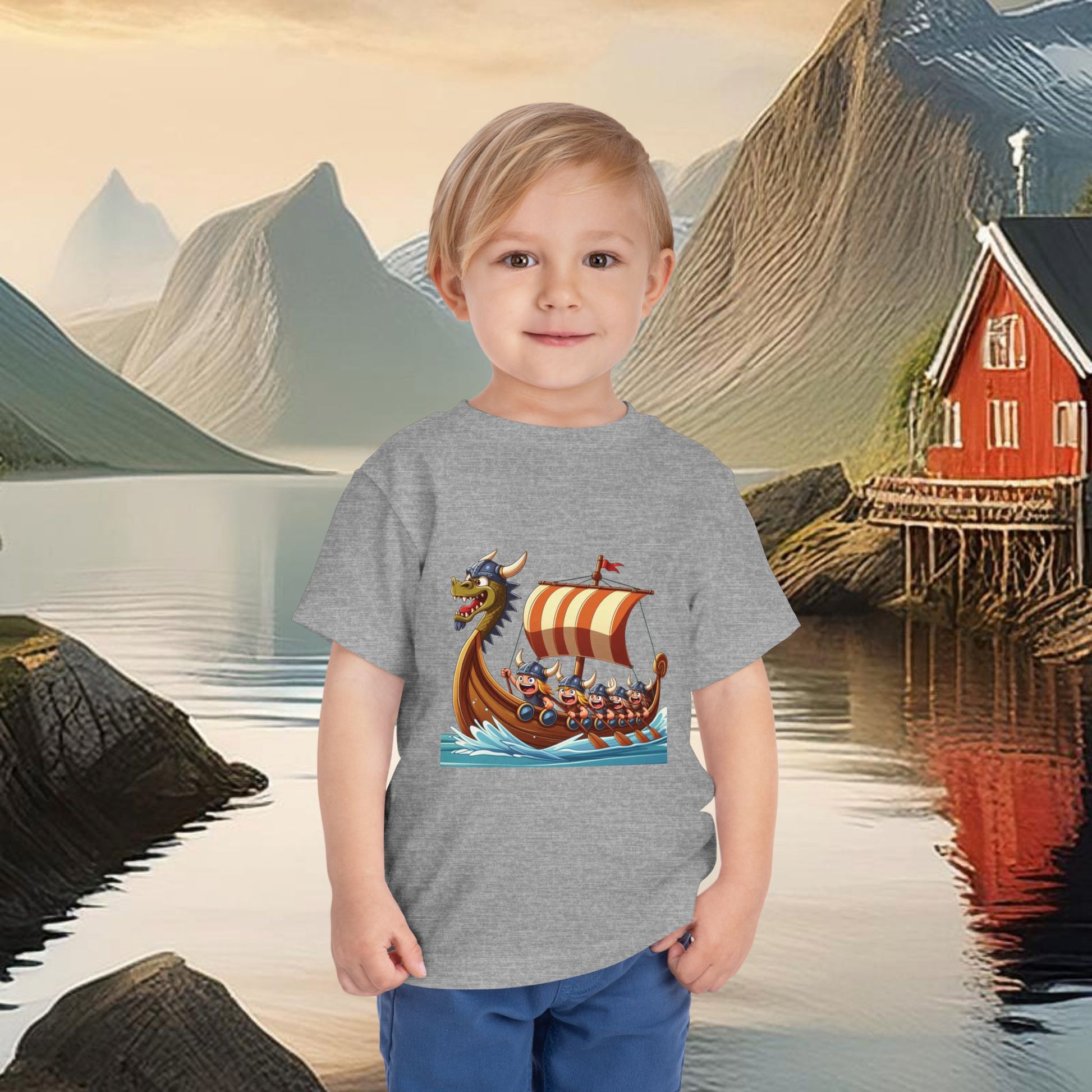 Uplift any child's wardrobe with this viking themed custom kid's t-shirt. The Bella Canvas short sleeve tee for toddlers is a 100% Airlume combed and ring-spun cotton jersey with a tear-away label for extra comfort. Choose your favorite color and get a unique design that toddlers will happily wear every day.