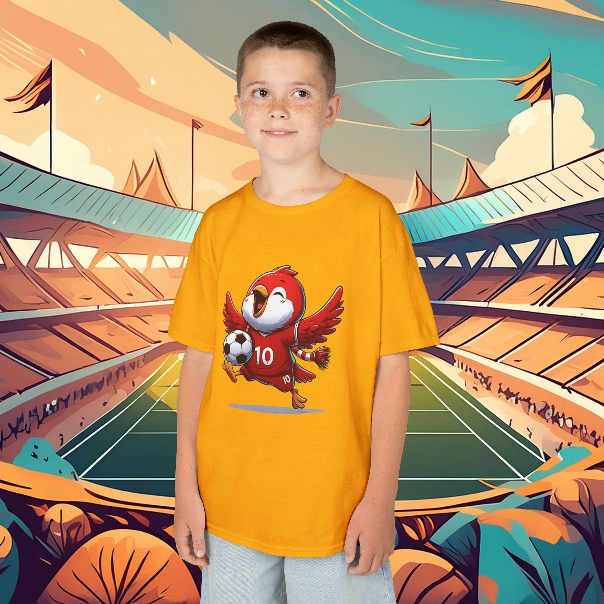 This Liverpool themed kids heavy cotton tee is perfect for everyday use. The fabric is 100% cotton for solid colors. Polyester is included for heather-color variants. The shoulders have twill tape for improved durability. The collar is curl resistant due to ribbed knitting. There are no seams along the sides.