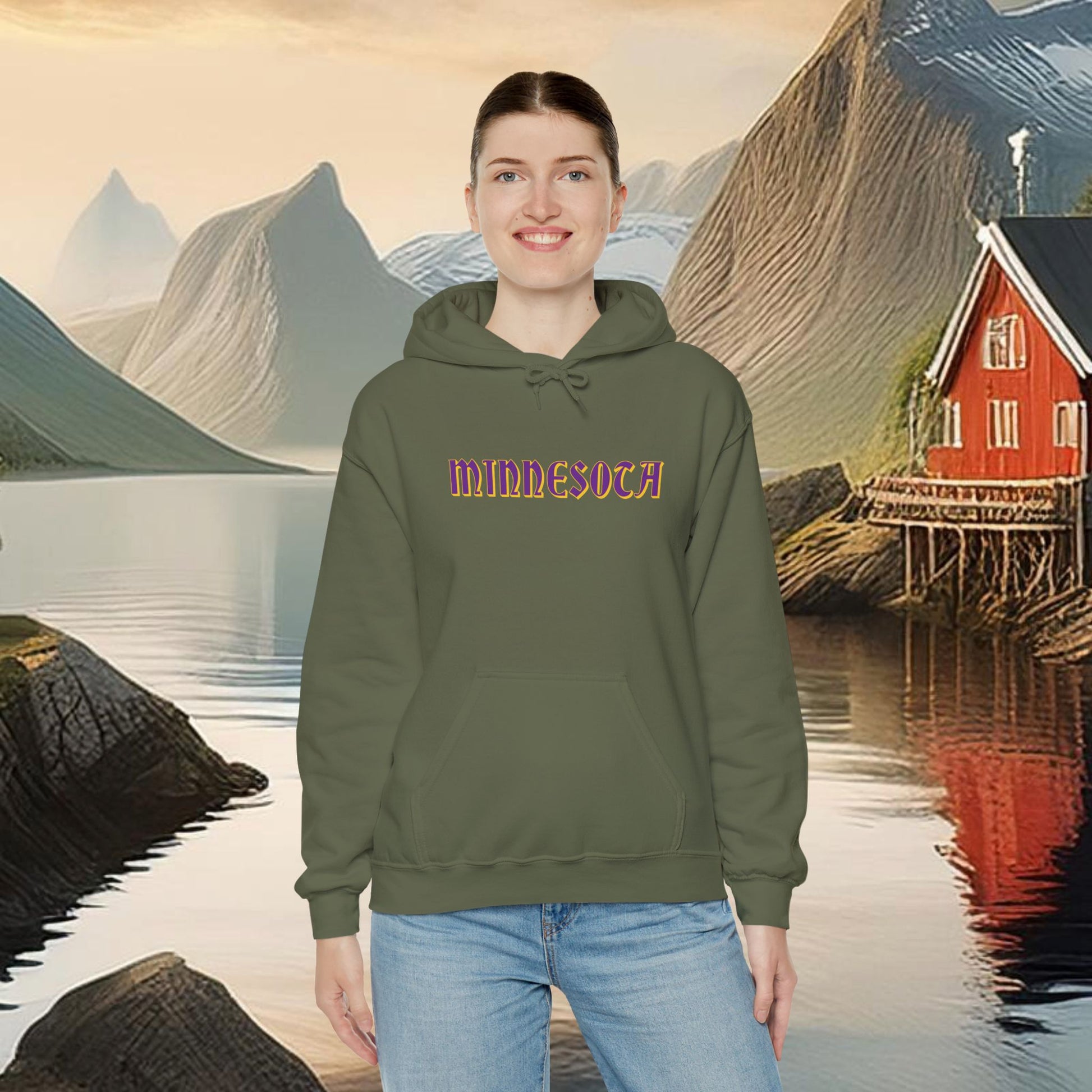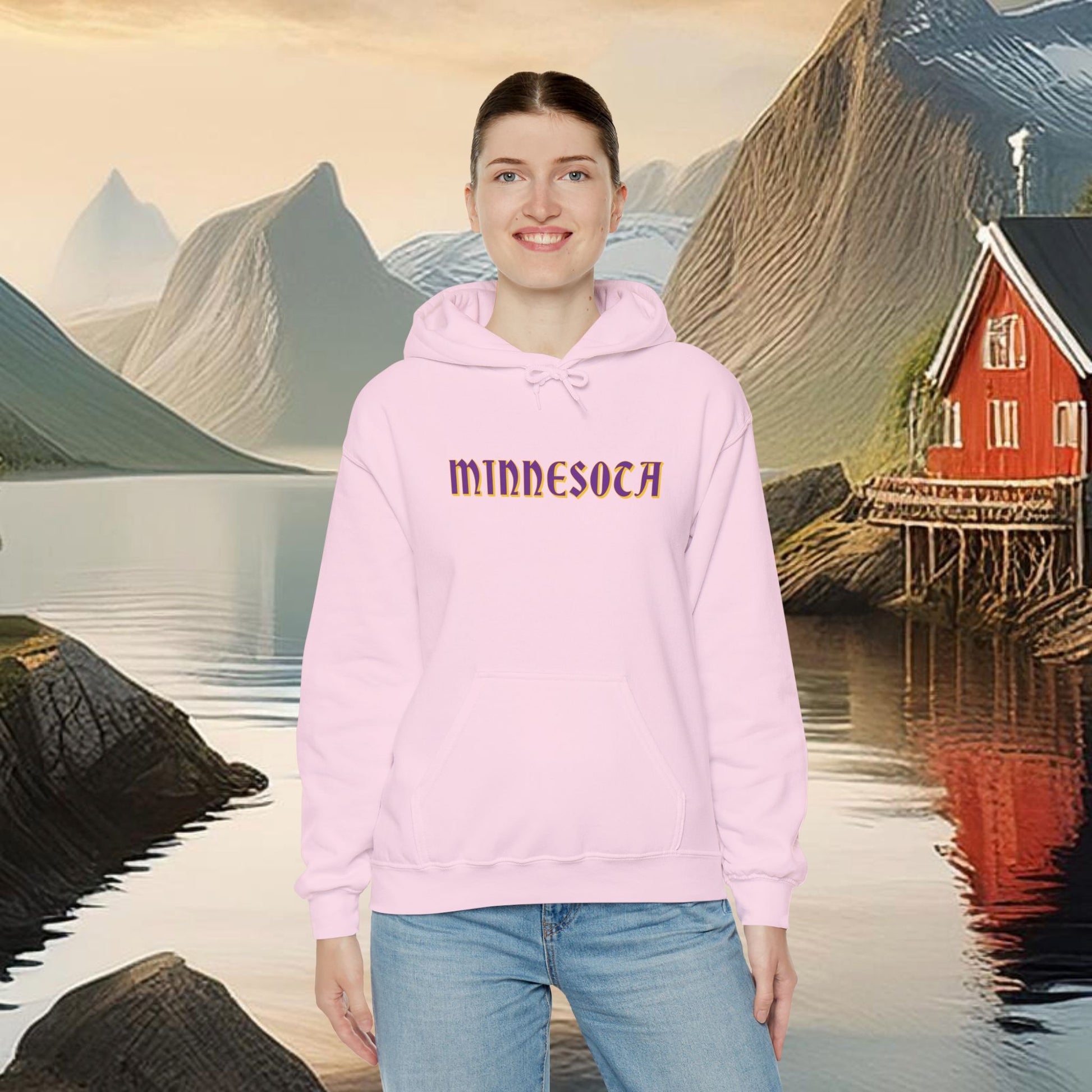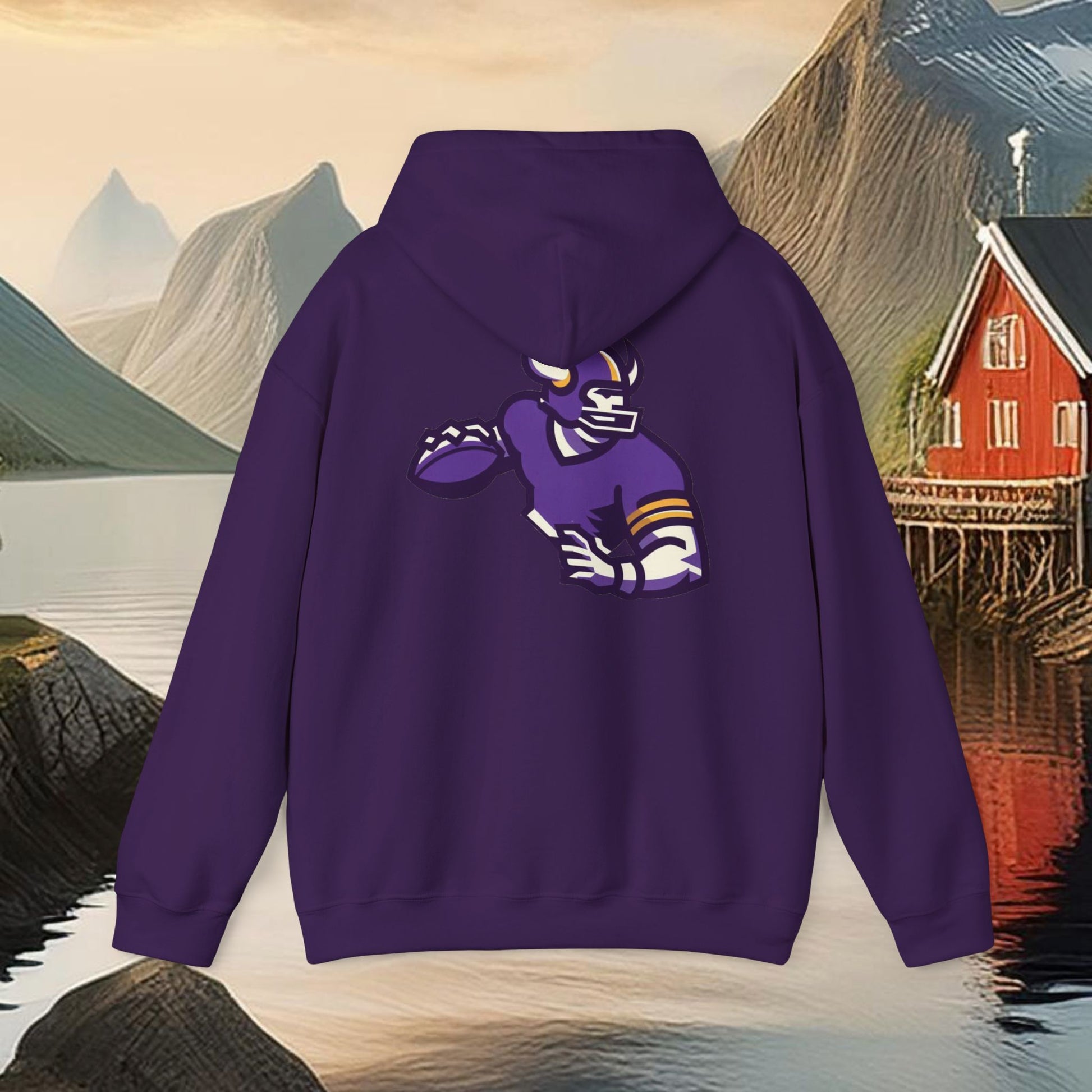 This Minnesota Vikings themed heavy blend hooded sweatshirt is relaxation itself. Made with a thick blend of cotton and polyester, it feels plush, soft and warm, a perfect choice for any cold day. In the front, the spacious kangaroo pocket adds daily practicality while the hood's drawstring is the same color as the base sweater for extra style points.