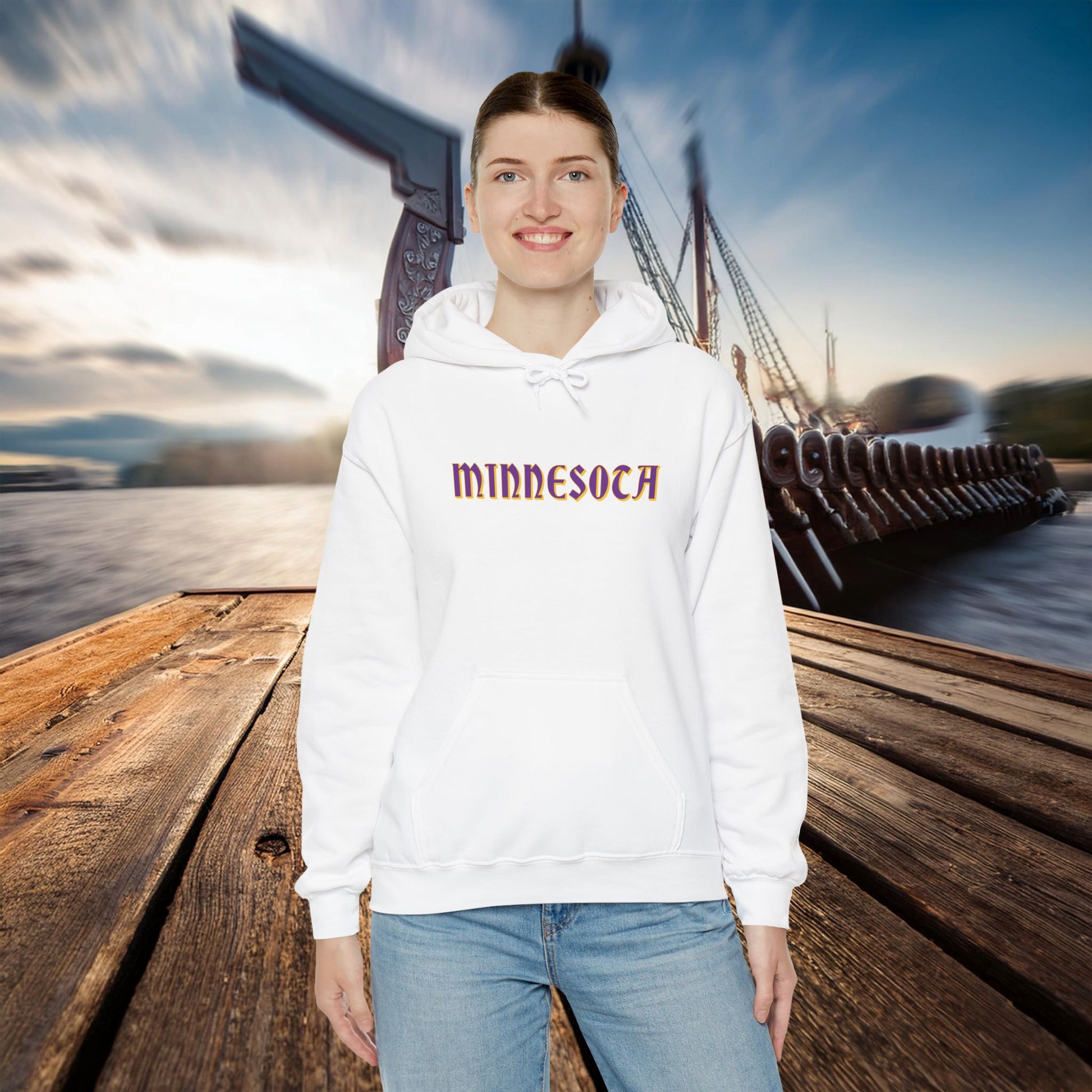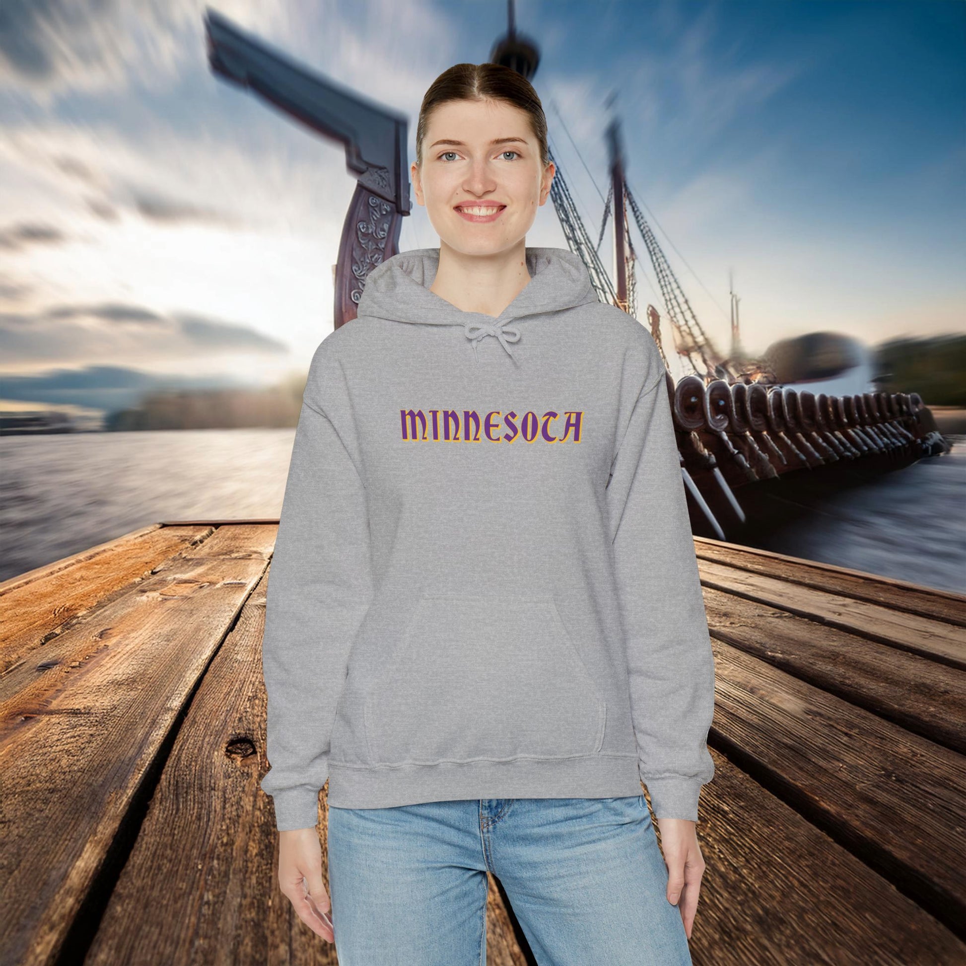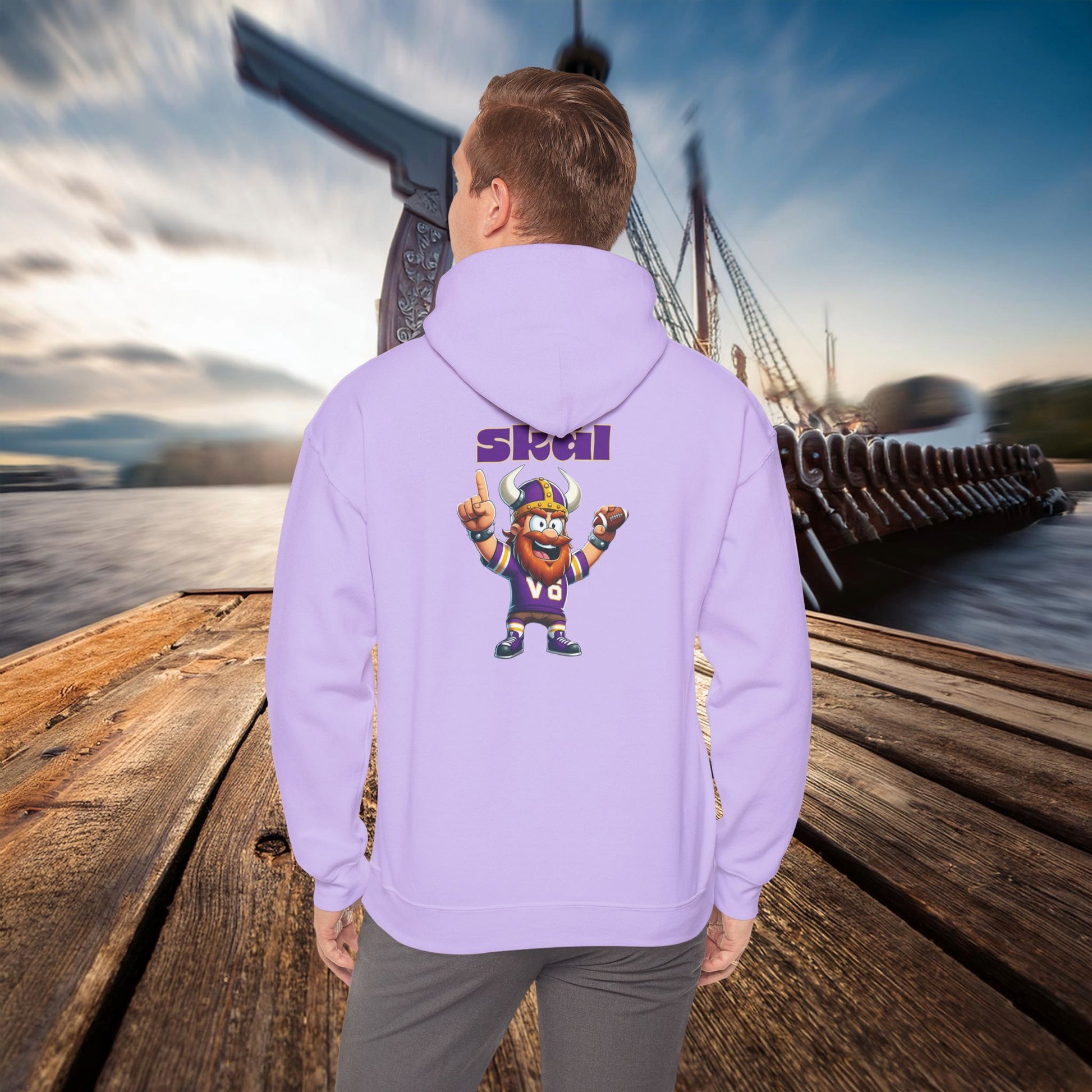 This Minnesota Vikings themed heavy blend hooded sweatshirt is relaxation itself. Made with a thick blend of cotton and polyester, it feels plush, soft and warm, a perfect choice for any cold day. In the front, the spacious kangaroo pocket adds daily practicality while the hood's drawstring is the same color as the base sweater for extra style points.