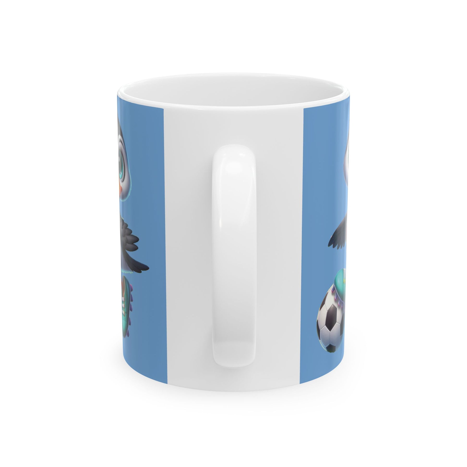 Bright, glossy ceramic mug featuring a playful, Minnesota United soccer-themed loon illustration on a soothing sky-blue background. Lightweight but sturdy, it brings a cheerful pop of color to morning routines and sidelines alike. Hold the comfortable C-handle and feel the smooth, shiny finish as the crisp, vibrant print wraps around the mug. Safe for everyday use — microwaveable and dishwasher-safe — this mug stands up to regular washes while remaining lead- and BPA-free. Choose 11oz for a classic morning cup or 15oz when you want an extra pour for long practices, weekend matches, or cozy kickaround chats.