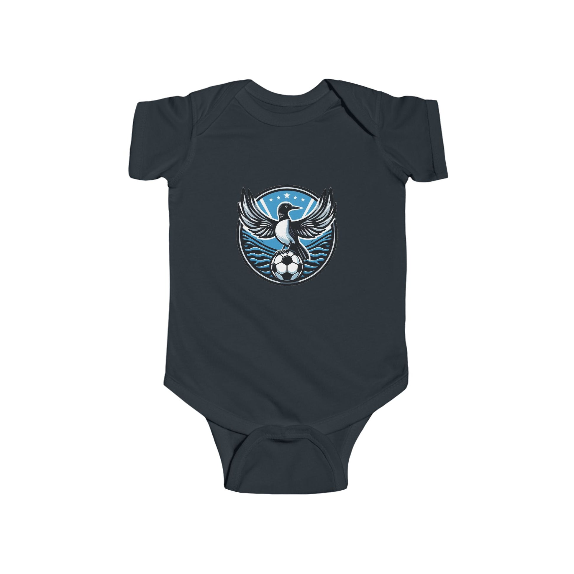Baby clothing needs to be both durable and soft. With this Minnesota United themed infant fine jersey bodysuit, youths get just that. The fabric is 100% cotton for solid colors. For heather colors, polyester is included. There are seams along the sides of this product. All bindings are made with ribbed knitting for improved durability. There are plastic snaps at the cross closure for easy changing access.