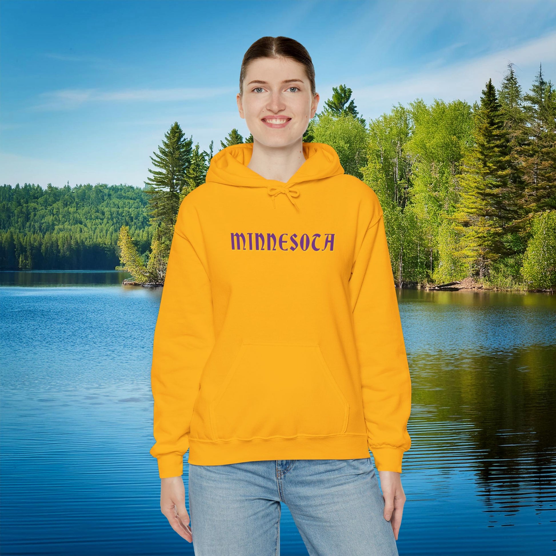 This Minnesota Vikings themed heavy blend hooded sweatshirt is relaxation itself. Made with a thick blend of cotton and polyester, it feels plush, soft and warm, a perfect choice for any cold day. In the front, the spacious kangaroo pocket adds daily practicality while the hood's drawstring is the same color as the base sweater for extra style points.