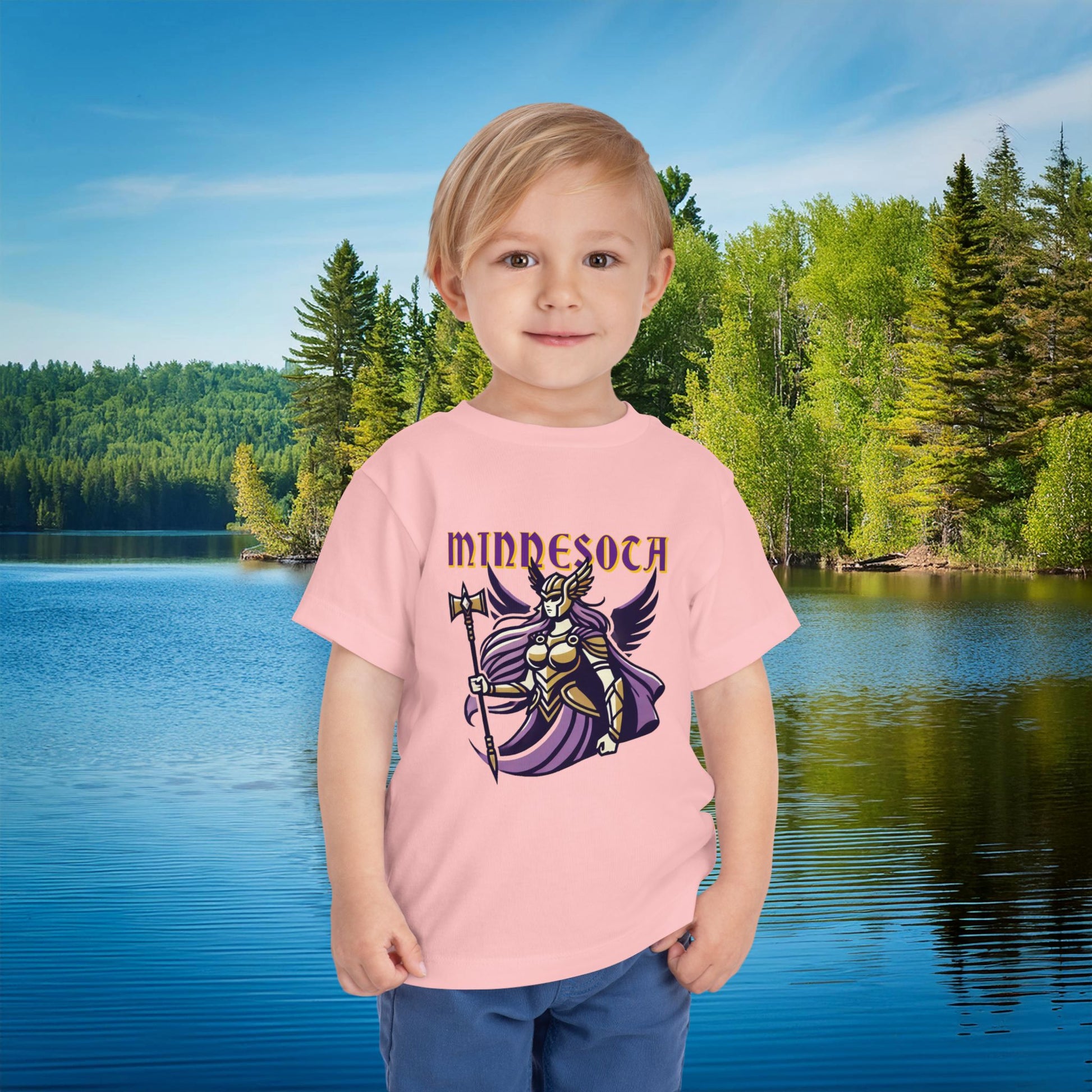 Uplift any child's wardrobe with this Minnesota Vikings themed custom kid's t-shirt. The Bella Canvas short sleeve tee for toddlers is a 100% Airlume combed and ring-spun cotton jersey with a tear-away label for extra comfort. Choose your favorite color and get a unique design that toddlers will happily wear every day.